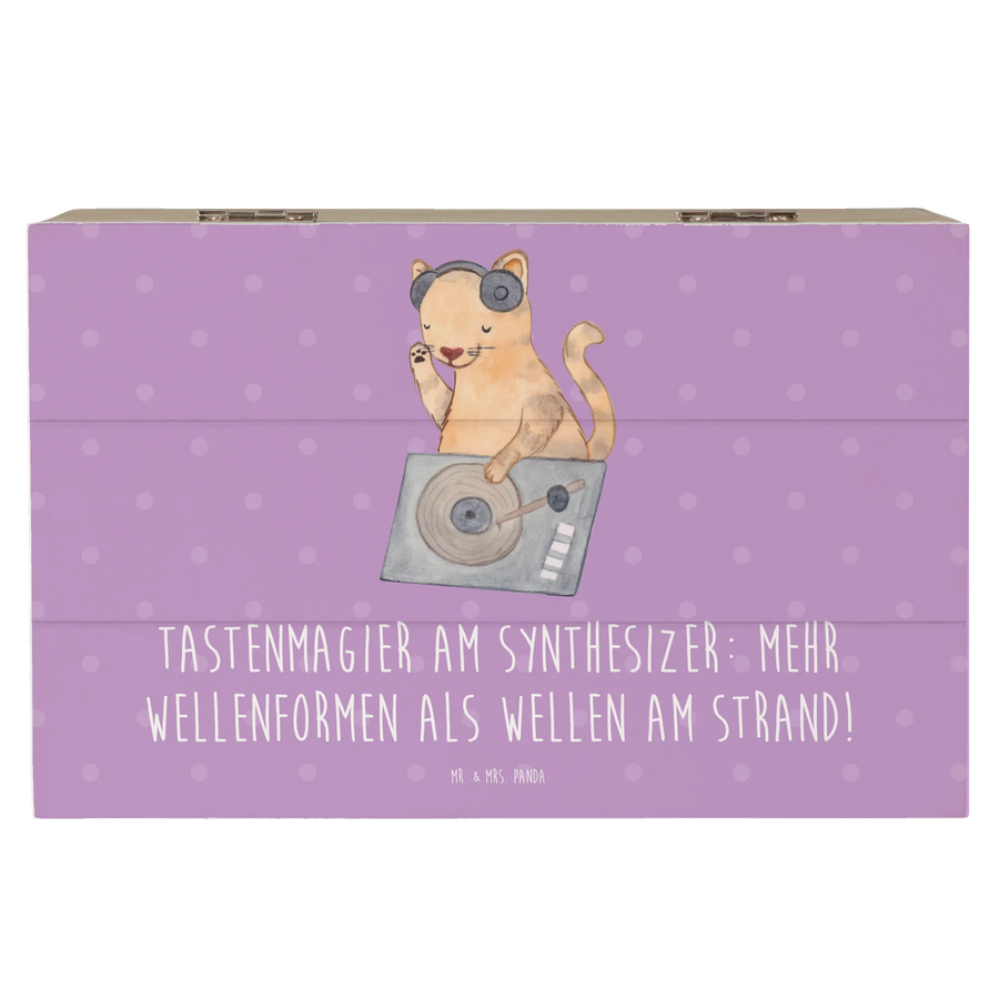 Die wunderschöne Holzkiste mit dem einzigartigen Motiv "Synthesizer" von Mr. & Mrs. Panda ist das perfekte Geschenk für Musikliebhaber und kreative Köpfe.