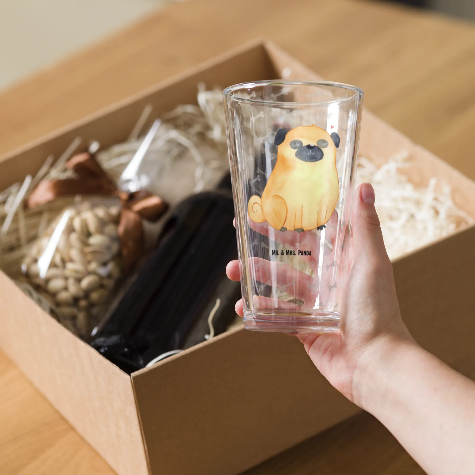 Szklanka do picia premium Mops - z napisem