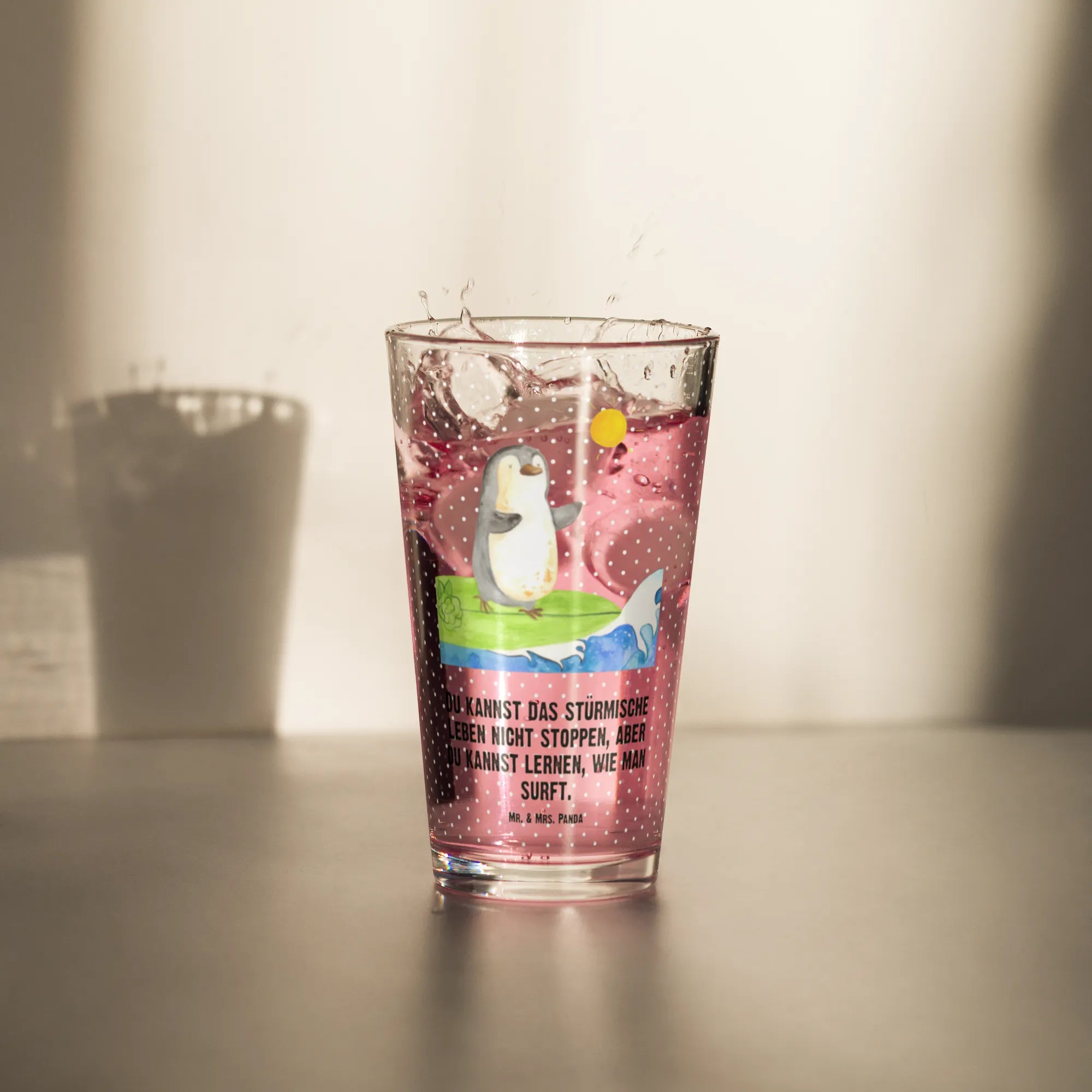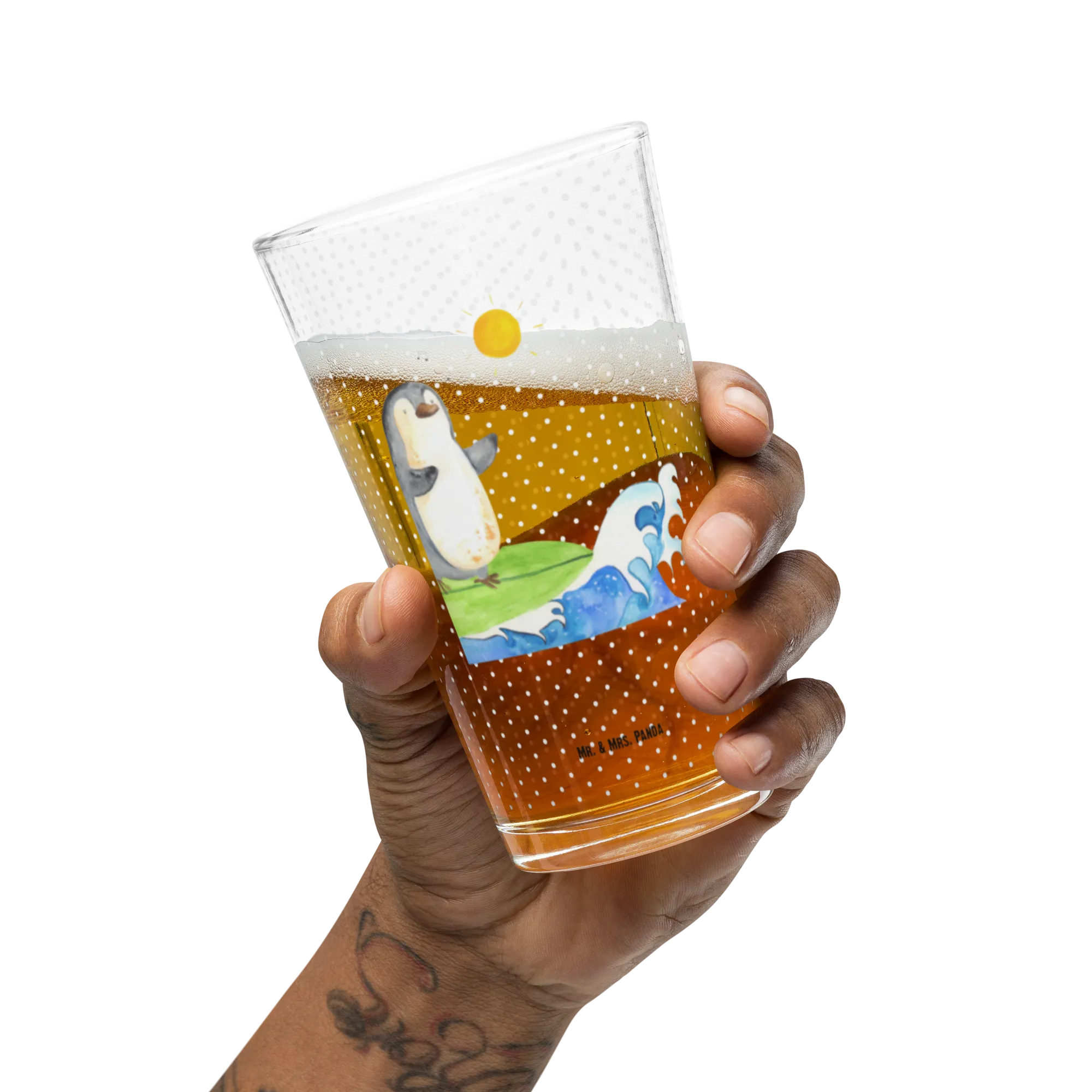 Szklanka do picia premium Pingwin surfista - z napisem