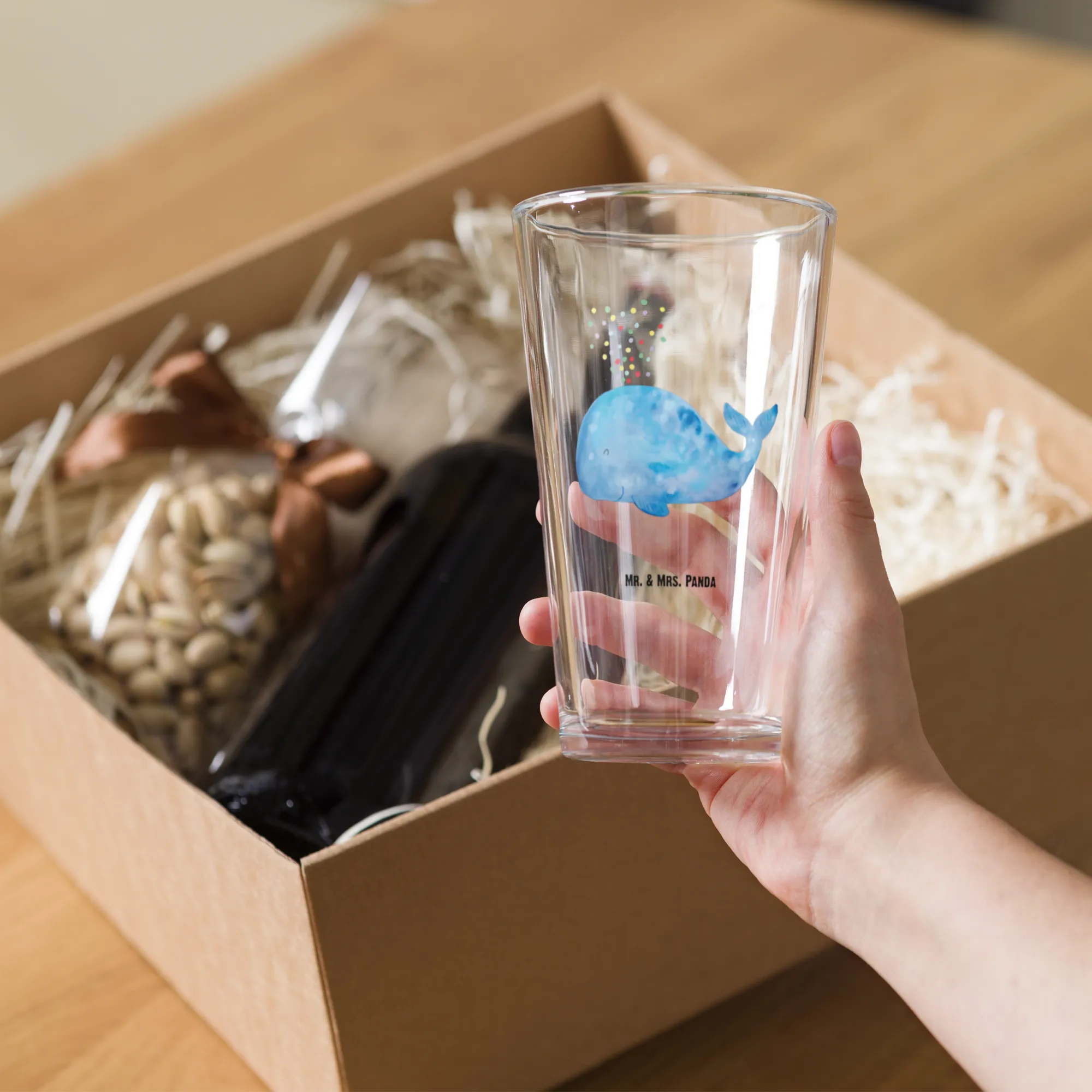 Szklanka do picia premium wieloryb konfetti - z napisem