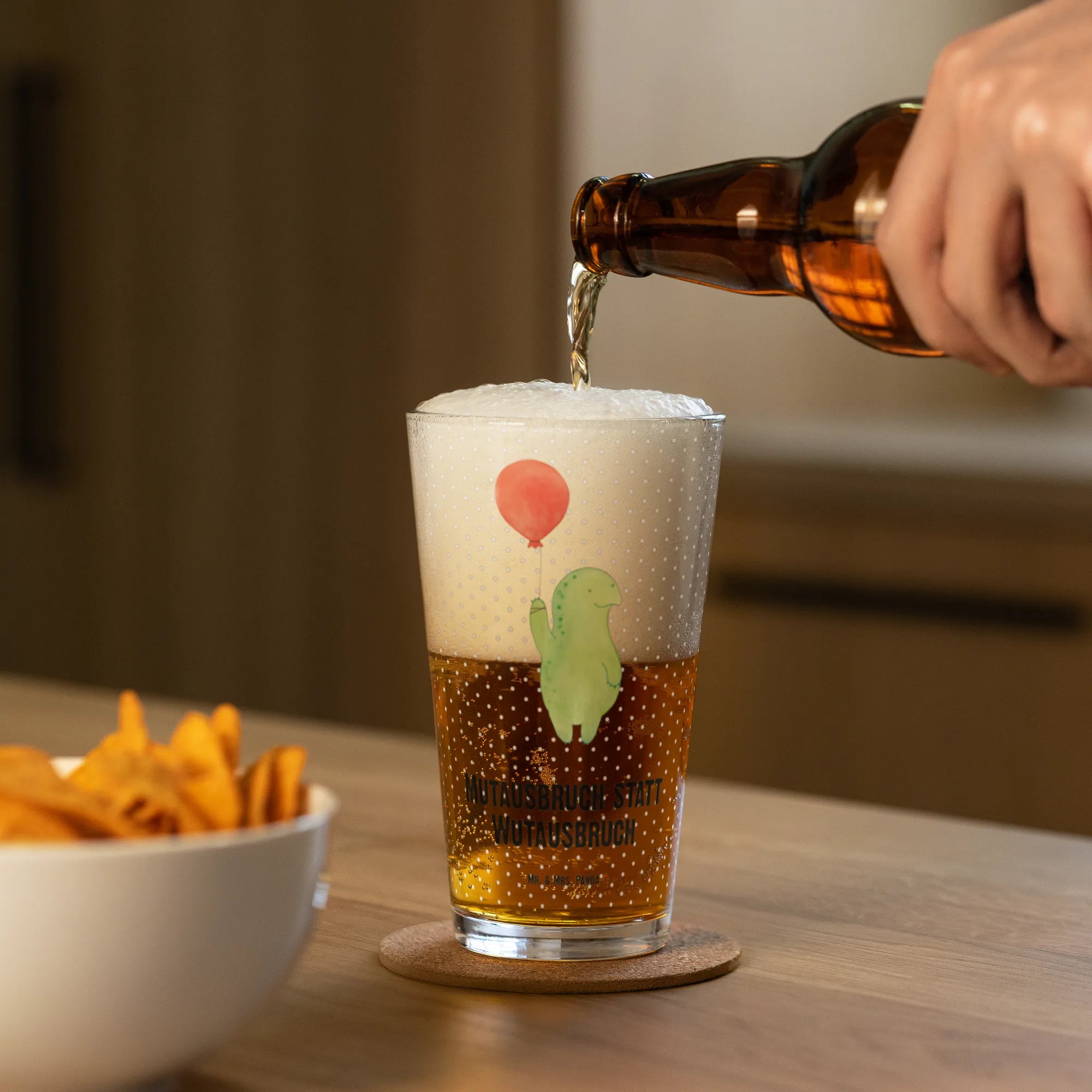 Szklanka do picia premium żółw balon - z napisem