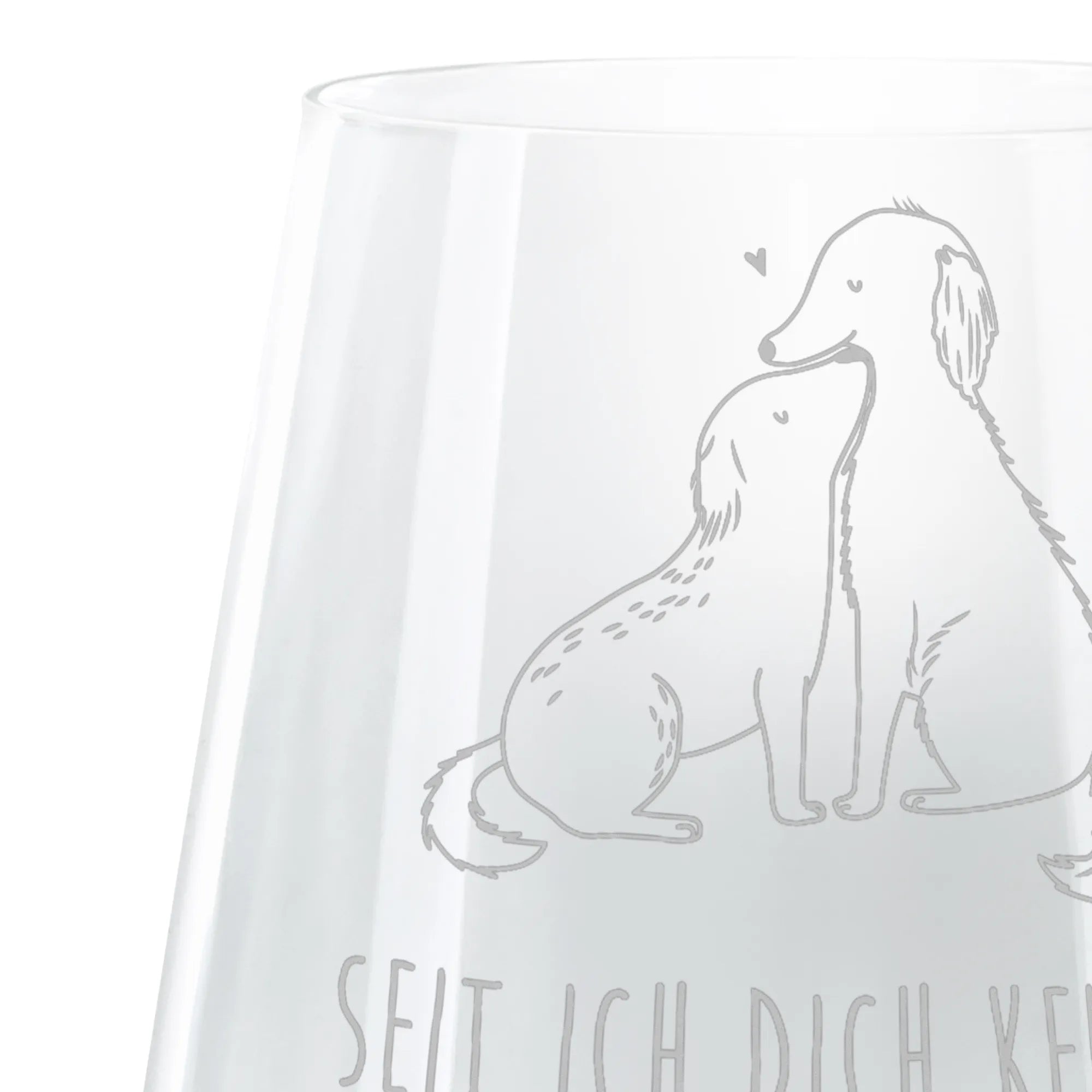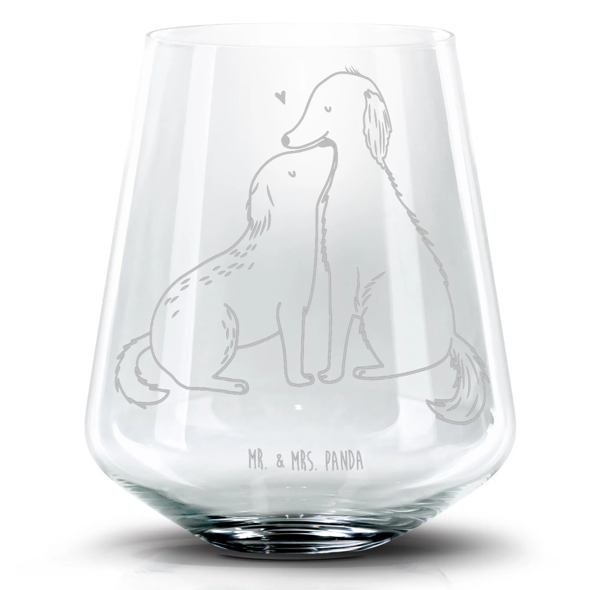 Das traumhafte Cocktail Glas "Hunde Liebe" von Mr. & Mrs. Panda ist das perfekte Geschenk für jeden Hundeliebhaber und Tierfreund! Mit einer hochwertigen Lasergravur ziert das Glas ein zauberhaftes Motiv von zwei niedlichen Hunden, die liebevoll kuscheln. Die Botschaft "Seit ich dich kenne, glaube ich an Wunder" bringt die tiefe Verbundenheit zwischen Mensch und Hund auf charmante Weise zum Ausdruck.