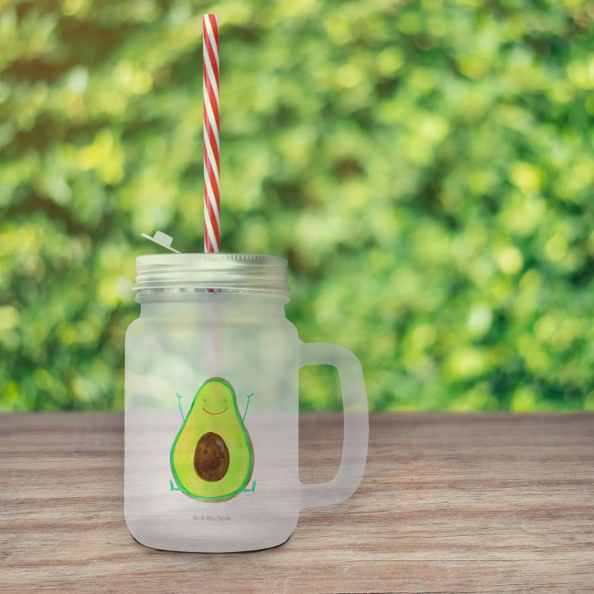 Szklanka Mason Jar Awokado Szczęśliwy - z napisem
