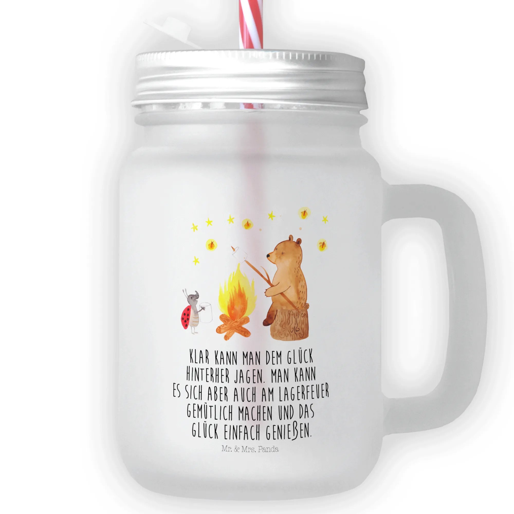 Szklanka Mason Jar Niedźwiedź i biedronka przy ognisku - z napisem