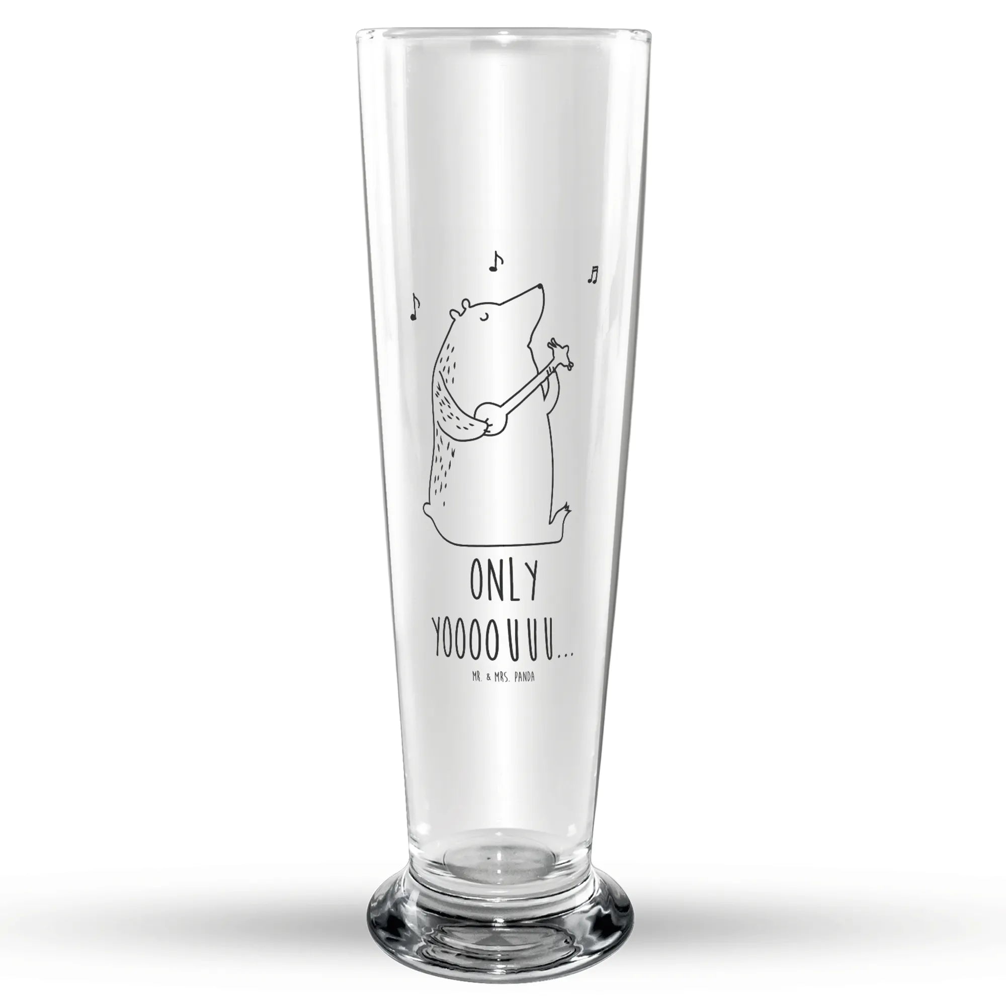 Du suchst nach dem perfekten Geschenk für einen Bierliebhaber? Dann ist das Wunderschöne Bierglas mit dem süßen Bär Gitarre Motiv von Mr. & Mrs. Panda genau das Richtige! Dieses hochwertig gravierte Bierglas begeistert nicht nur durch sein einzigartiges Design, sondern auch durch die besondere Botschaft "Only yoooouuu...". Wenn Du jemanden beeindruckend beschenken möchtest, ob zum Geburtstag, Vatertag, oder einfach nur so, dieses Bierglas wird garantiert Freude bereiten.