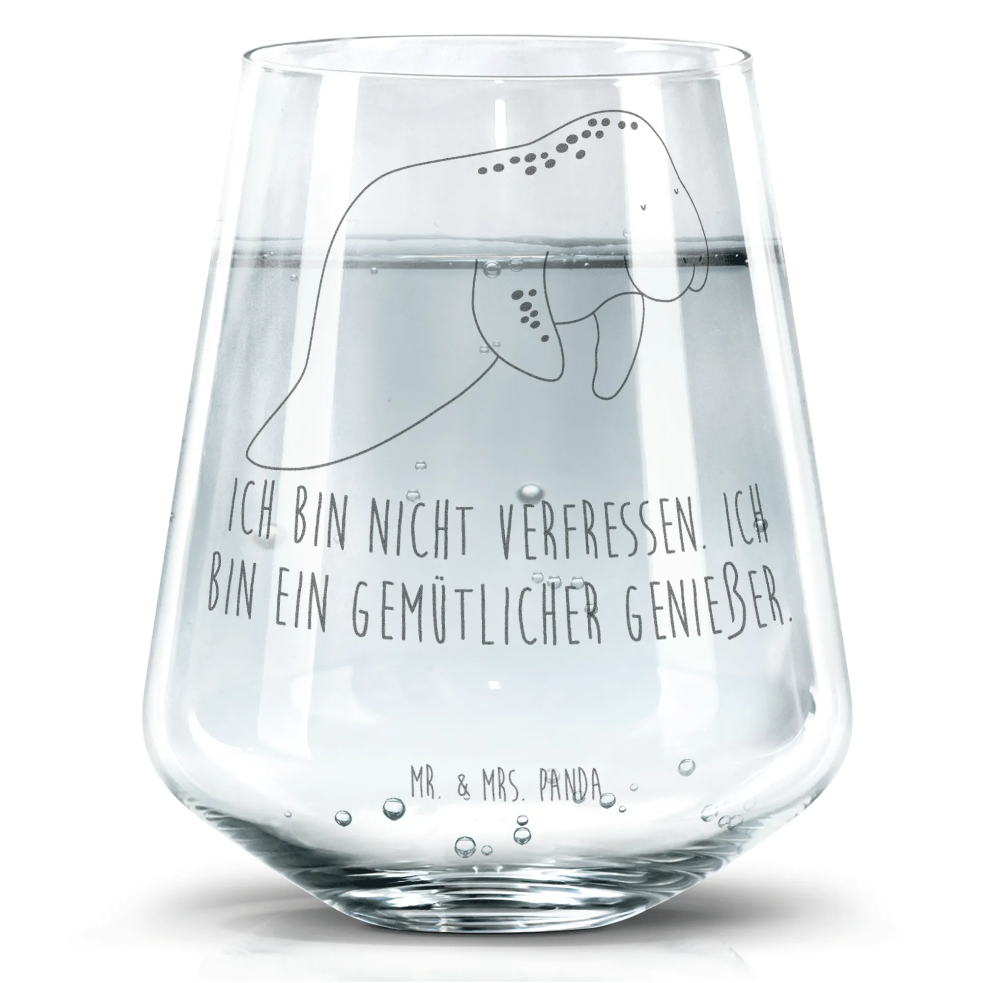 Das wunderschöne Trinkglas mit dem Motiv "Seekuh chillt" von Mr. & Mrs. Panda ist das perfekte Geschenk für jeden, der das Meer und die Gemütlichkeit liebt. Die liebevolle Lasergravur mit dem Spruch "Ich bin nicht Verfressen. Ich bin ein gemütlicher Genießer." macht dieses Glas zu einem ständigen Begleiter für entspannte Abende auf dem Sofa.