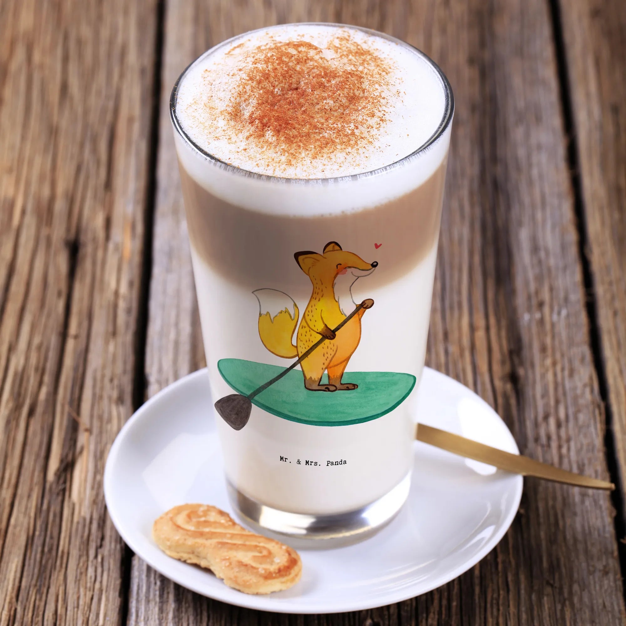 Entdecke das zauberhafte Cappuccino Glas mit dem niedlichen Fuchs-Motiv "Stand Up Paddling Medizin" von Mr. & Mrs. Panda! Dieses wunderschöne, dickwandige Premiumglas ist nicht nur ein echter Hingucker, sondern auch der perfekte Begleiter für alle Sportbegeisterten und Hobby-Fanatiker.