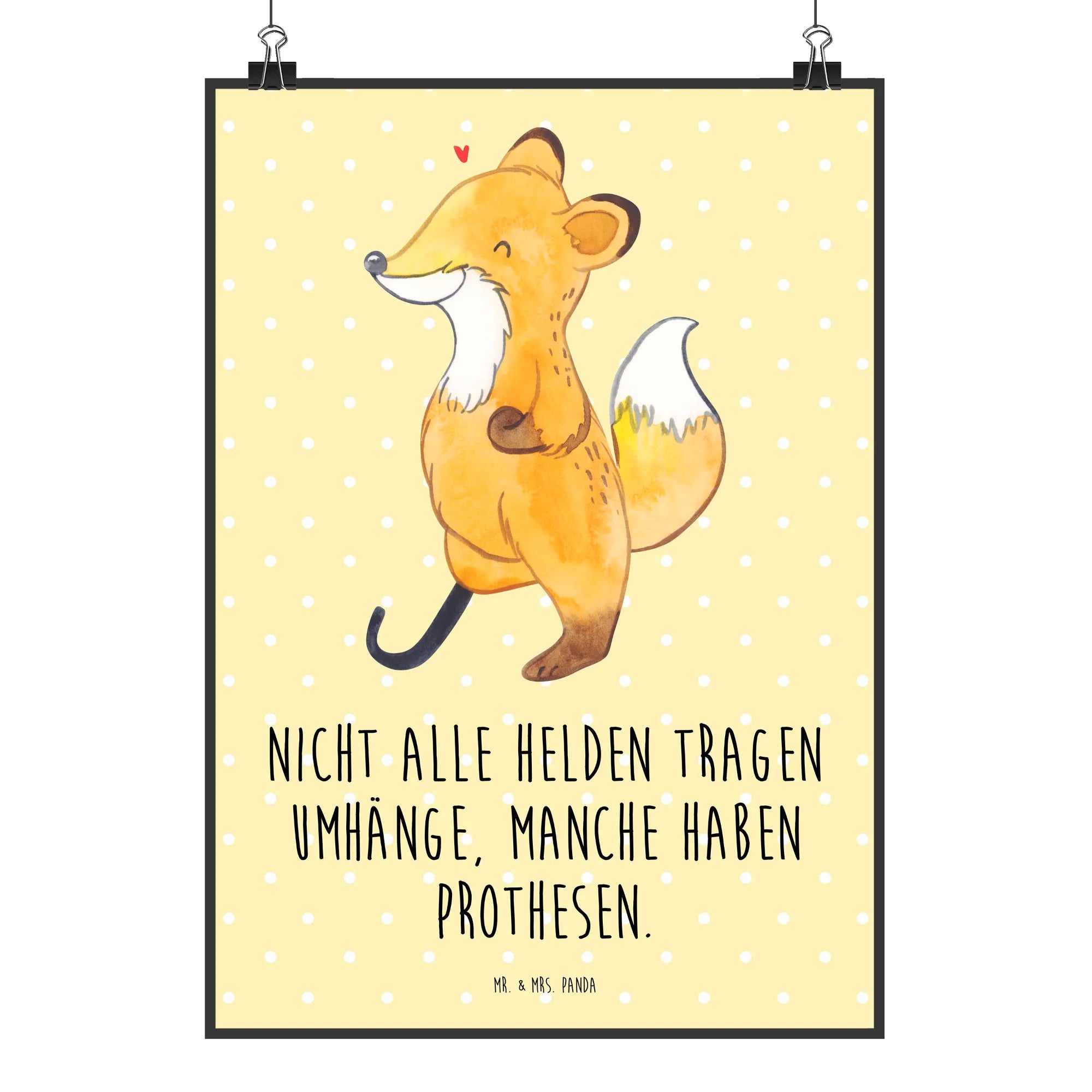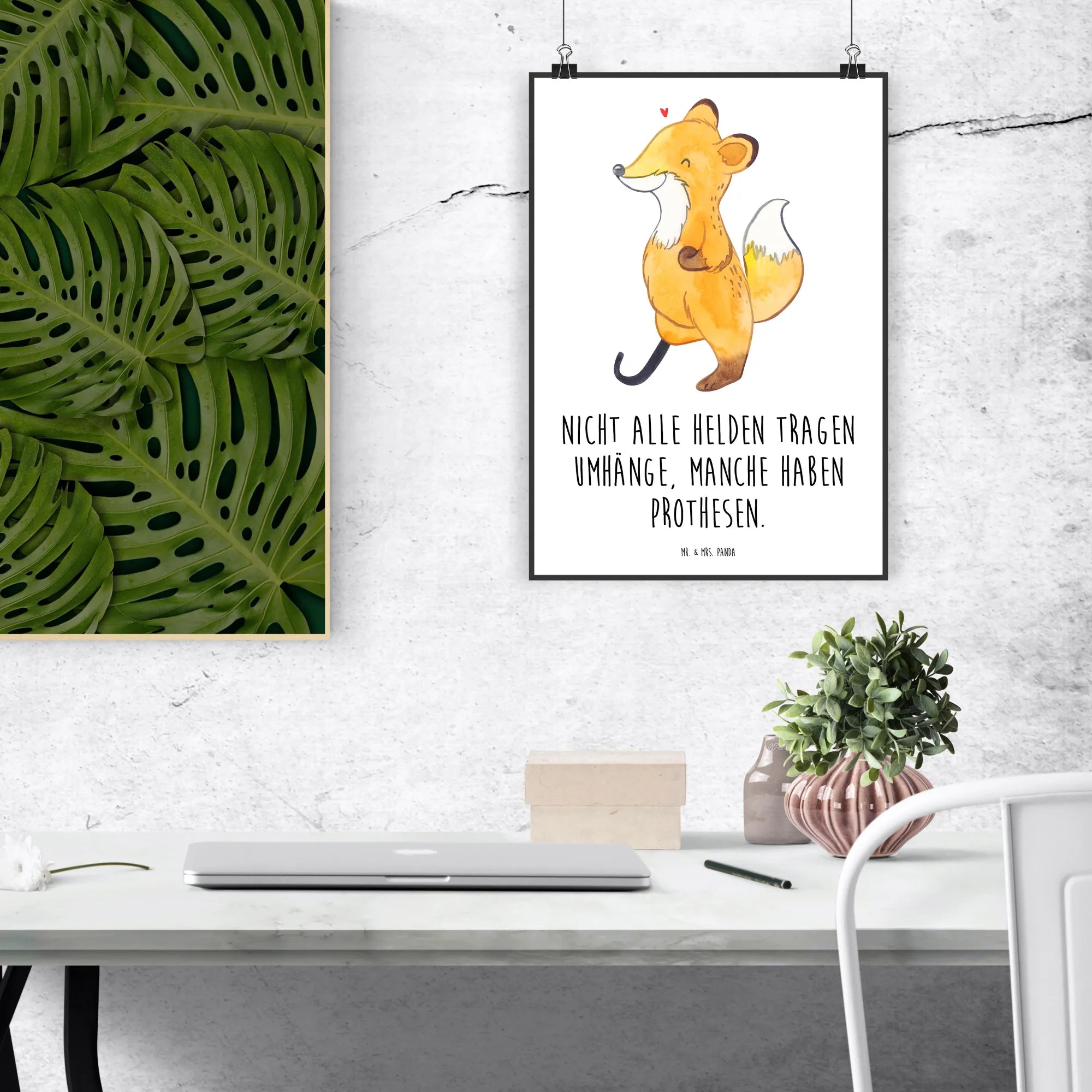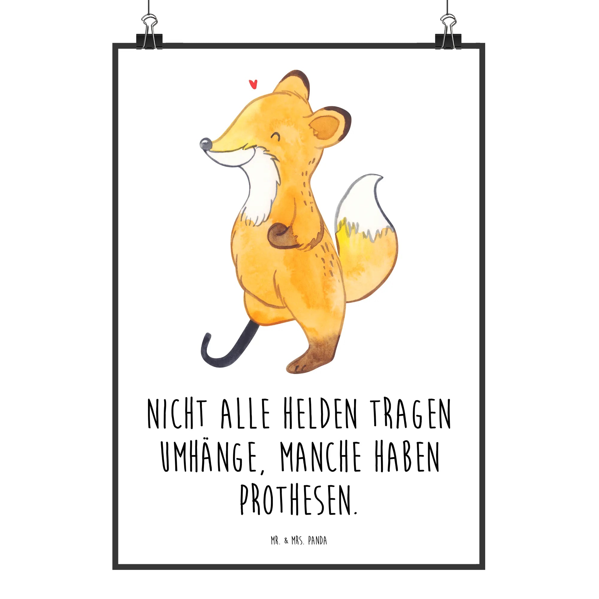 Entdecke das wundervolle Poster "Fuchs Beinprothese" aus der Kollektion "Tiere mit Superkräften" von Mr. & Mrs. Panda! Dieses liebevoll gestaltete Wanddeko-Bild bietet nicht nur eine bezaubernde Darstellung eines mutigen kleinen Fuchses mit einer Beinprothese, sondern vermittelt auch eine wichtige Botschaft über Inklusion und die besonderen Fähigkeiten von Menschen, die mit Handicaps leben. Der Spruch "Nicht alle Helden tragen Umhänge, manche haben Prothesen" begleitet dieses handgemalte Poster und spendet Trost und Inspiration.