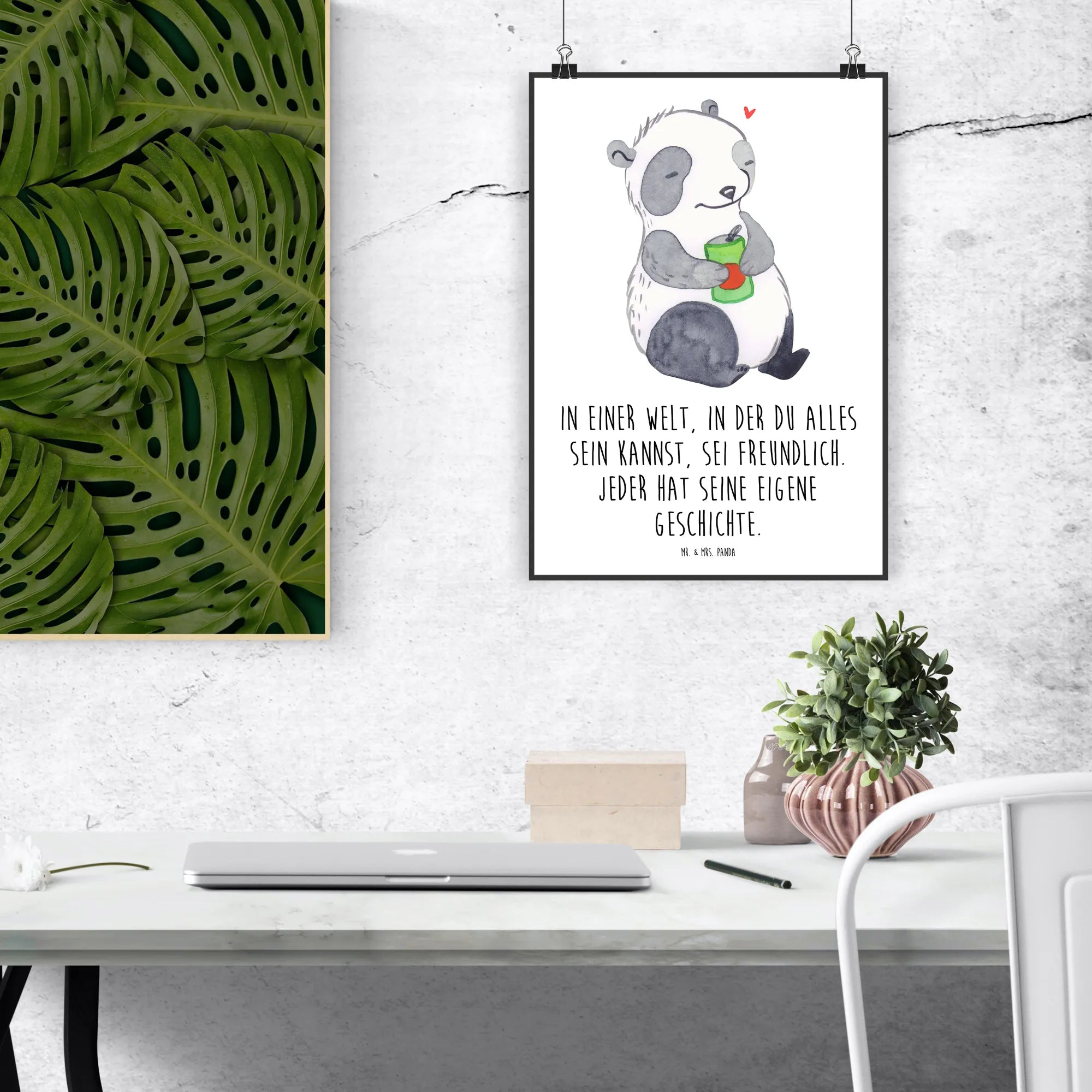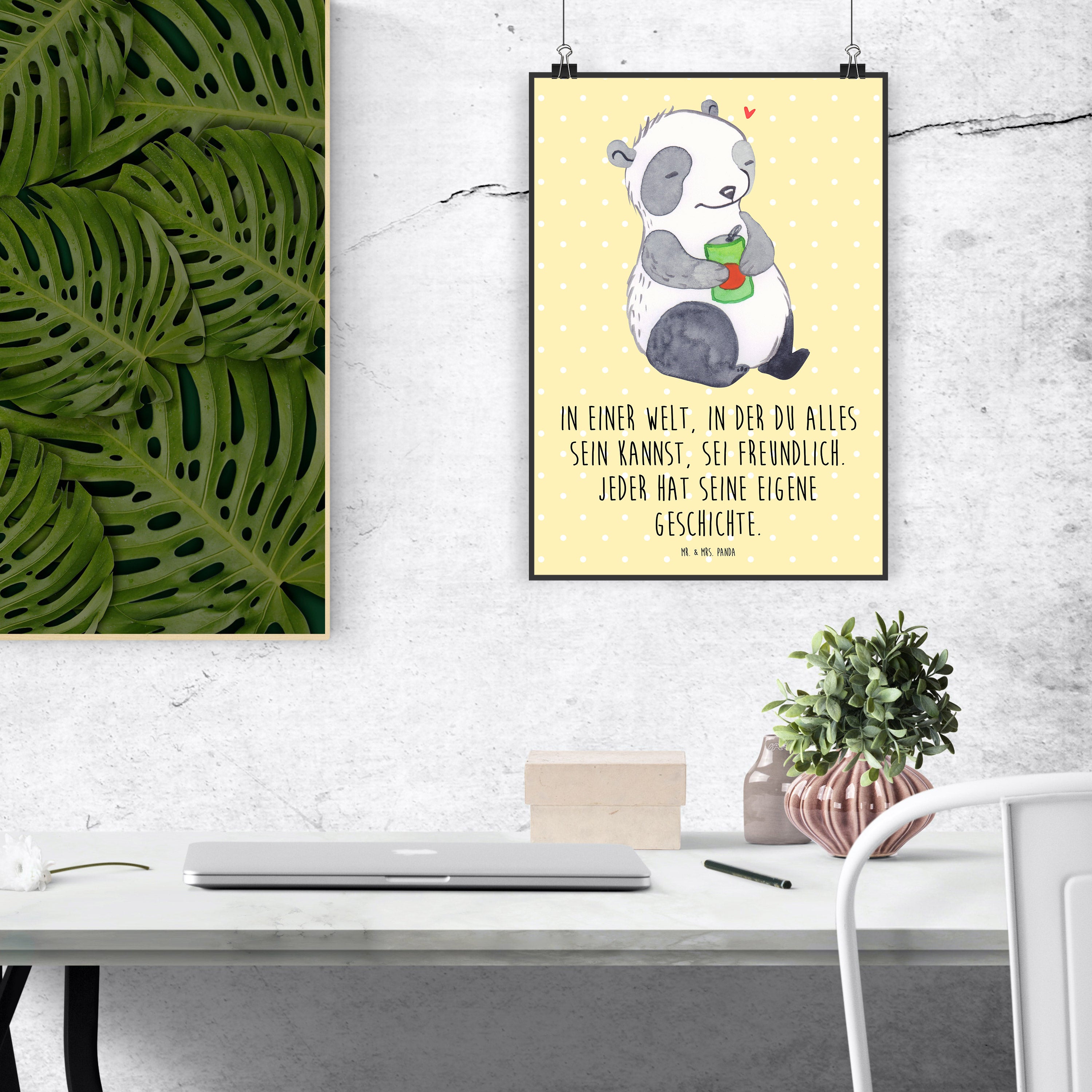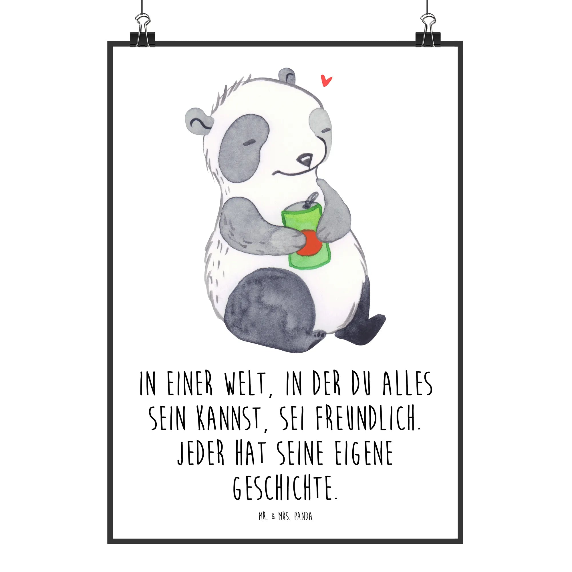 Das Mr. & Mrs. Panda Poster "Panda Depression" aus der Kollektion Tiere mit Superkräften ist ein ganz besonders liebevolles Geschenk für Menschen, die mit psychischen Herausforderungen kämpfen. Es zeigt einen Panda, der nachdenklich mit einer Getränkedose in der Hand sitzt, und spricht direkt das Thema Depressionen an. In einer Welt, in der du alles sein kannst, sei freundlich – dieser Slogan erinnert uns daran, dass wir alle unsere eigenen Geschichten und Kämpfe haben.