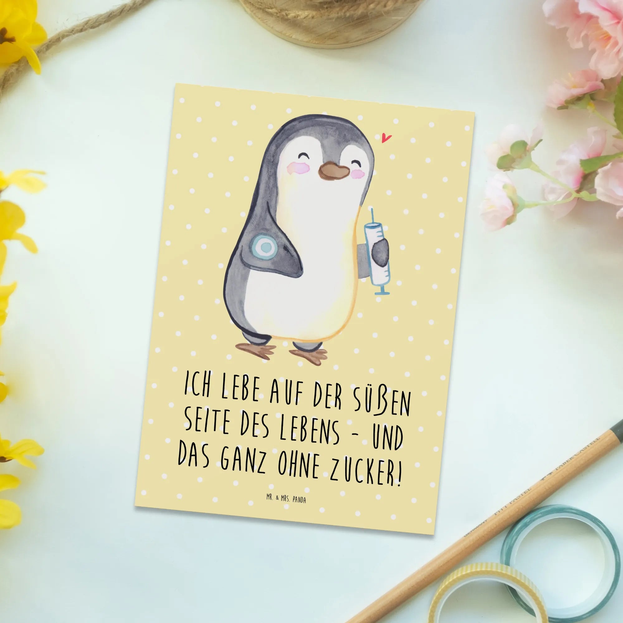 Pocztówka Pingwin cukrzyca - Pastelowy żółty