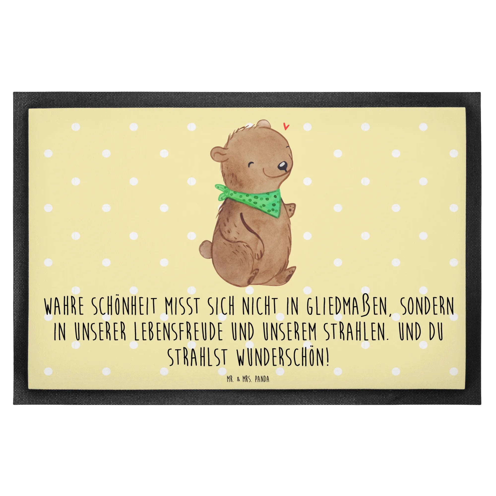 Die Fußmatte mit dem charmanten Motiv Bär Dysmelie aus der Kollektion Tiere mit Superkräften von Mr. & Mrs. Panda ist ein wunderbares Geschenk für Angehörige, Freunde oder sich selbst. Sie ist nicht nur ein praktisches Accessoire für den Hauseingang, sondern auch ein kraftvolles Symbol für Inklusion und Lebensfreude.