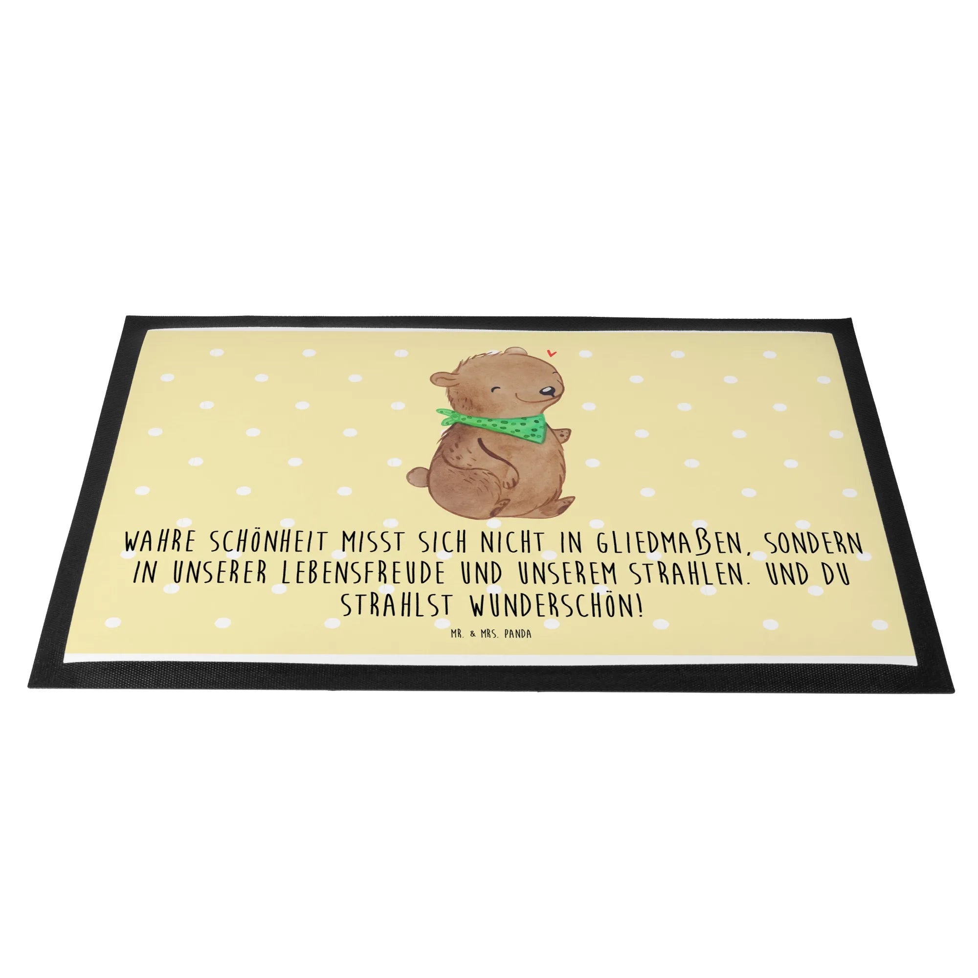 Denn wahre Schönheit misst sich nicht in Gliedmaßen, sondern in unserer Lebensfreude und unserem Strahlen. Diese besondere Kollektion von Mr. & Mrs. Panda fördert Inklusion und wertschätzt die individuellen Superkräfte, die jeder Mensch besitzt. Die Fußmatte besticht durch ihr hochwertiges und robustes Material: der strapazierfähige Polyesterfilz auf der Vorderseite hält jedem Wetter stand und sorgt dafür, dass sie auch bei starkem Gebrauch lange Freude bereitet.