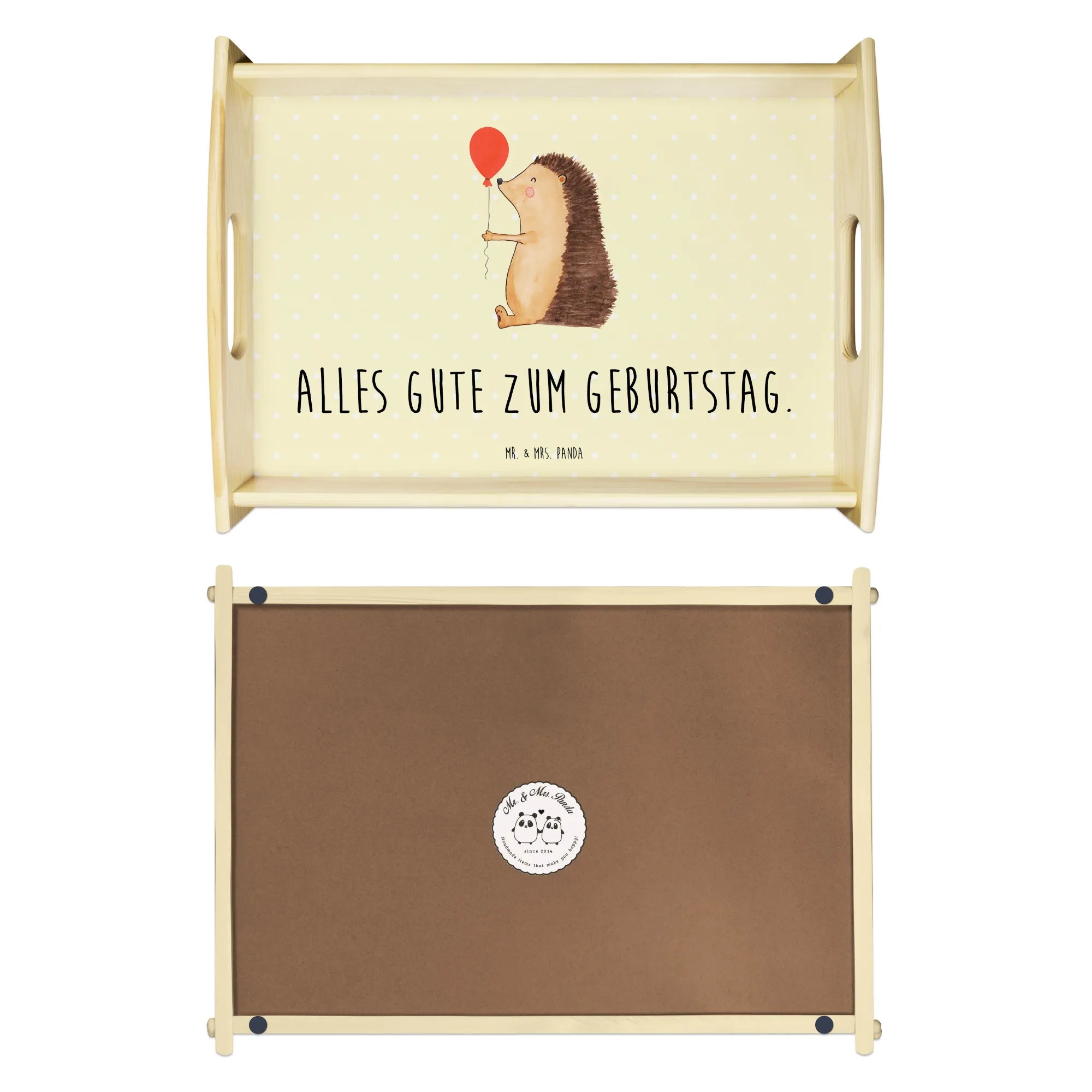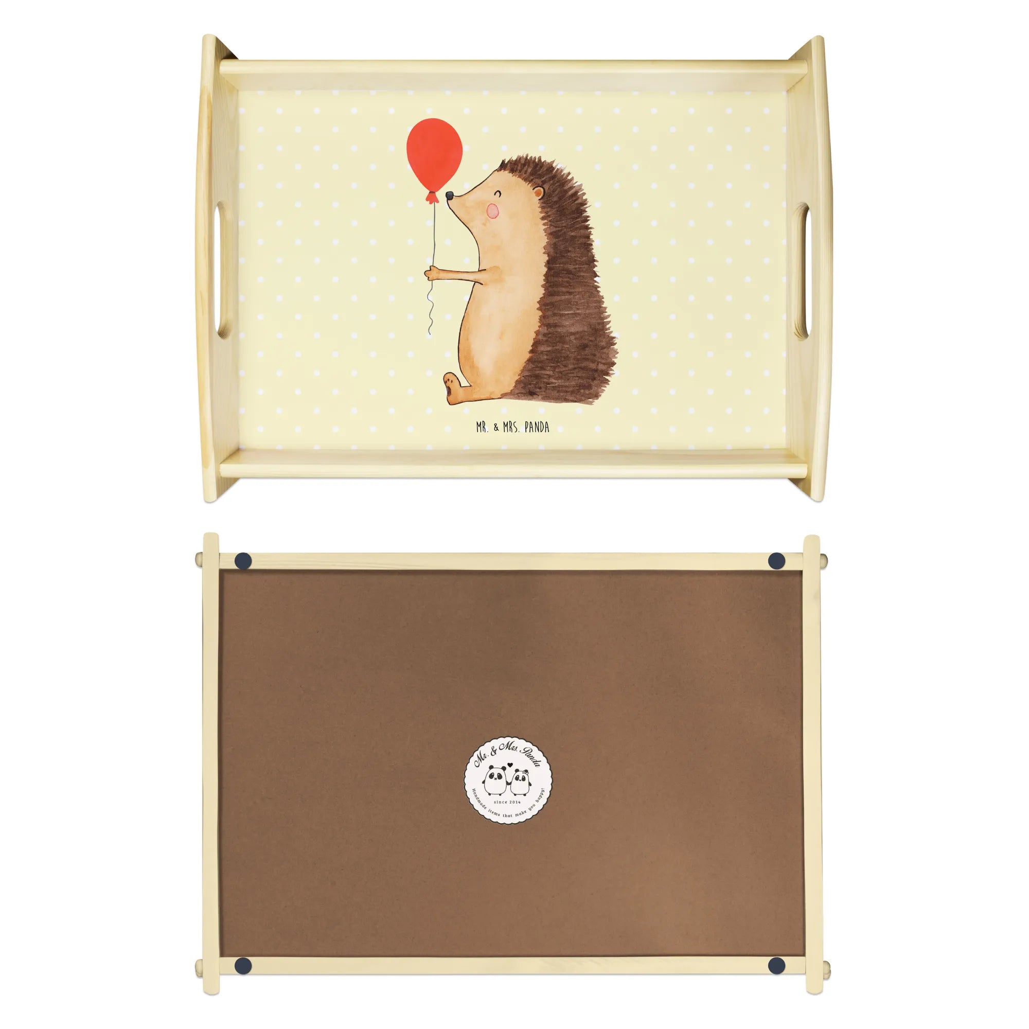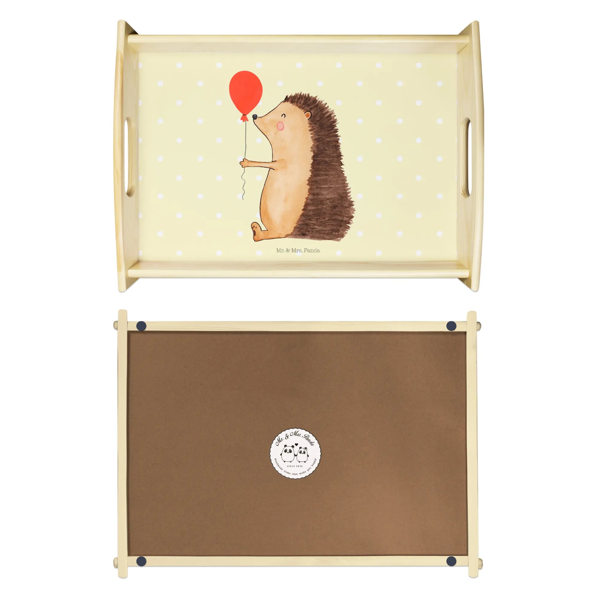 Taca serwisowa jeż balon - z napisem - Pastelowy żółty