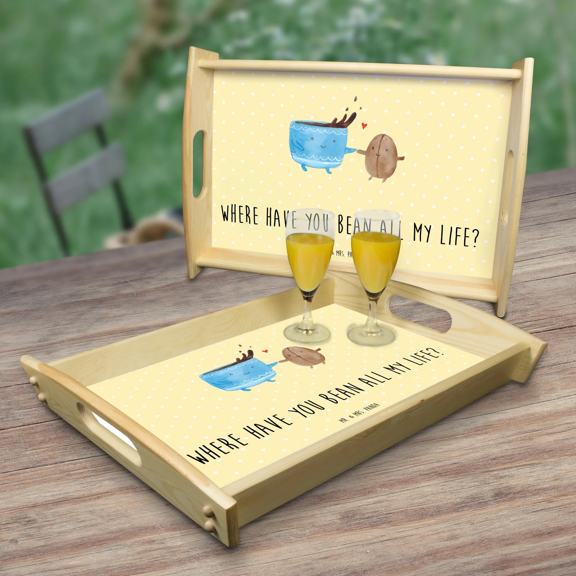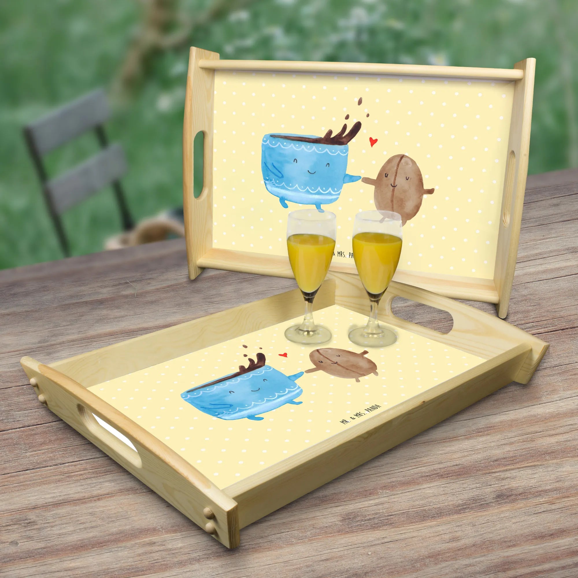 Taca serwisowa kawa ziarno - z napisem - Pastelowy żółty