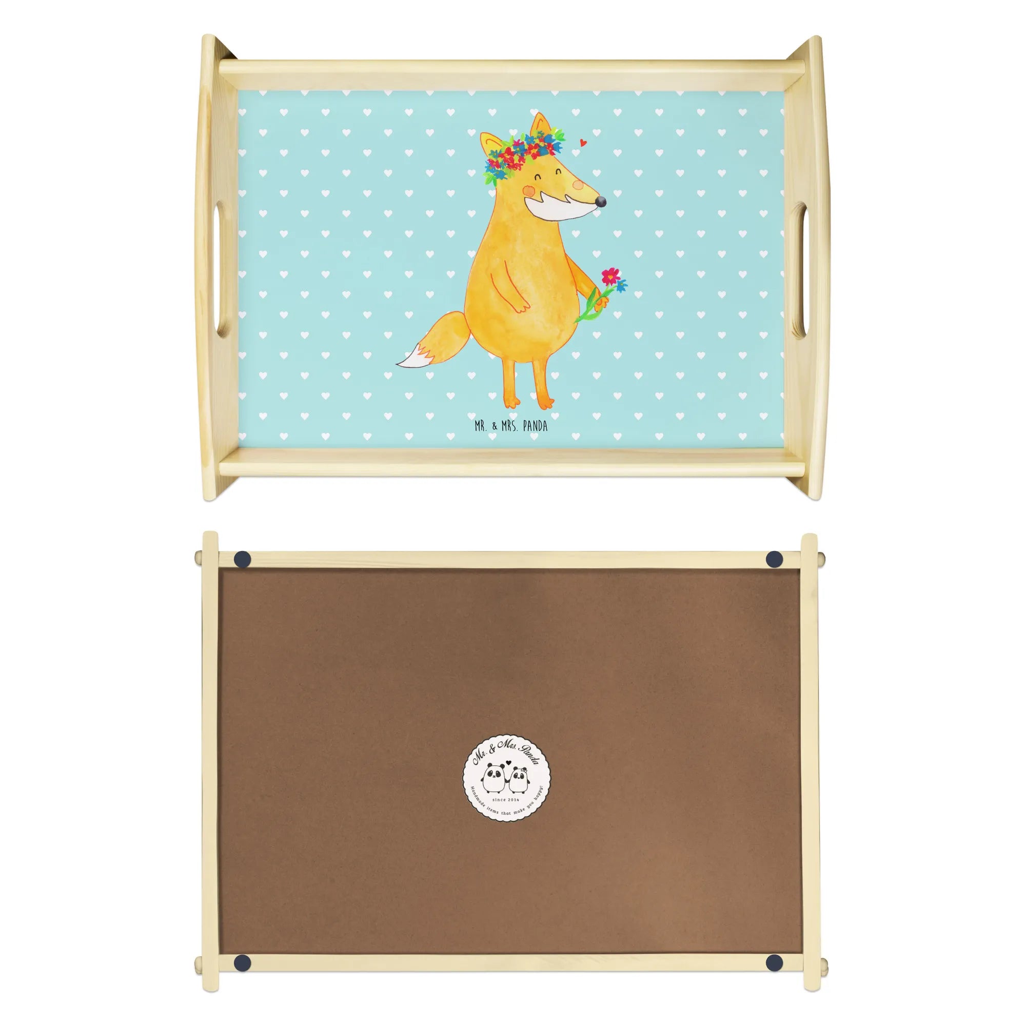Taca serwisowa lis Kwiaty - z napisem - biały