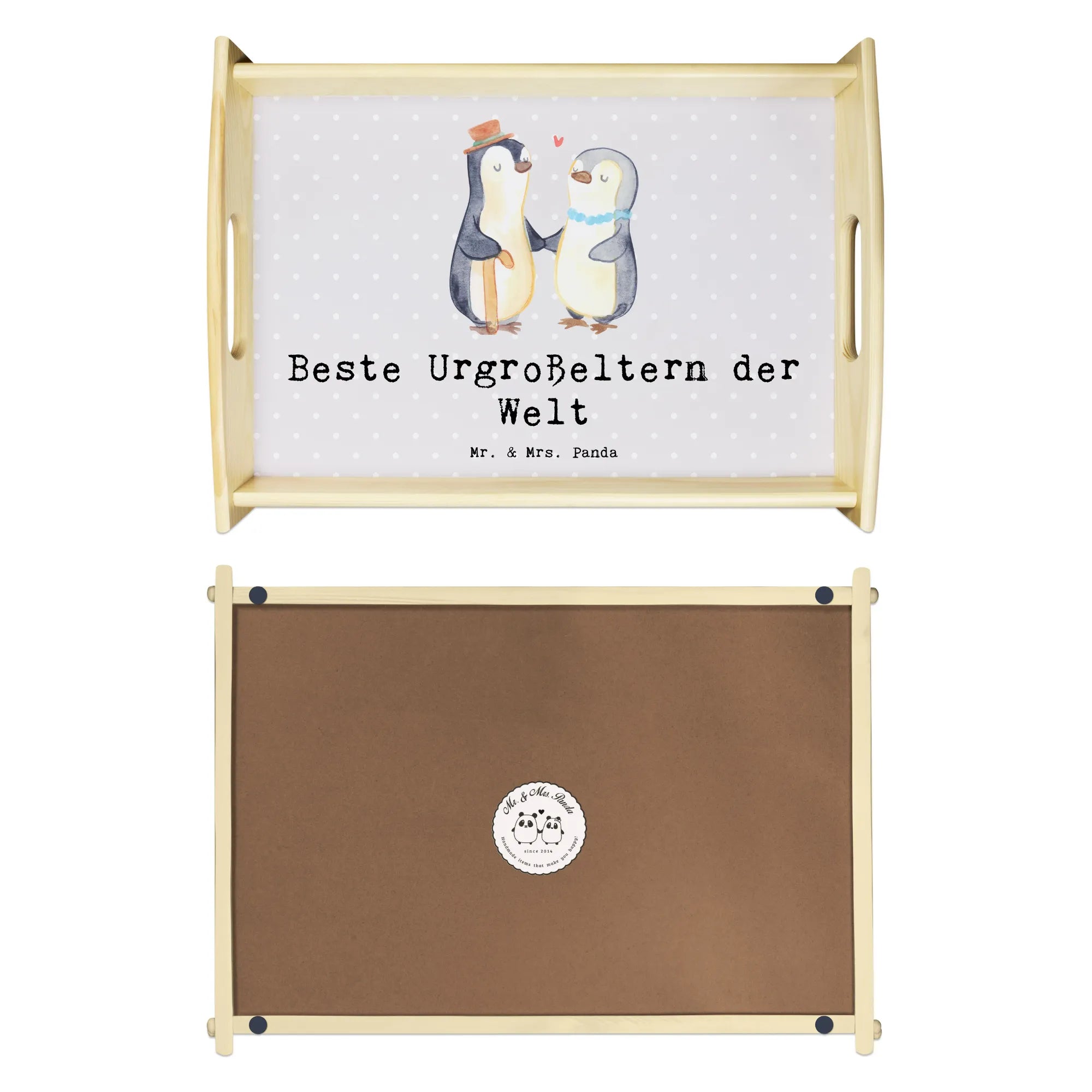 Taca serwisowa Pingwin Najlepsi pradziadkowie na świecie - Pastelowy szary
