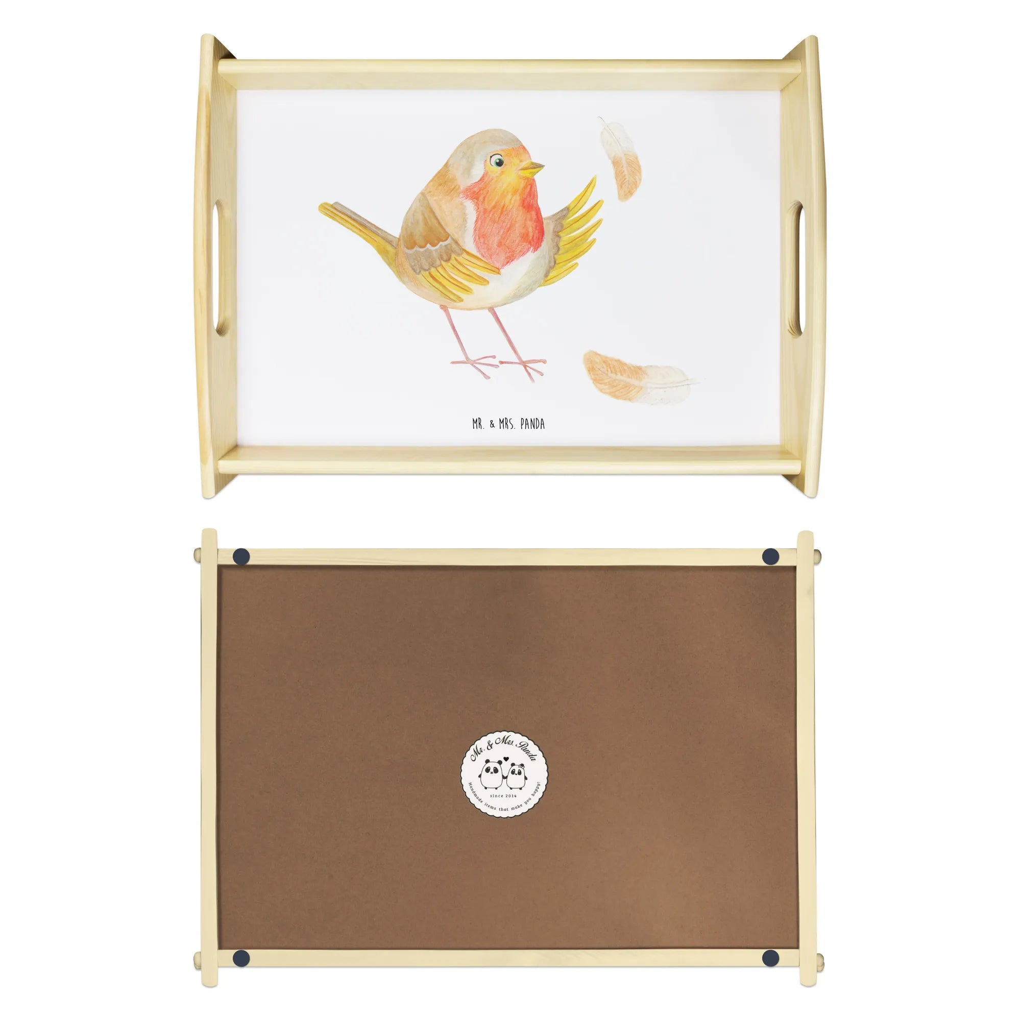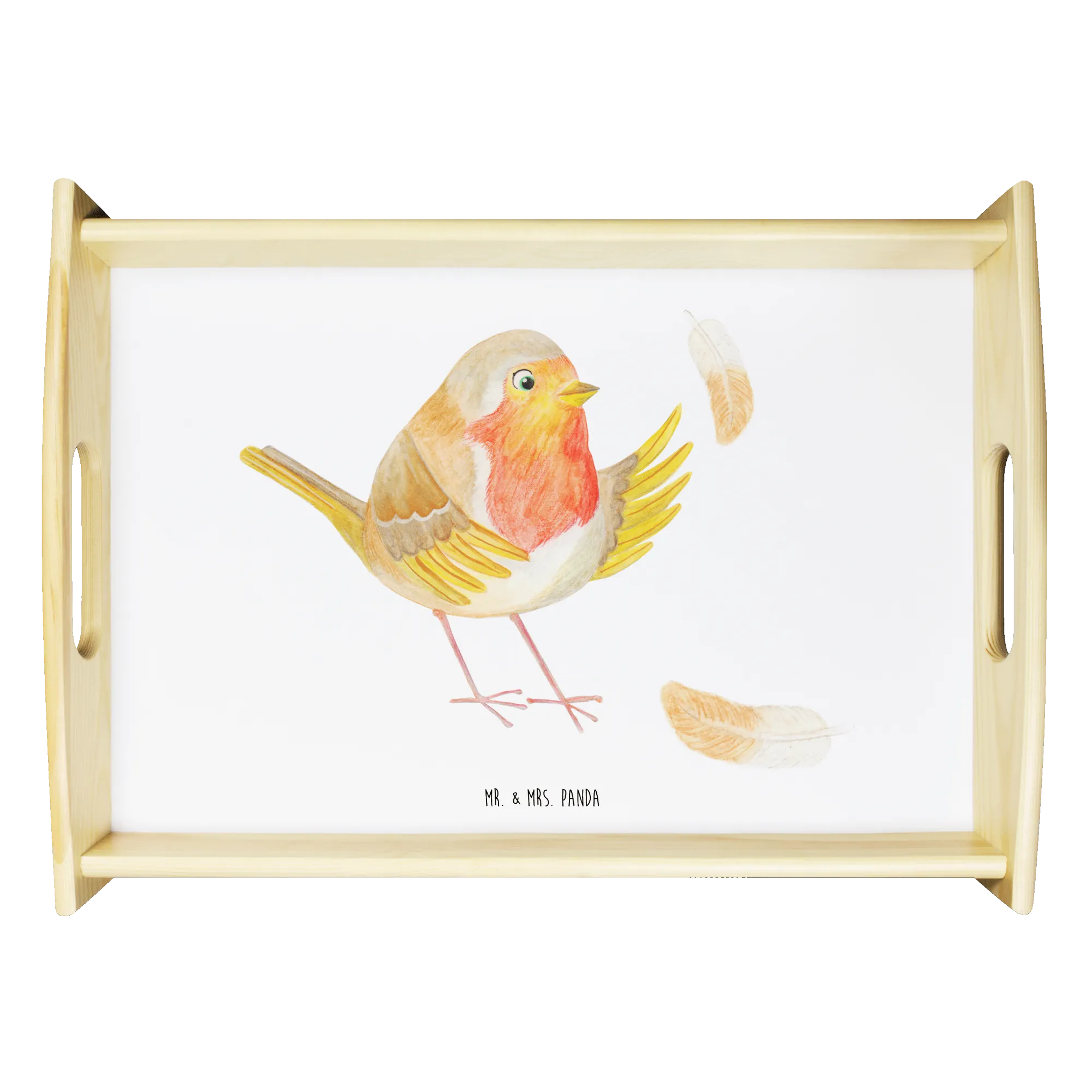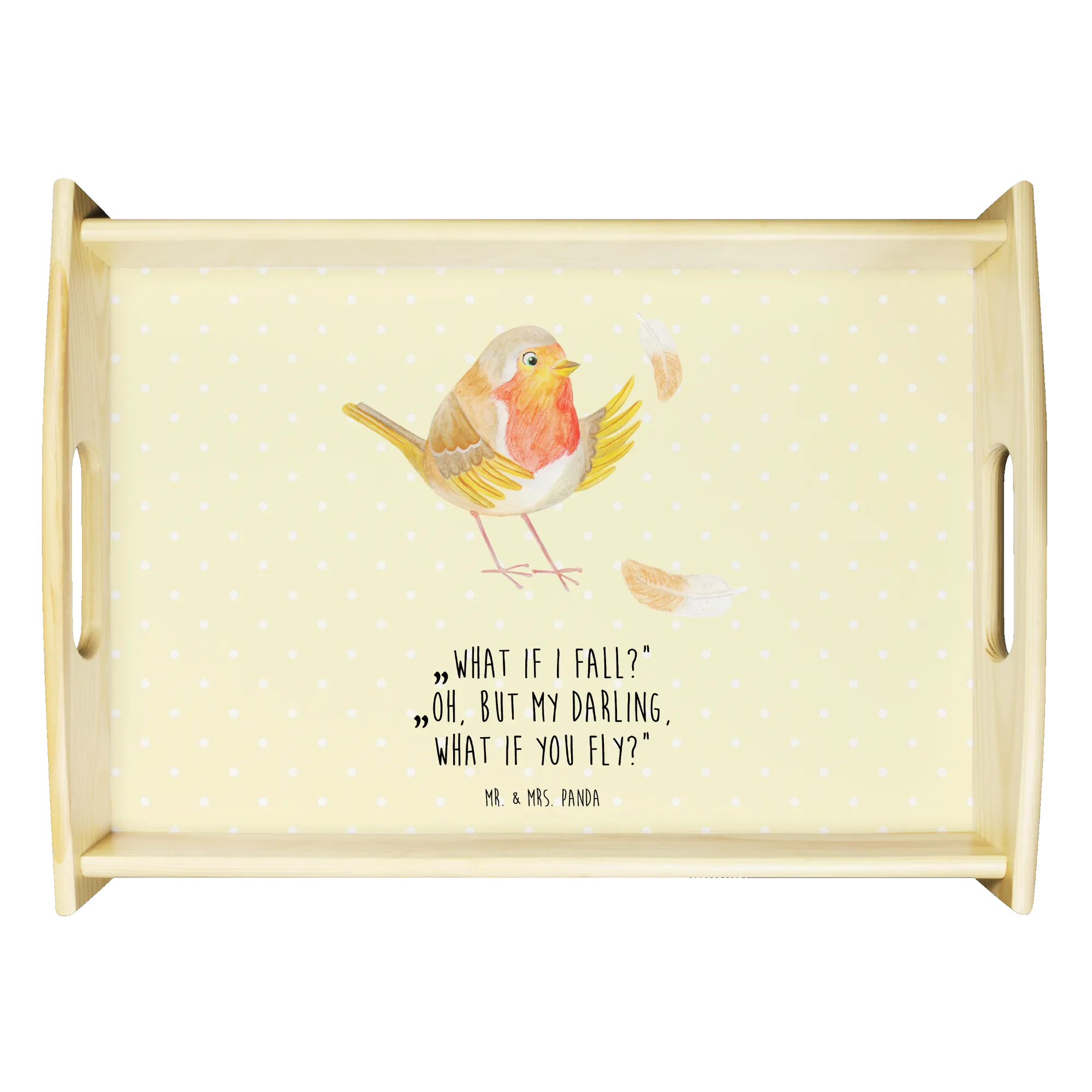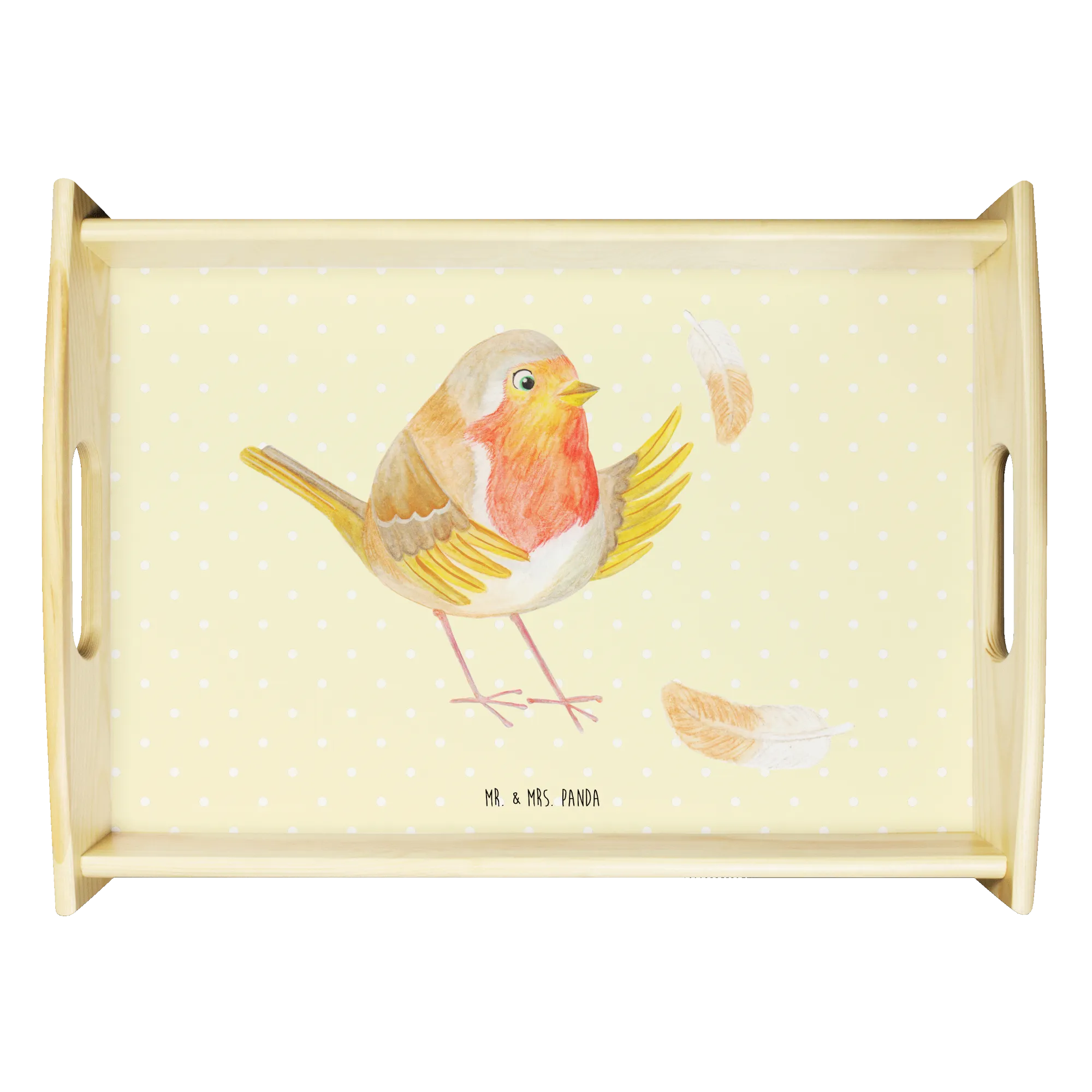 Taca serwisowa rudzik Pióra - z napisem - Pastelowy żółty