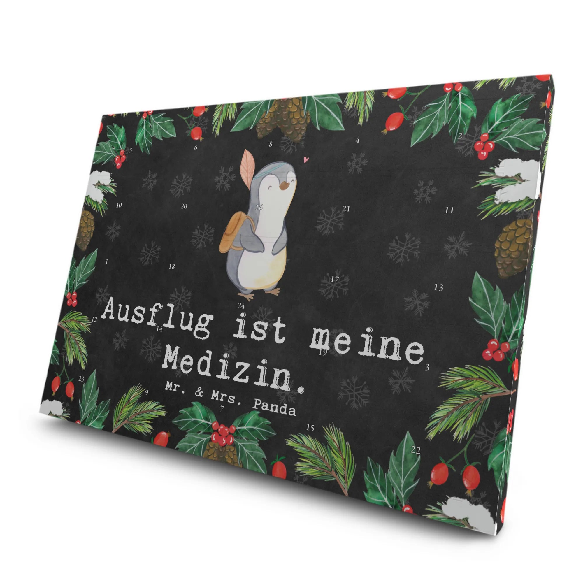 Der Tee Adventskalender mit dem niedlichen Pinguin-Motiv "Ausflug ist meine Medizin" von Mr. & Mrs. Panda ist das perfekte Geschenk für alle, die das Abenteuer lieben und gerne reisen.