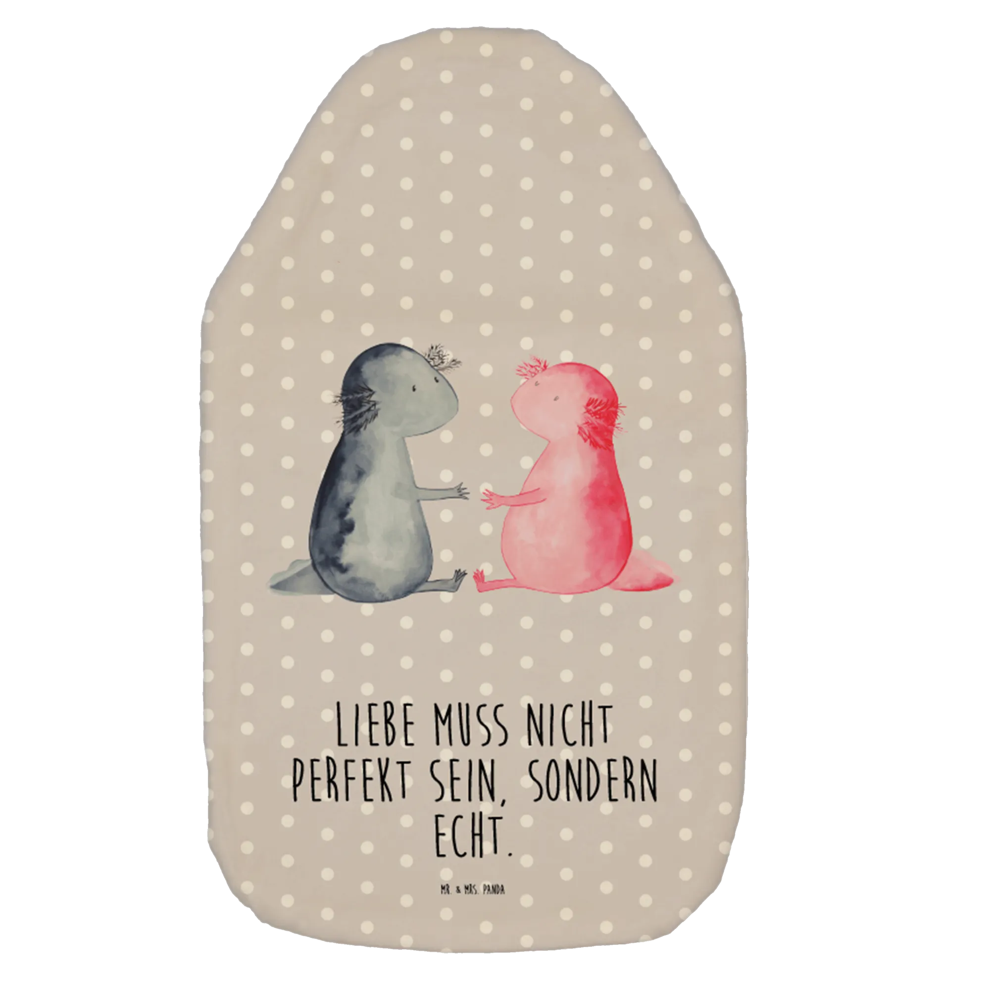 Termofor Axolotl miłość - z napisem - Szary Pastel