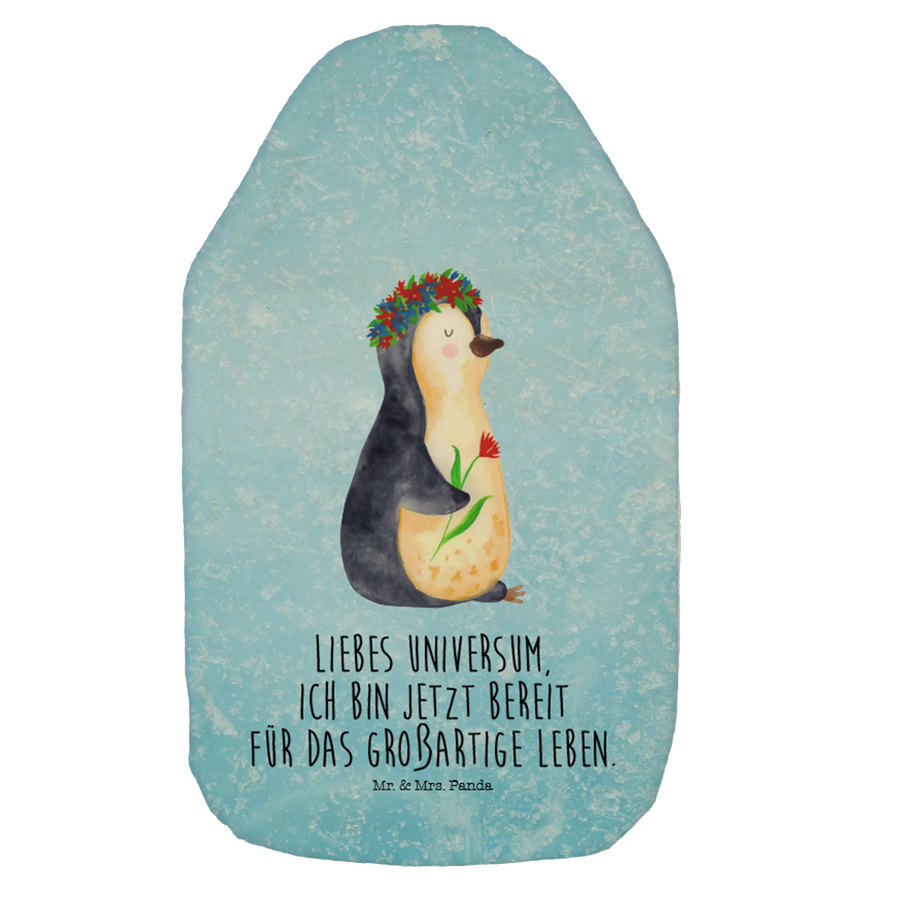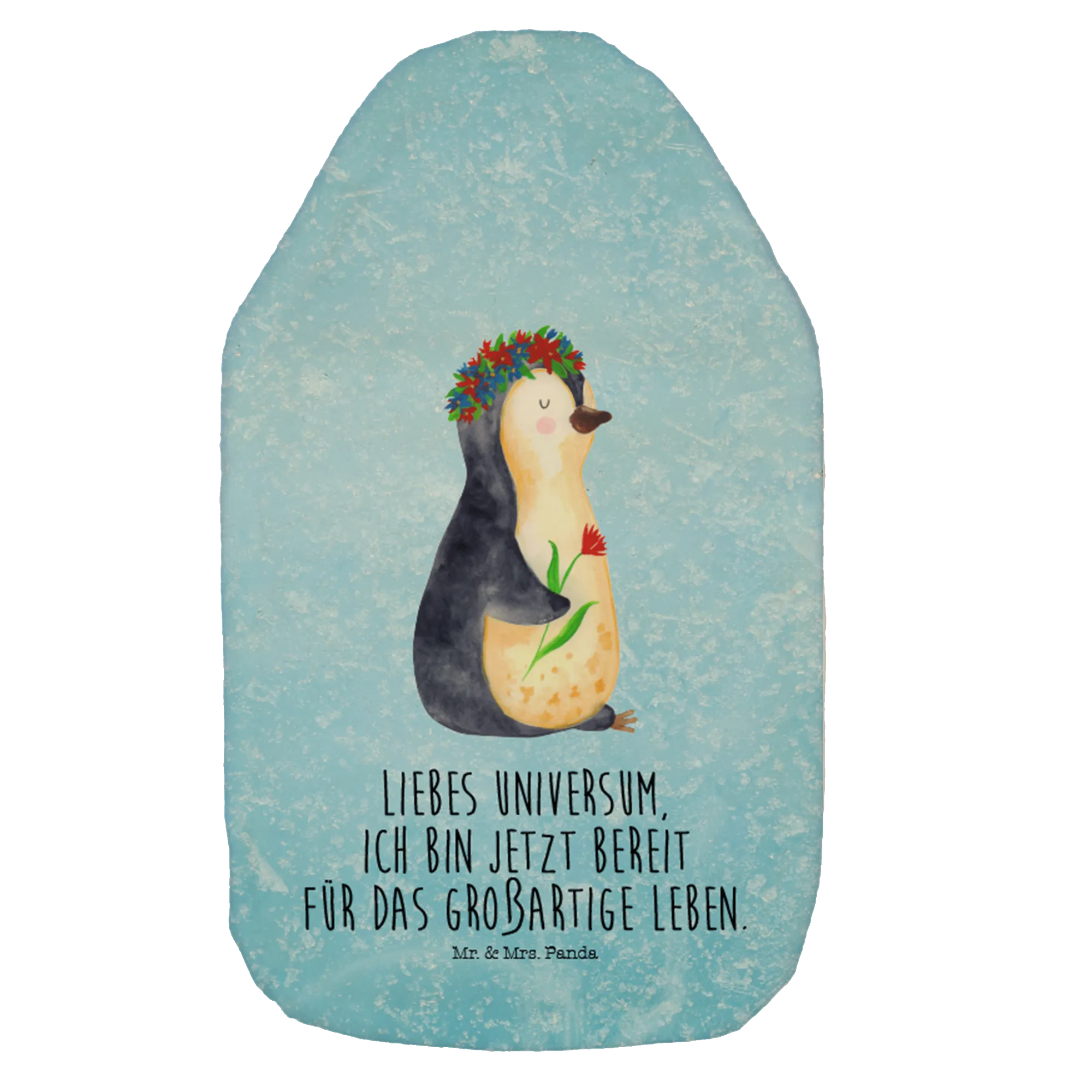 Termofor pingwin kwiaty - z napisem - Eisblau