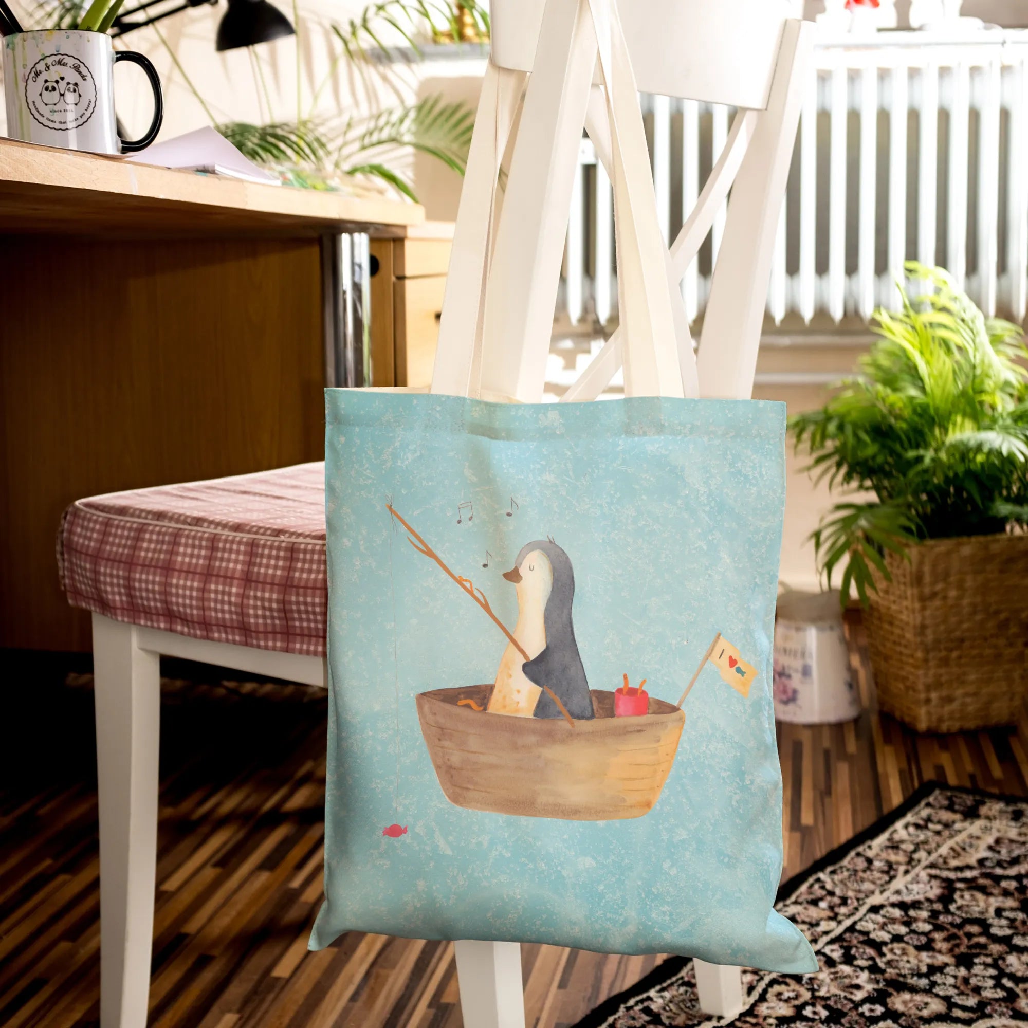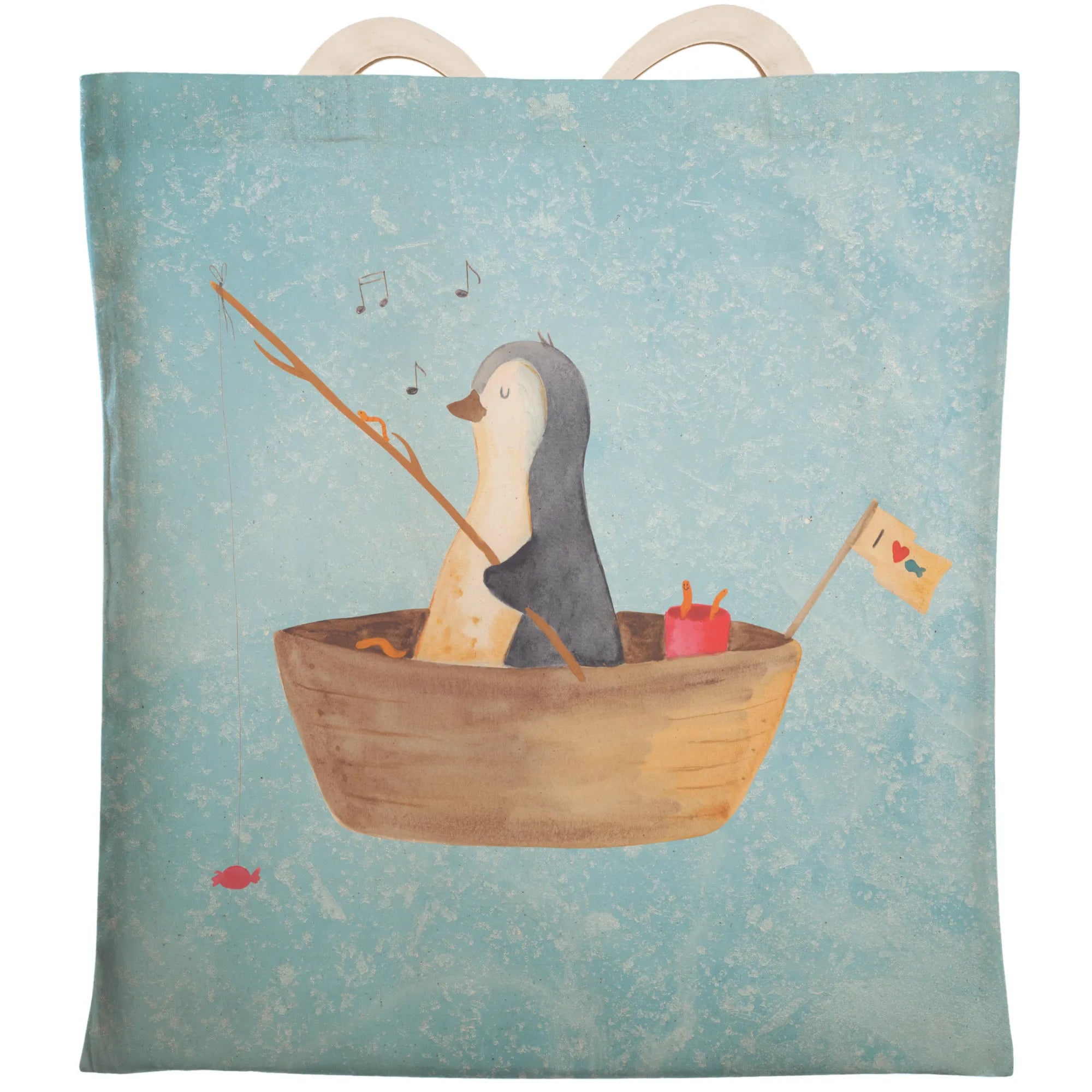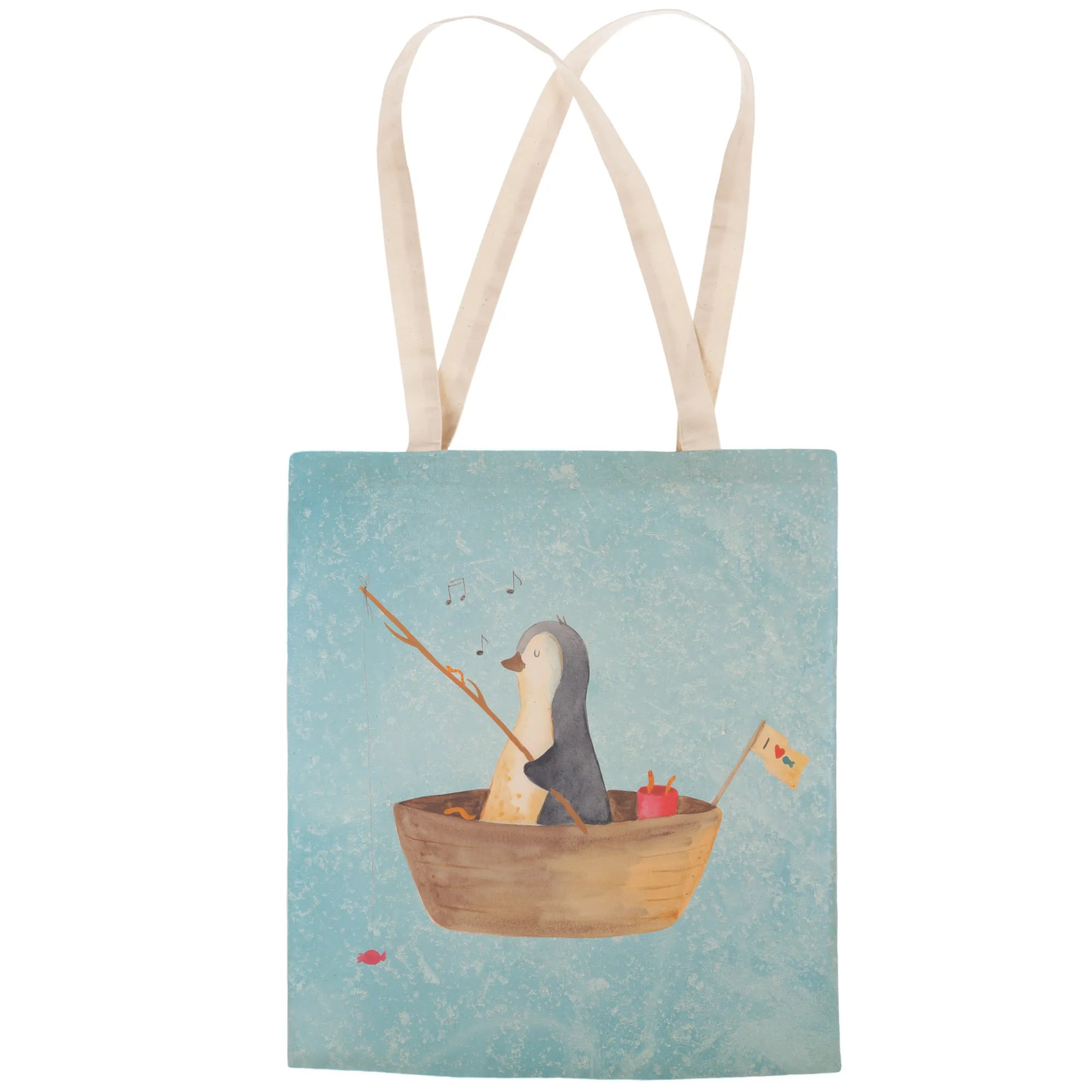 torba na zakupy pingwin łódka wędkarska - z napisem