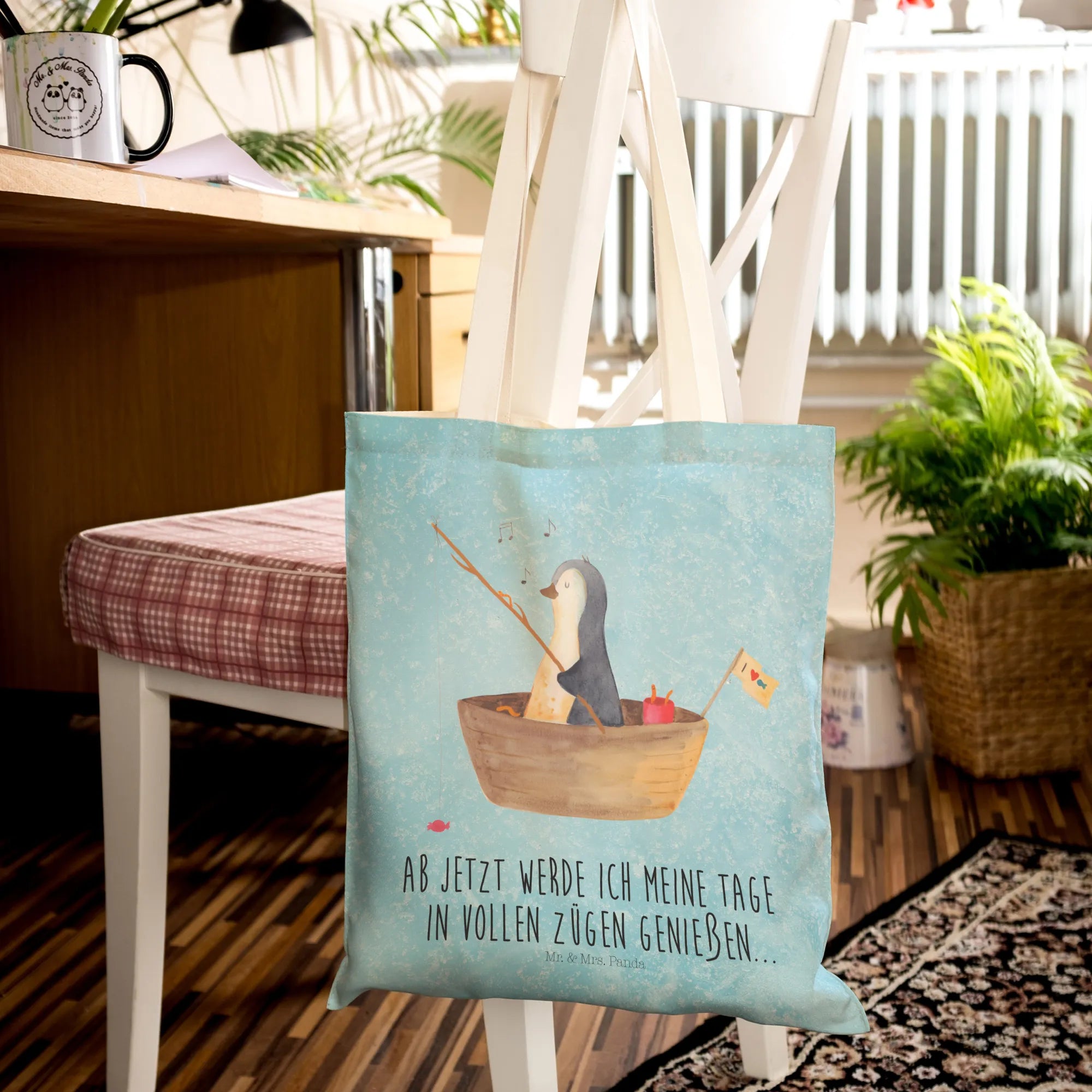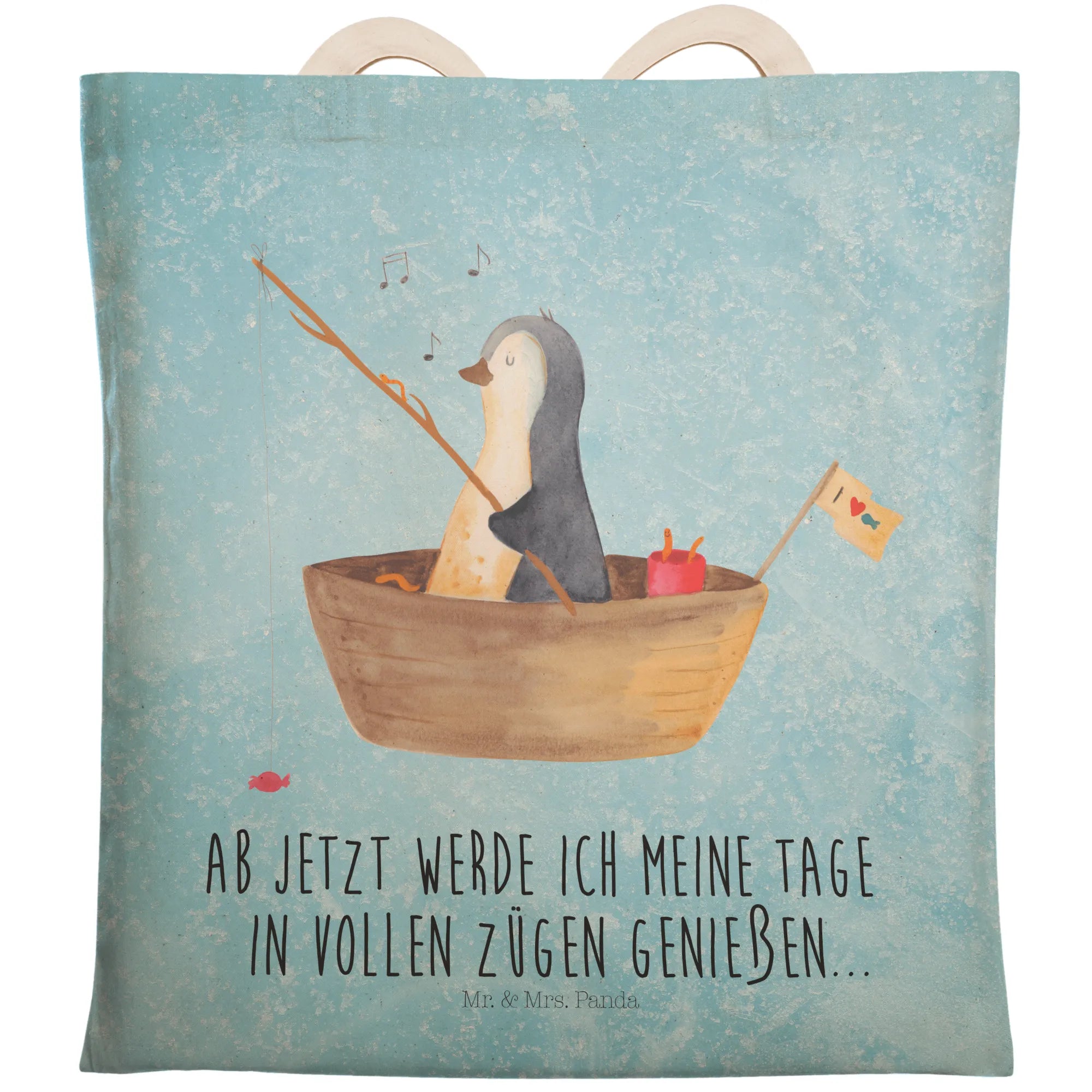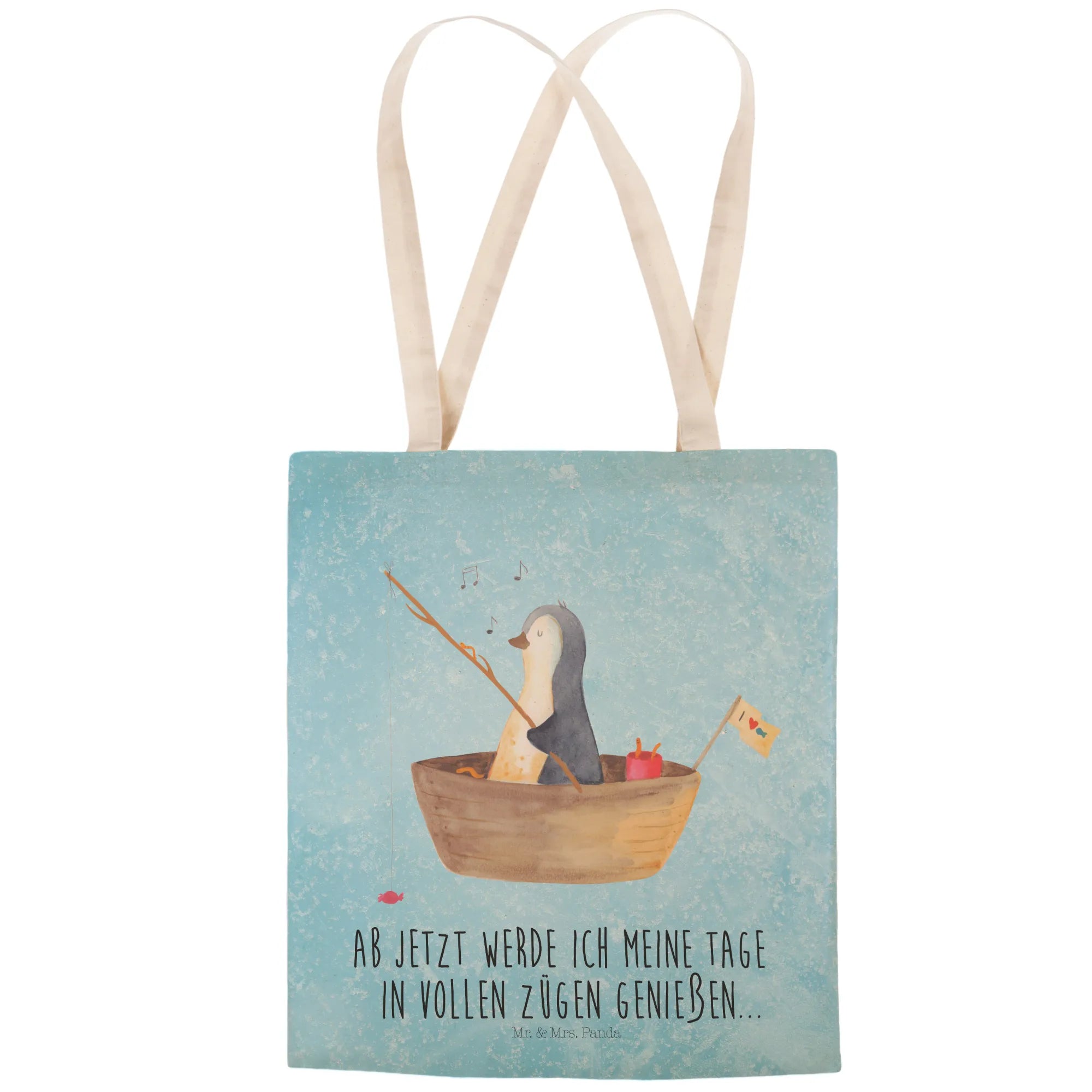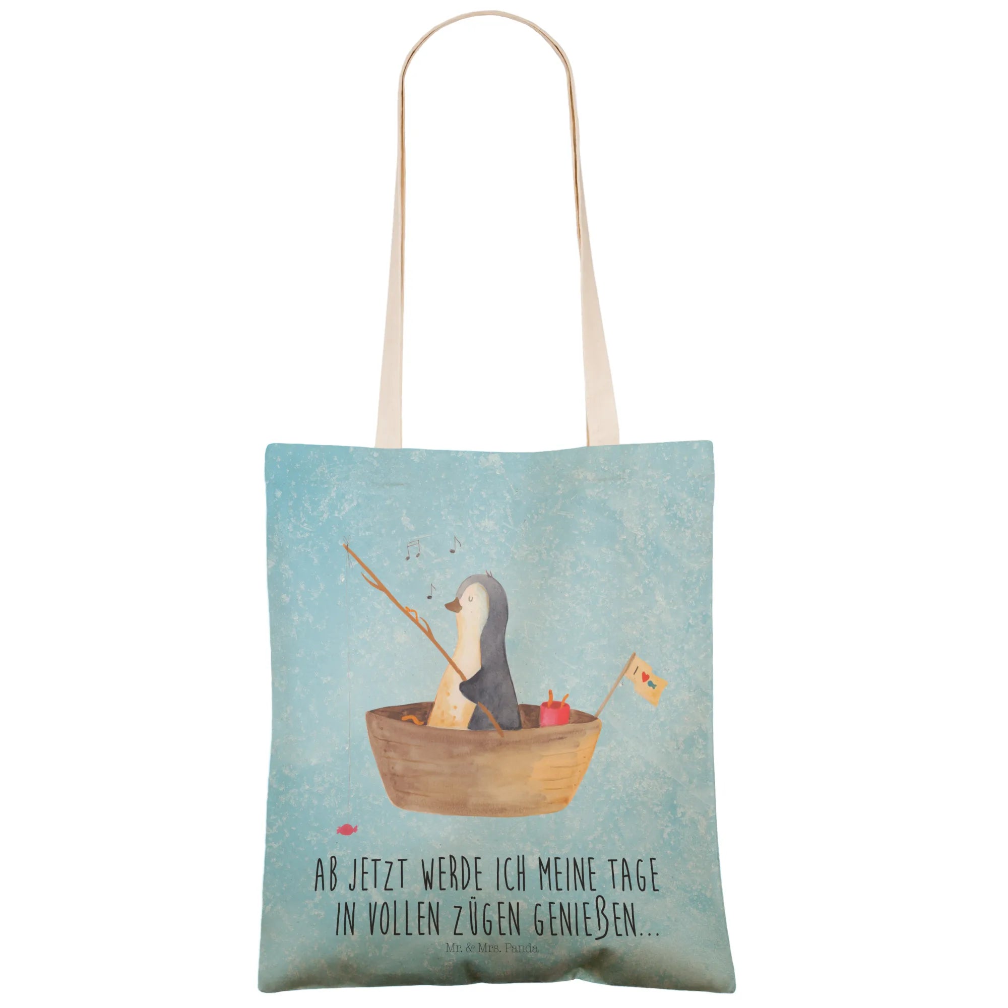 torba na zakupy pingwin łódka wędkarska - z napisem