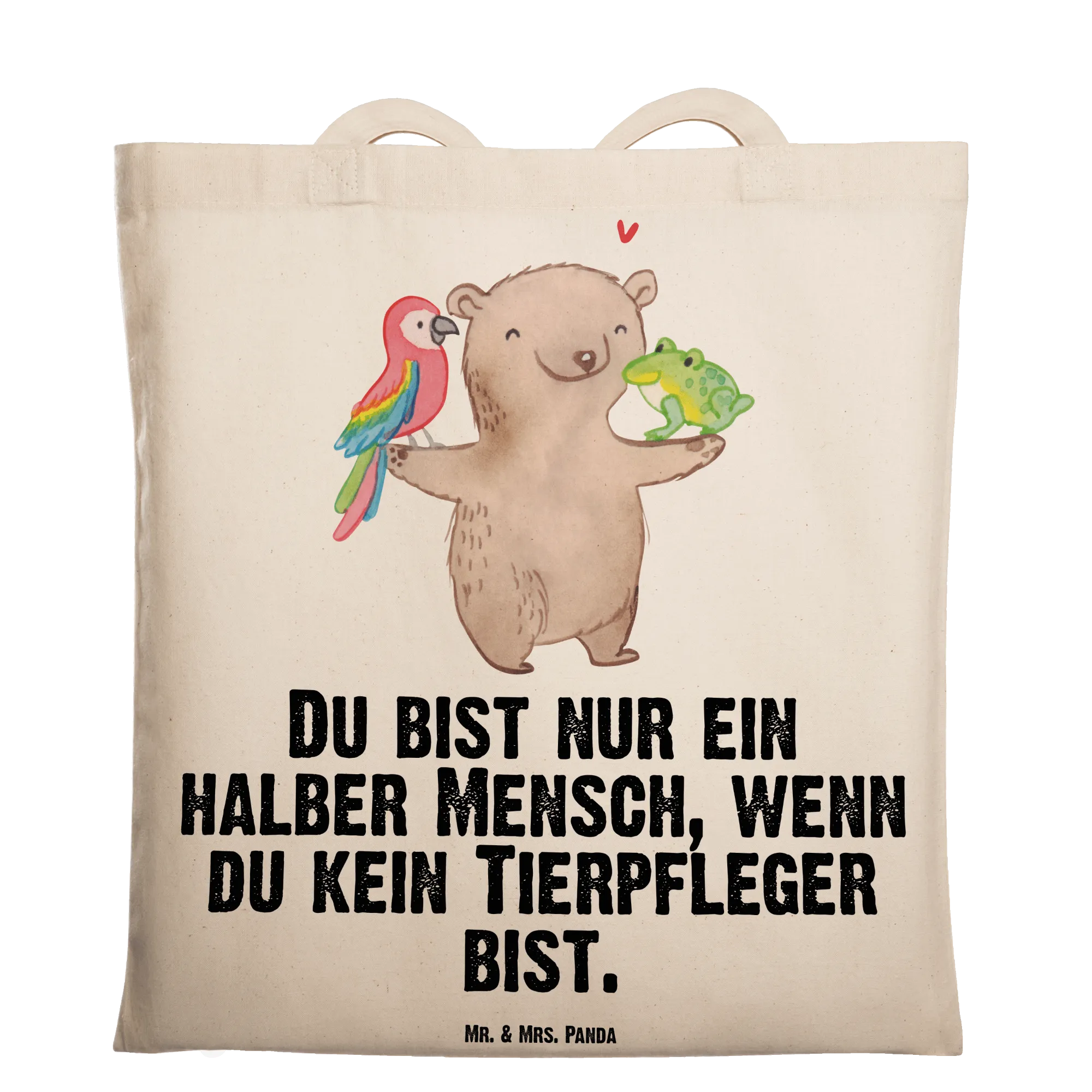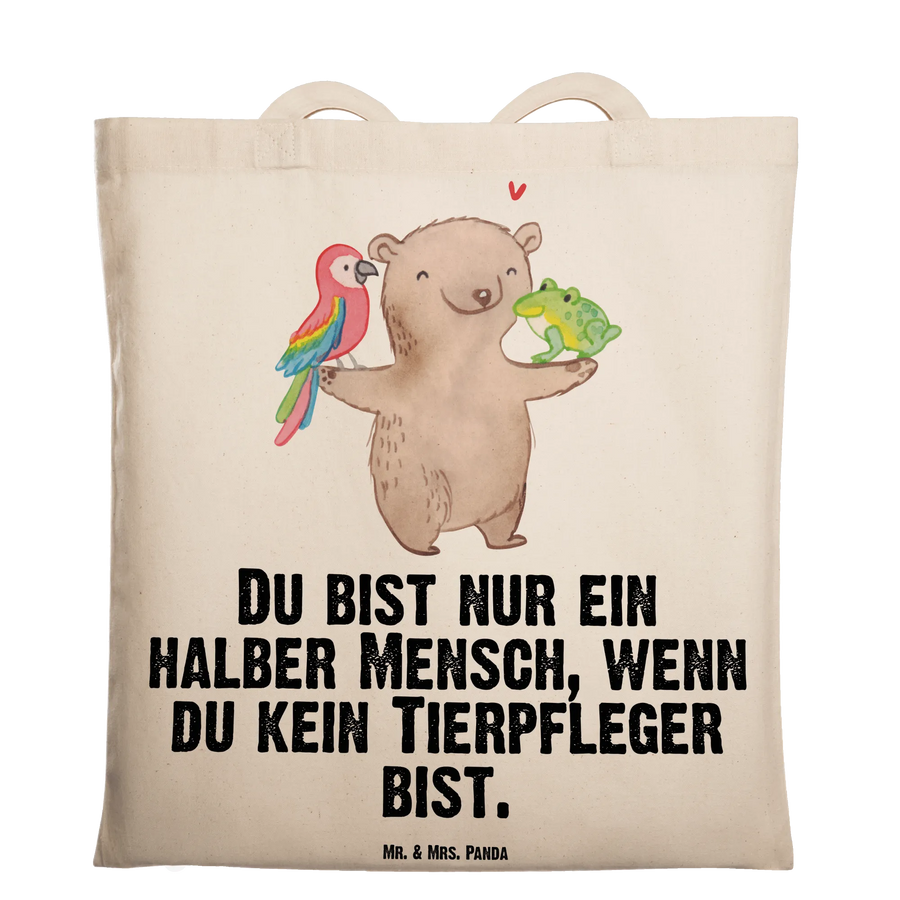 Liebevoll & praktisch: Die Tragetasche „Tierpfleger mit Herz“ von Mr. & Mrs. Panda vereint niedliches Design mit echtem Alltagsnutzen. Ein handgezeichnetes Motiv zeigt einen süßen Bären, der sich liebevoll um einen Papagei und einen Frosch kümmert. Der Spruch „Du bist nur ein halber Mensch, wenn du kein Tierpfleger bist.“ macht die Tasche zum perfekten Geschenk für Tierpfleger, Azubis und Tierfreunde.