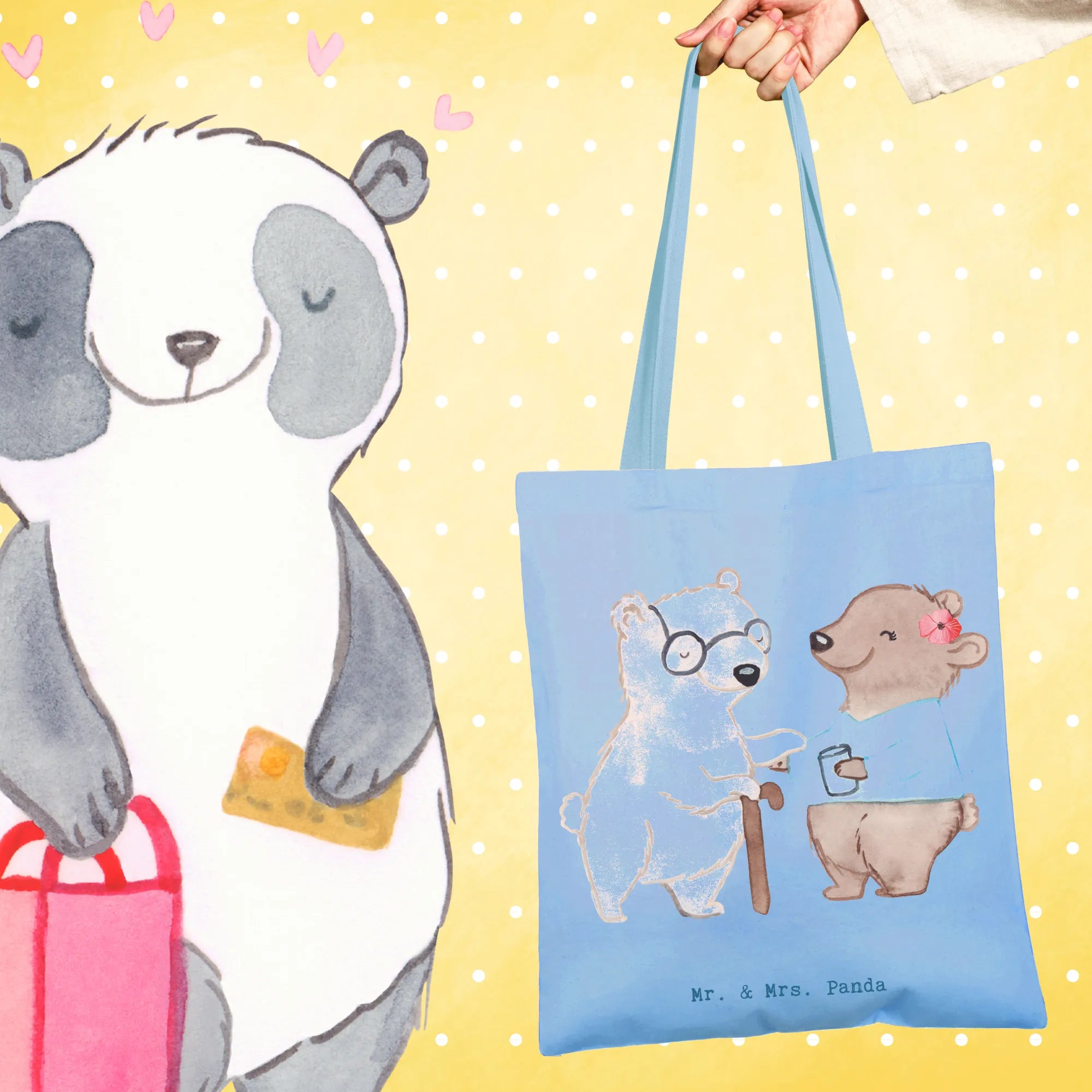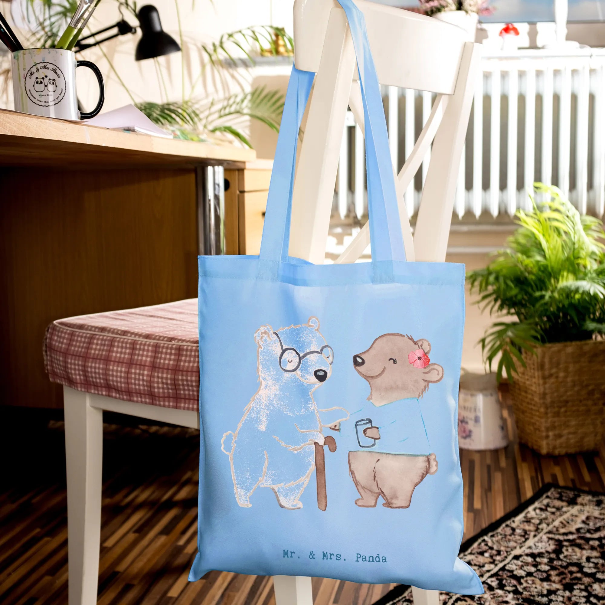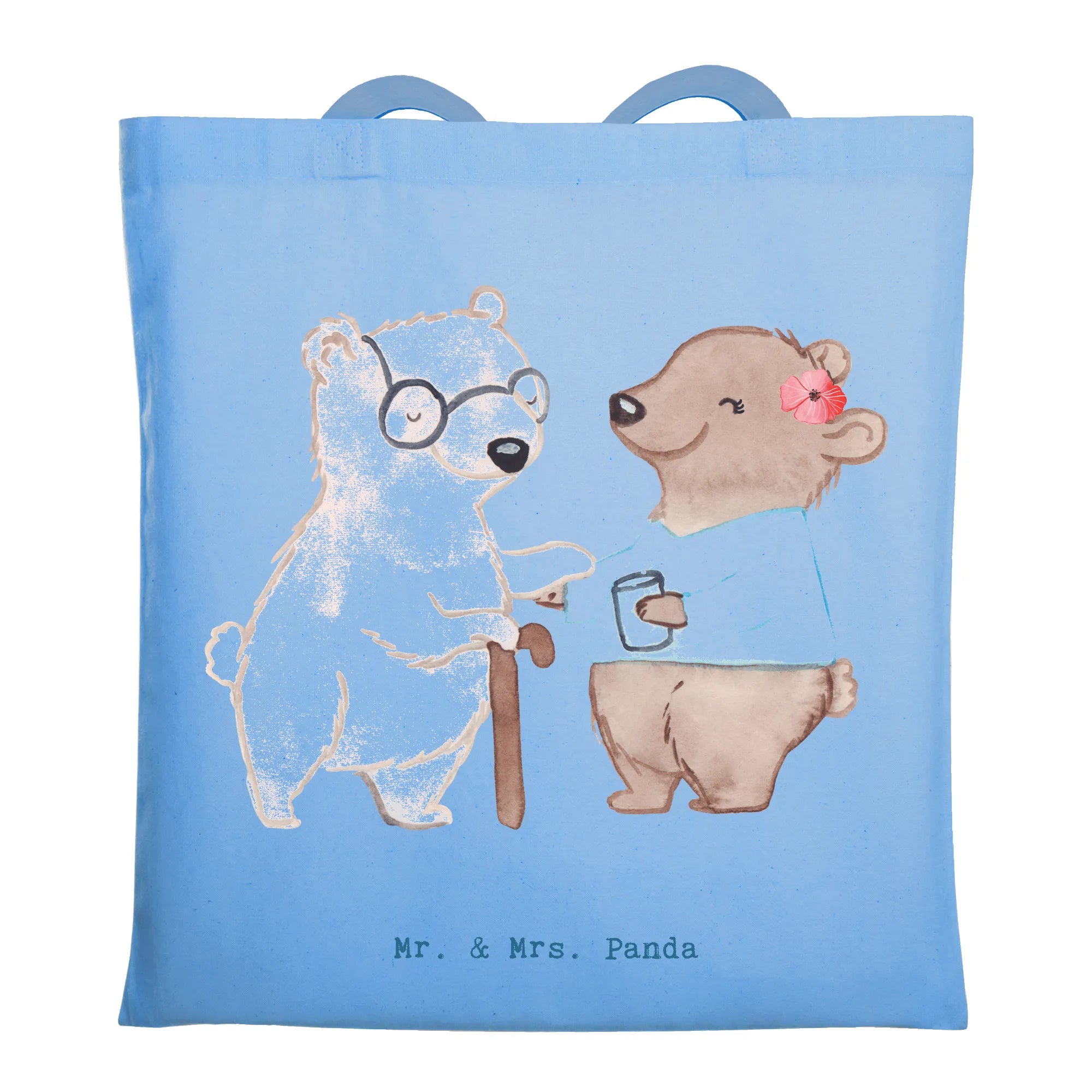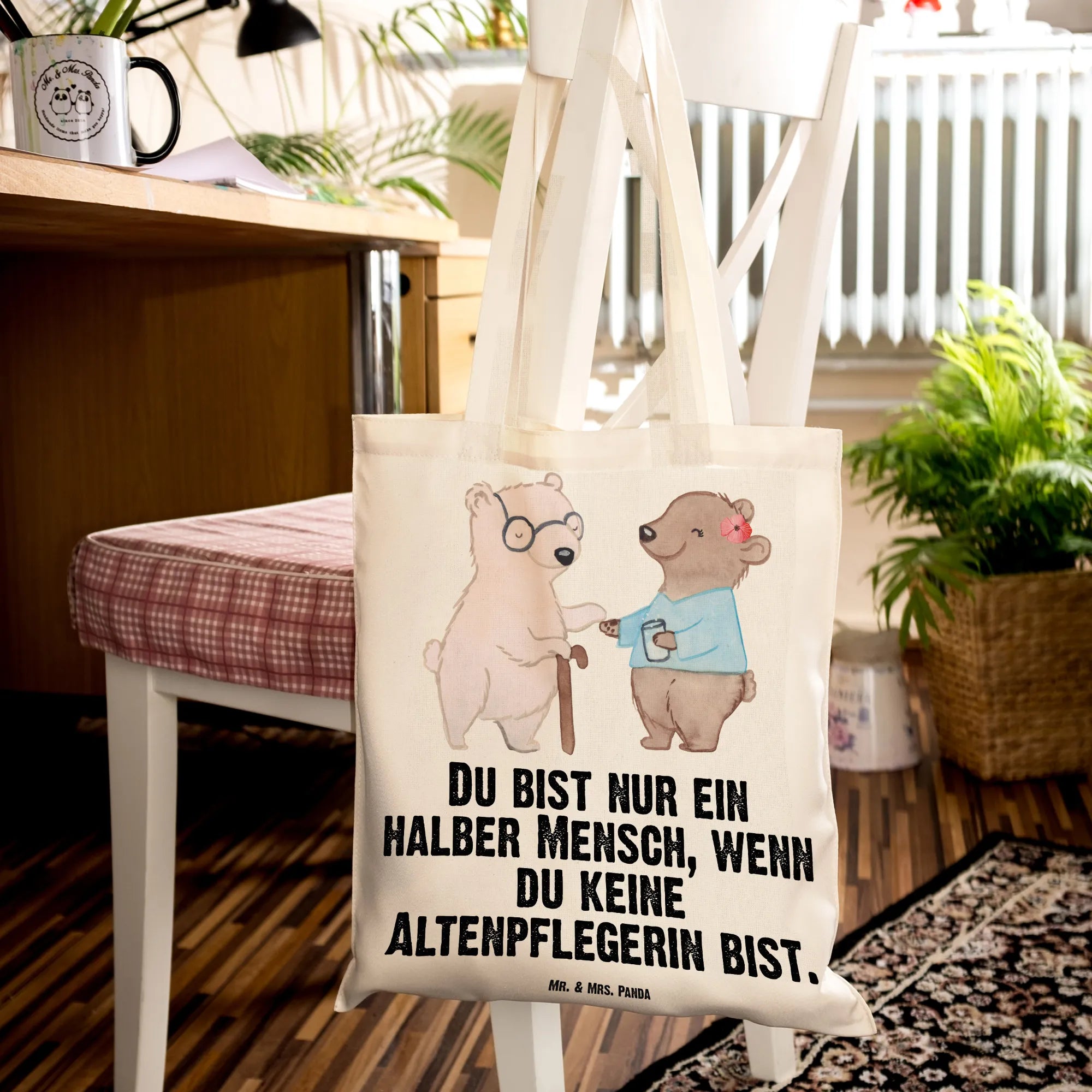 Ein Herzensgeschenk für echte Alltagsheldinnen: Unsere Tragetasche "Altenpflegerin mit Herz" von Mr. & Mrs. Panda vereint niedliche Illustration, liebevollen Spruch und praktischen Nutzen. Das Motiv zeigt einen kleinen Bären, der einer älteren Bären-Dame mit Krückstock hilft — ein Bild voller Wärme und Wertschätzung, begleitet vom Spruch: "Du bist nur ein halber Mensch, wenn du keine Altenpflegerin bist."