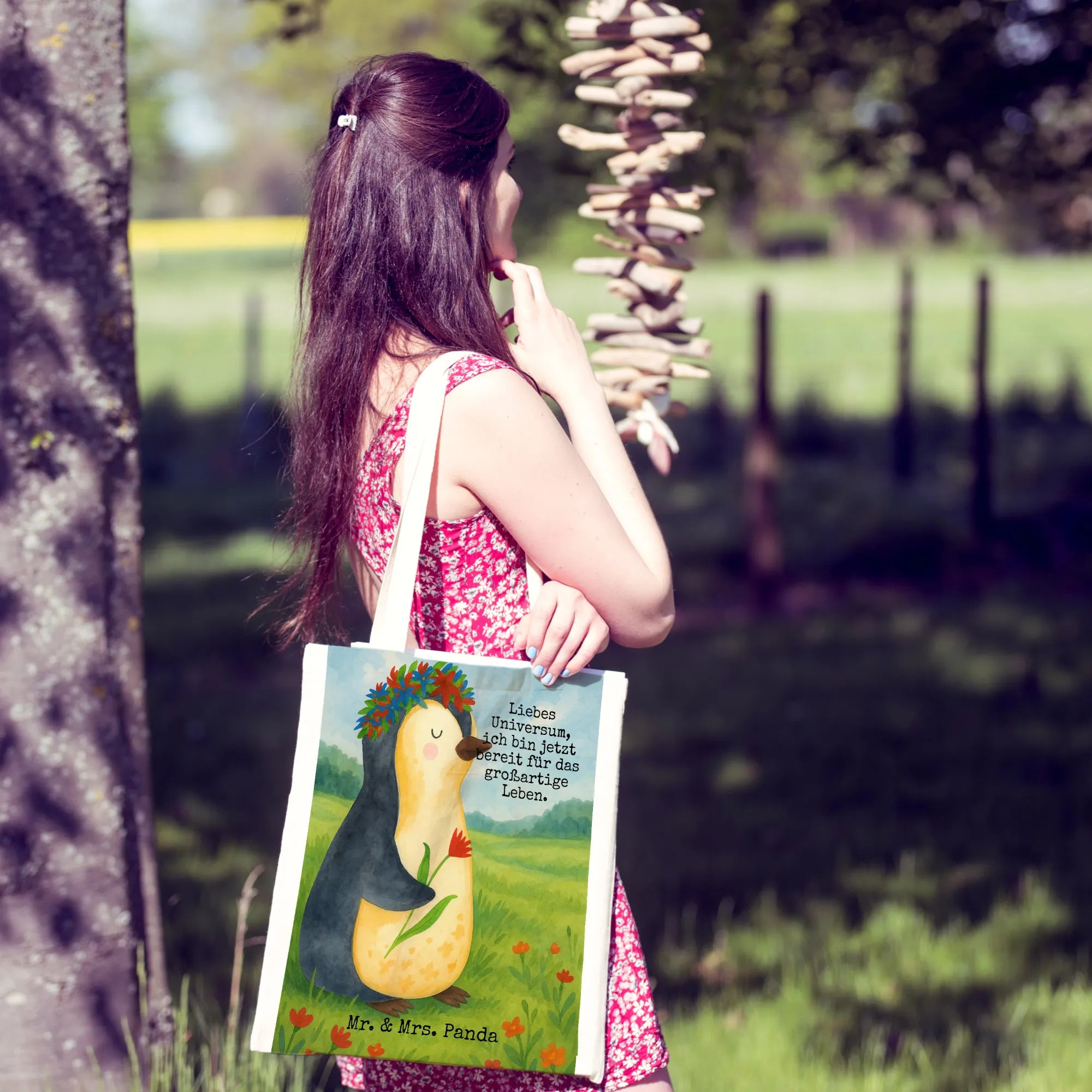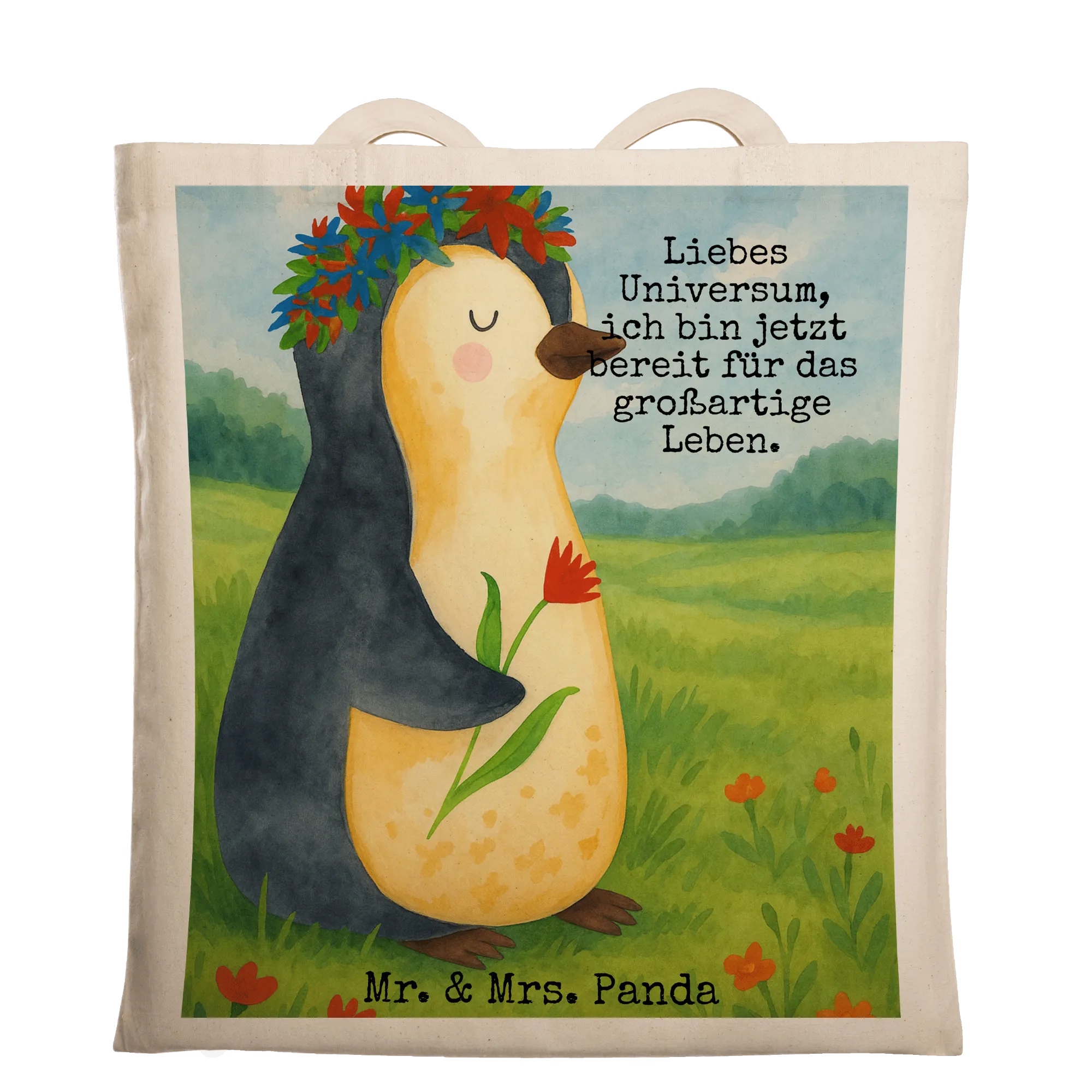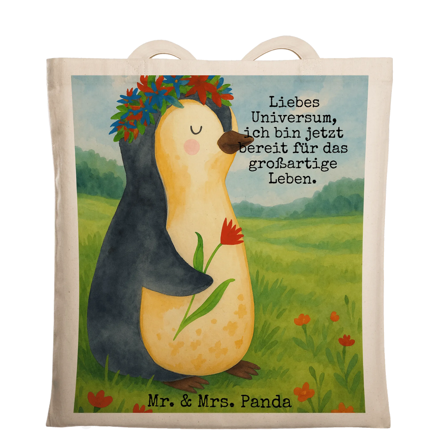 Tragetasche Pinguin Blumen Design - mit Spruch