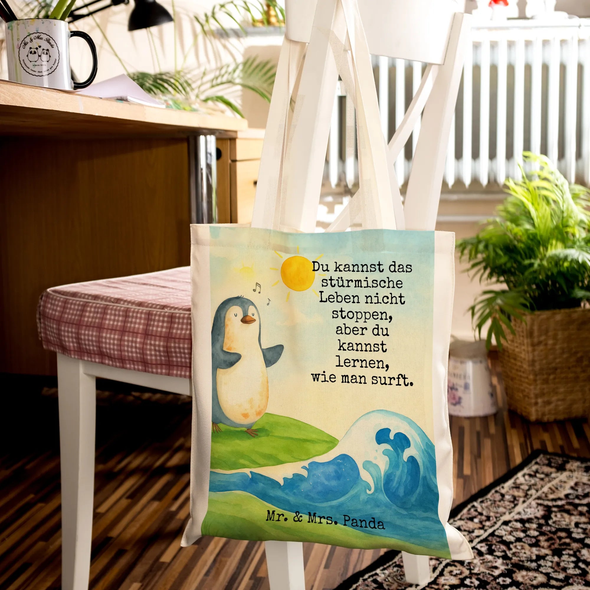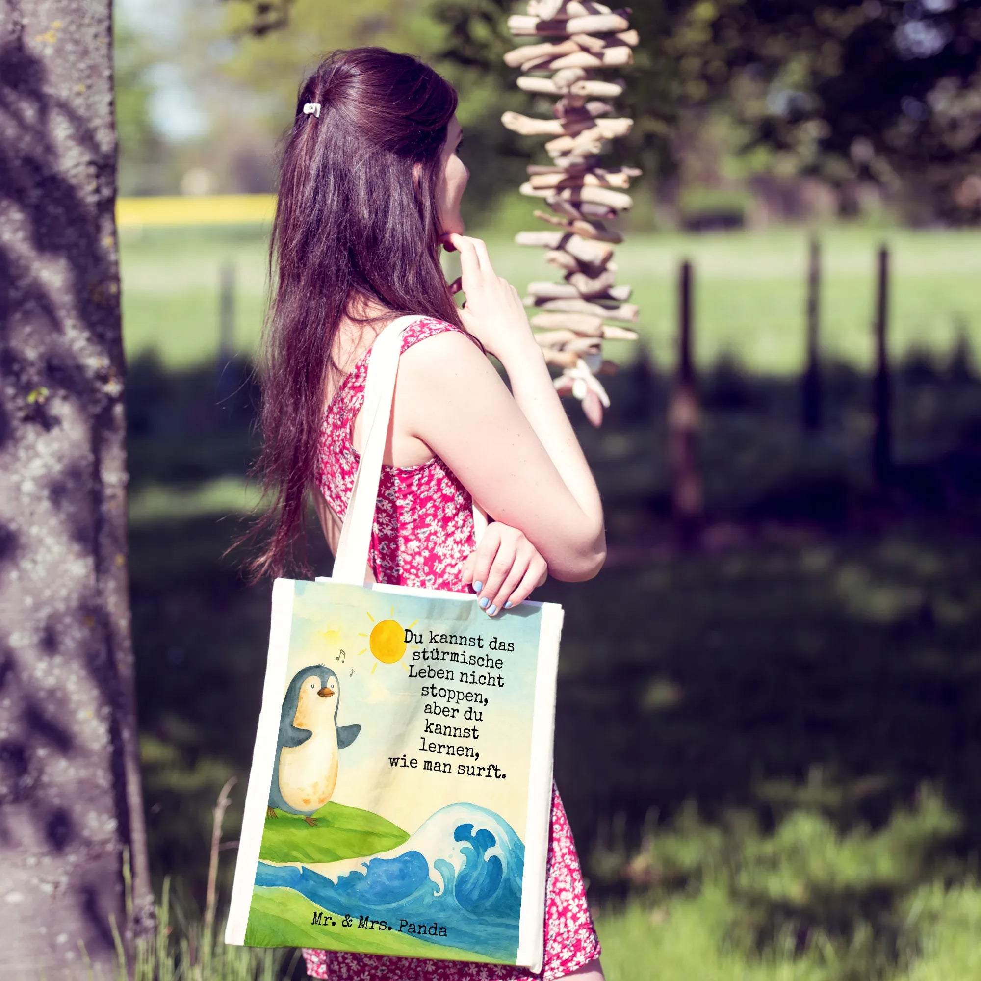 Spüre das Meer: Tragetasche „Pinguin Surfer“ von Mr. & Mrs. Panda