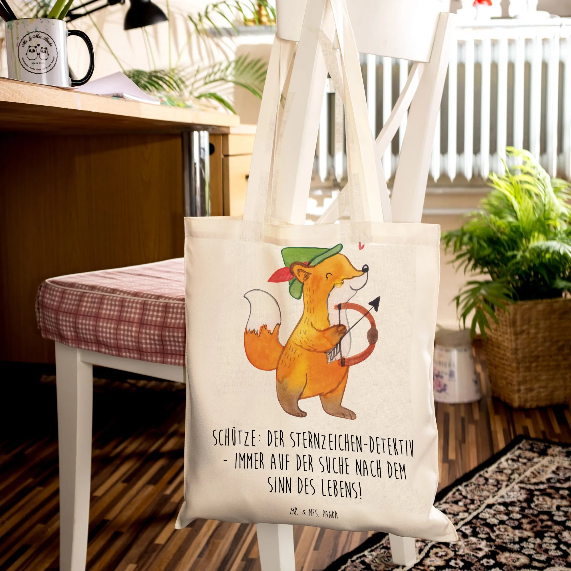 Suchst du ein Geschenk mit Herz und Charakter? Unsere Tragetasche Schütze aus der Sternzeichen-Kollektion von Mr. & Mrs. Panda ist ein fröhlicher Alltagsbegleiter und zugleich ein liebevolles Geschenk für Astrologie-Fans. Mit dem frechen Spruch „Schütze: Der Sternzeichen-Detektiv - immer auf der Suche nach dem Sinn des Lebens!“ zauberst du sofort ein Lächeln.