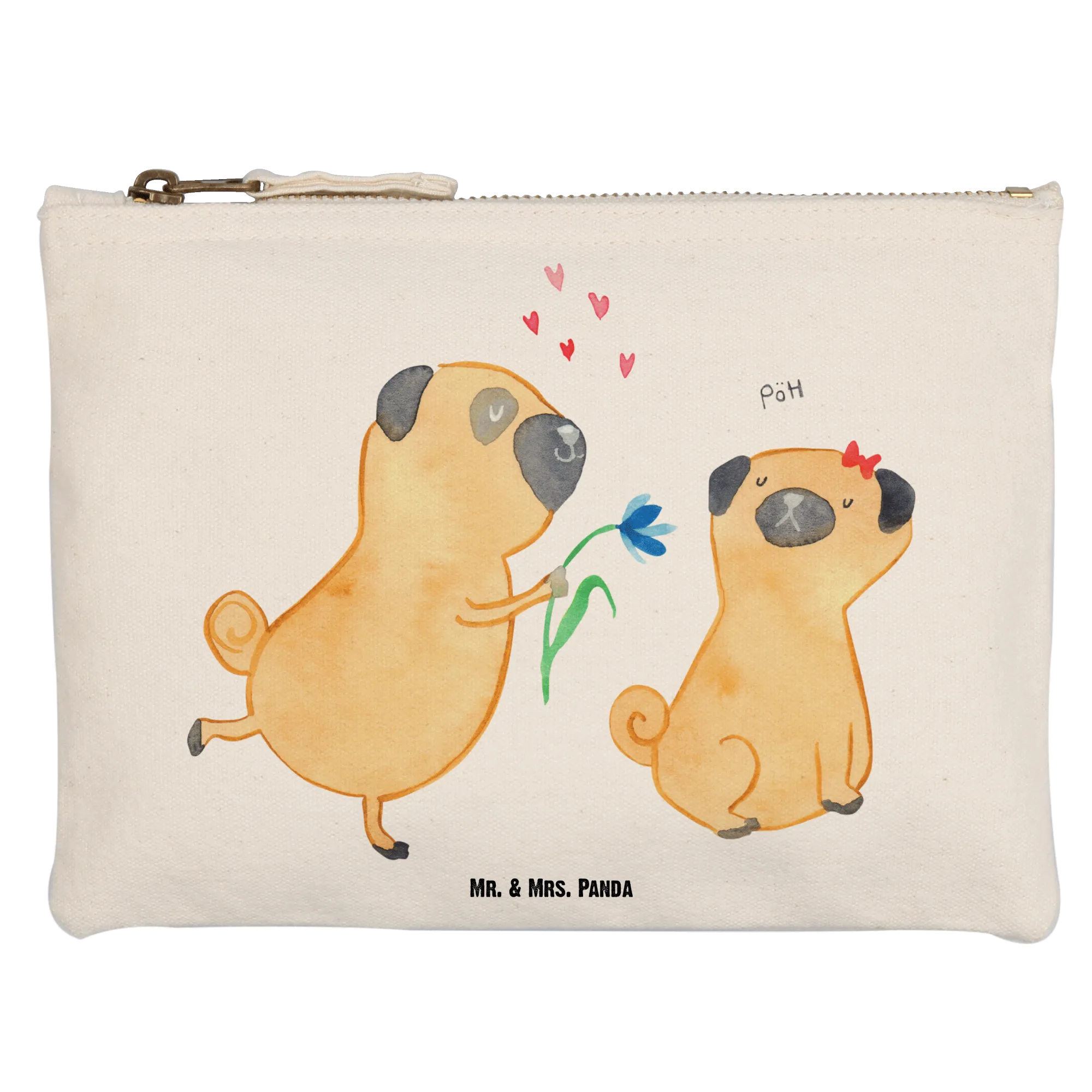 torebka na makijaż mops Zakochani - Rozmiar XL Duży - z napisem