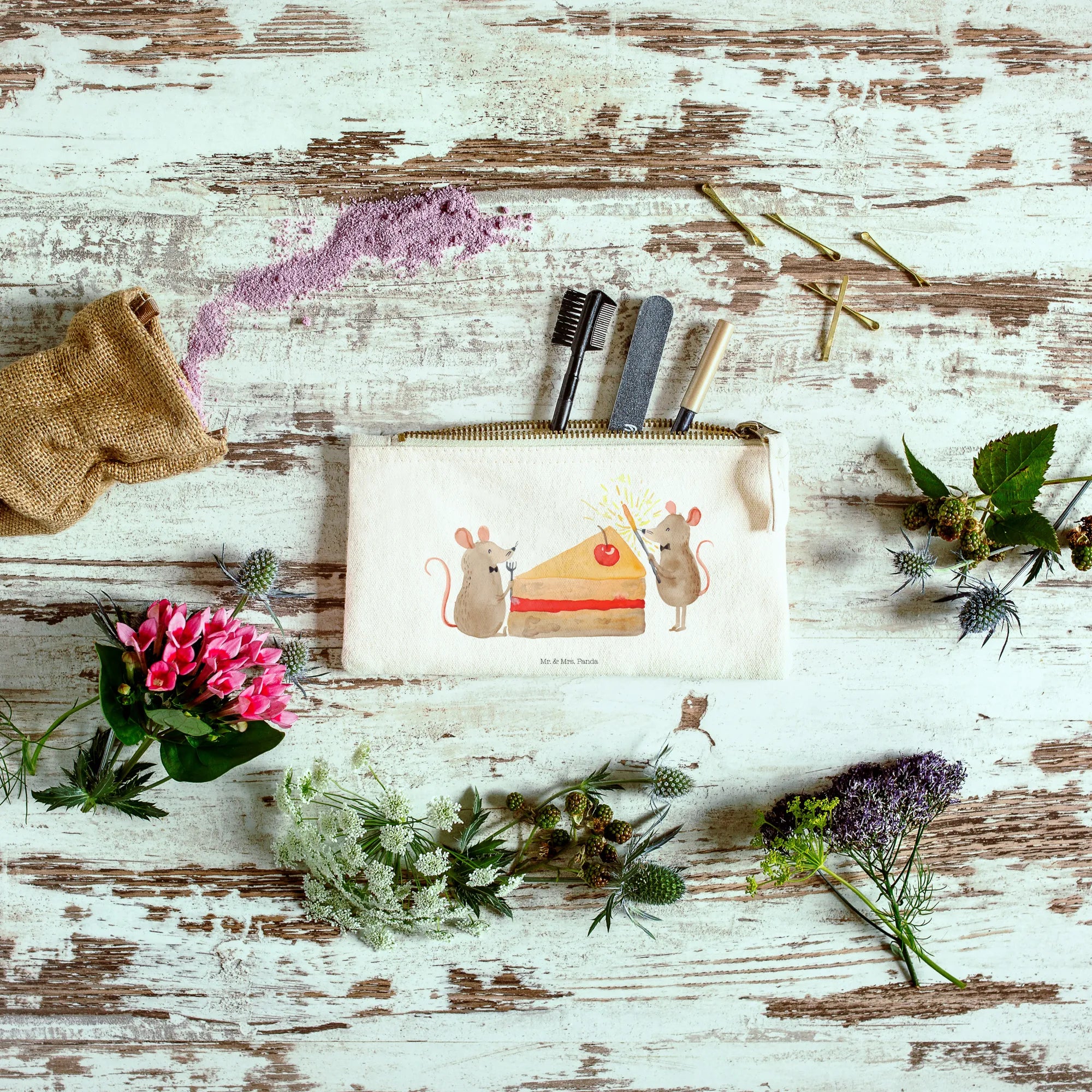 torebka na makijaż myszy ciasto - Rozmiar XL Duży - z napisem