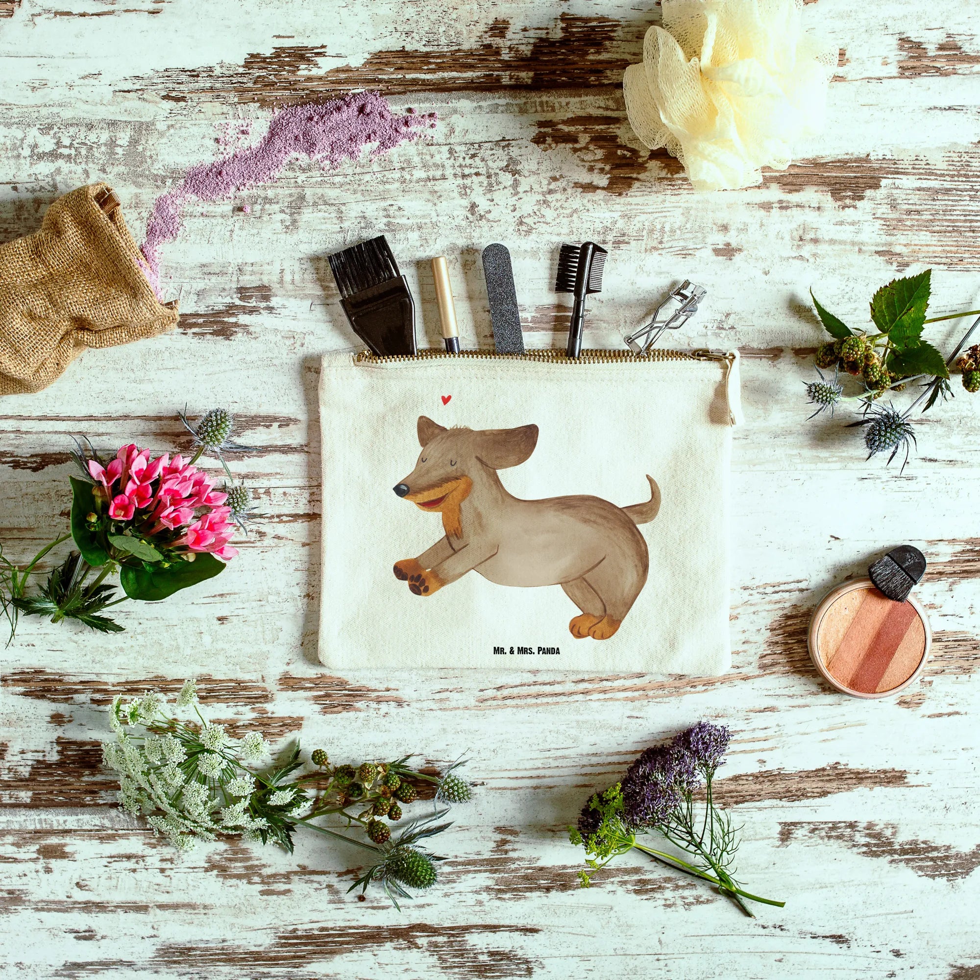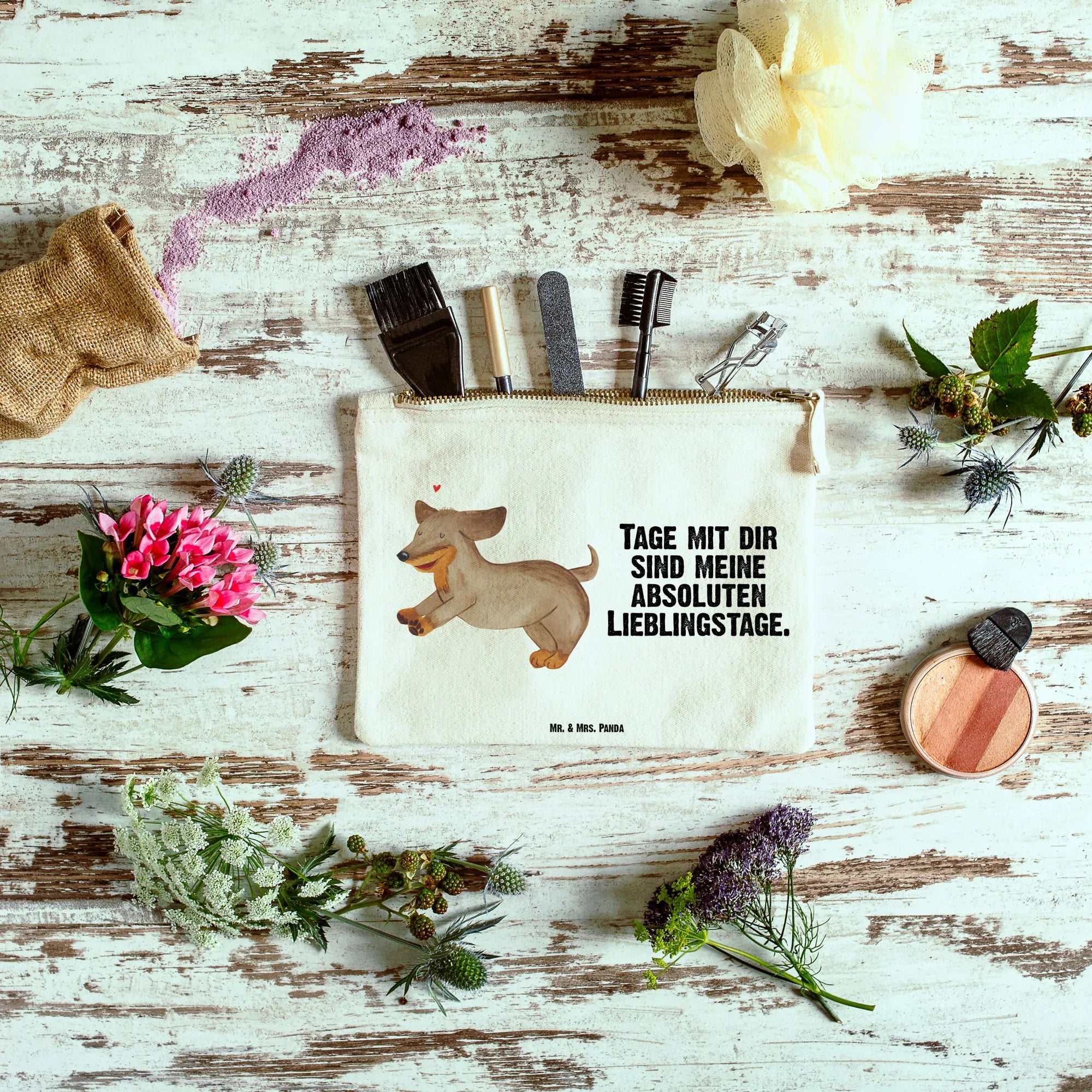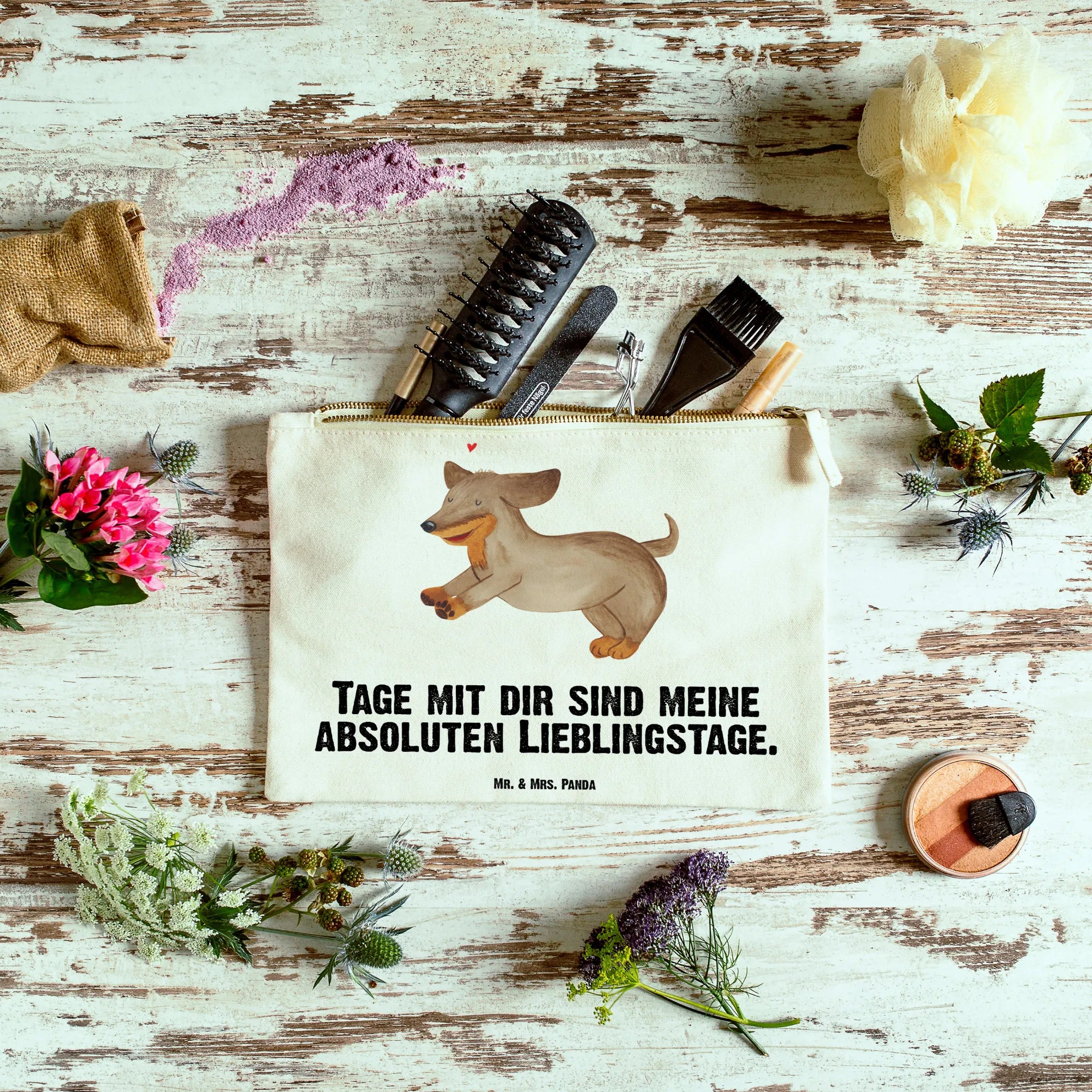 torebka na makijaż pies Jamnik - Rozmiar XL Duży - z napisem