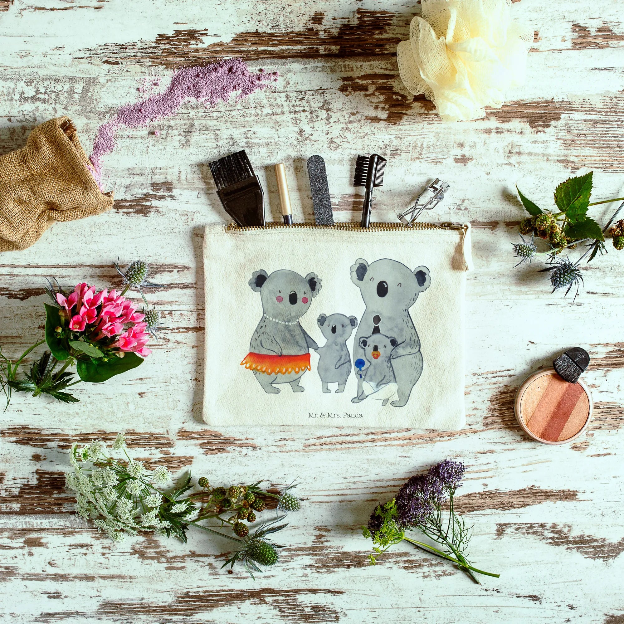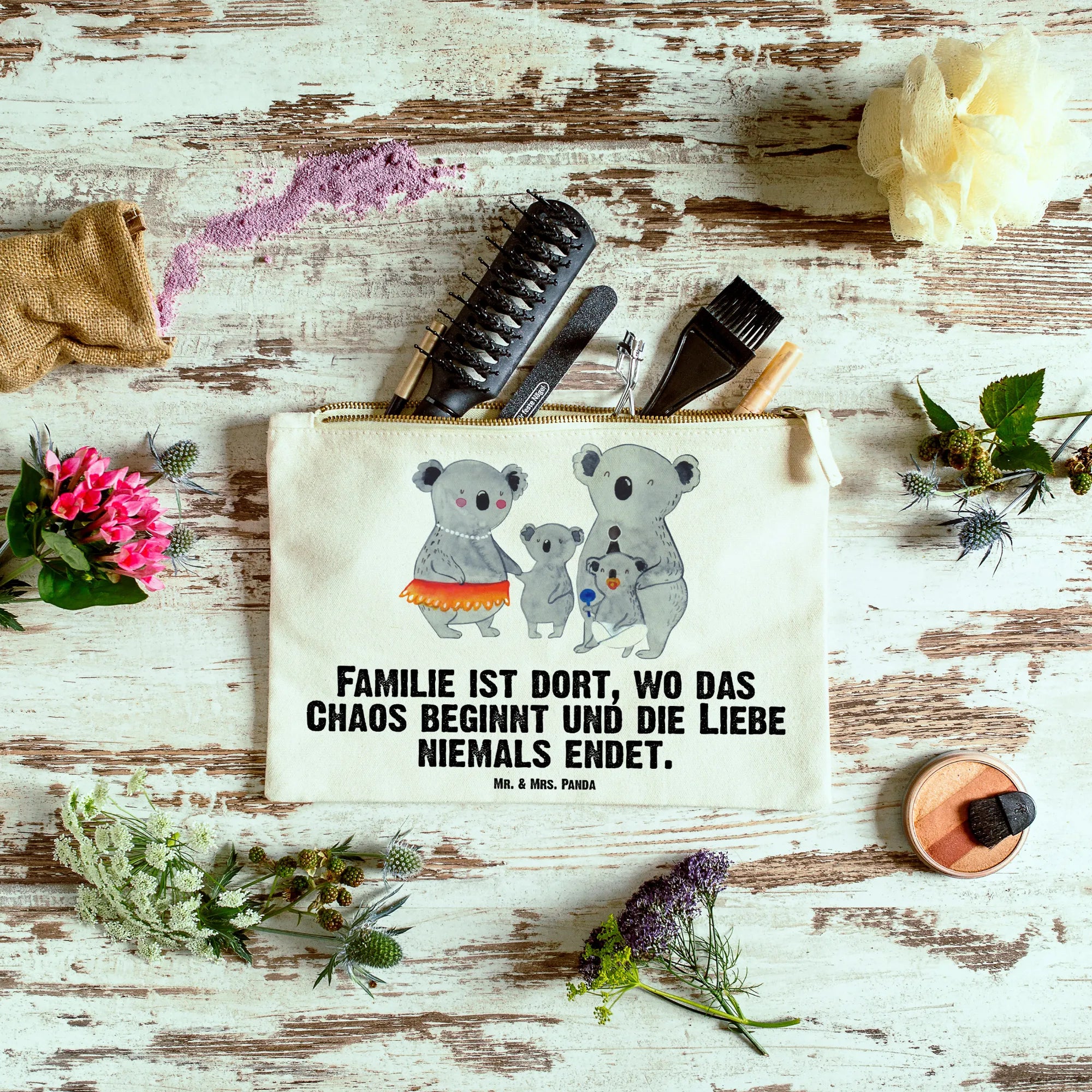 torebka na makijaż Rodzina koali - Rozmiar XL Duży - z napisem