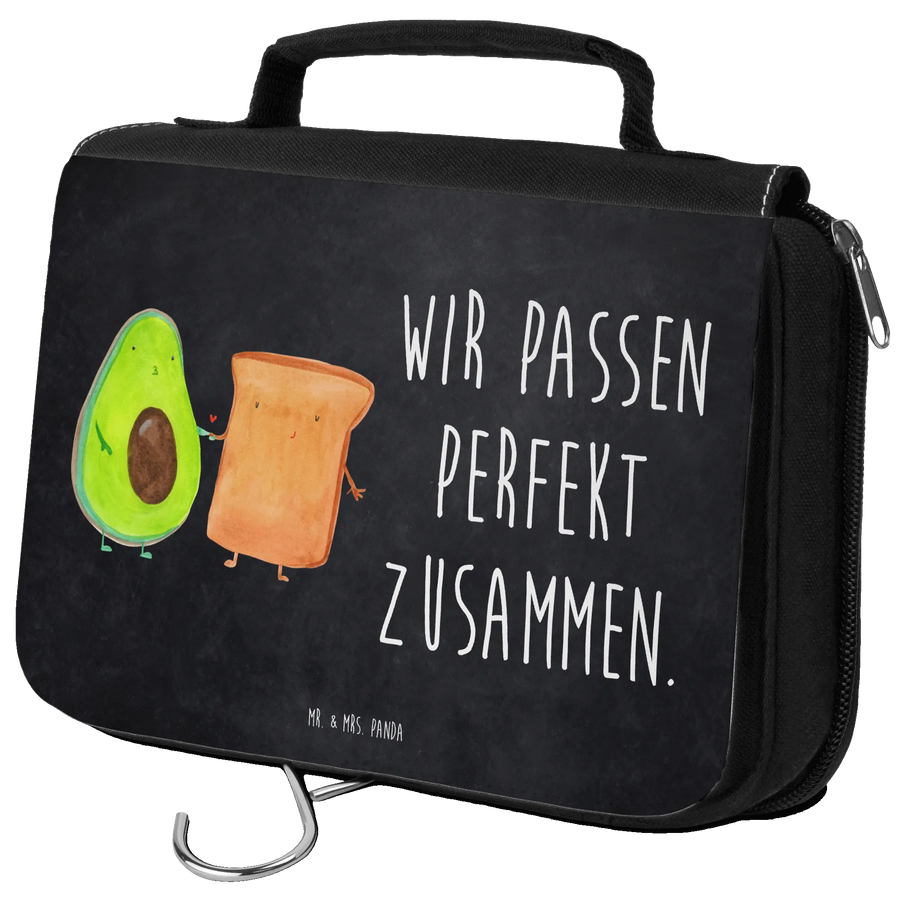 Unsere liebevoll gestaltete Kosmetiktasche zeigt eine zuckersüße Avocado und ein knuspriges Toastbrot, die Händchen halten – mit dem süßen Slogan „Wir passen perfekt zusammen.“ auf einem charmanten Kreidetafel-Hintergrund. Ein perfektes Hochzeitsgeschenk, Jahrestagsgeschenk oder Präsent zur Verlobungsparty für Pärchen, die gern mit Stil durchs Leben gehen.