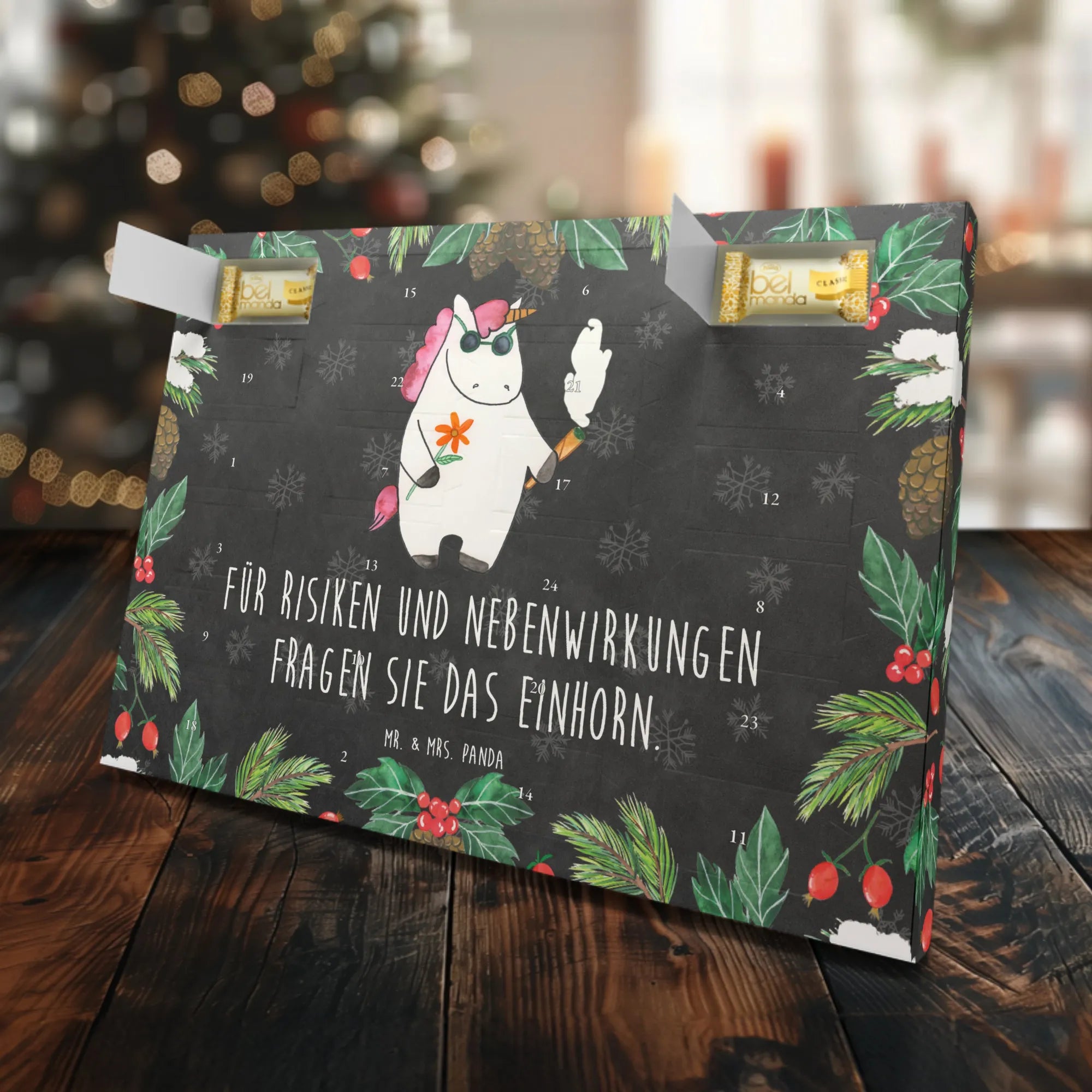 Die fantastische Holzoptik und das liebevoll gestaltete Einhorn-Motiv ziehen alle Blicke auf sich. Das Woodstock-Einhorn mit Sonnenbrille, Joint und seinem entspannten Lifestyle vermittelt sofort gute Laune und lässt Dich daran erinnern, die kleinen Freuden des Lebens zu genießen. Der Spruch „Für Risiken und Nebenwirkungen fragen Sie das Einhorn.“ sorgt zusätzlich für Lacher und macht diesen Adventskalender zu einem witzigen Geschenk für Partylöwen und Hobby-Schlawiner, die das Besondere lieben.
