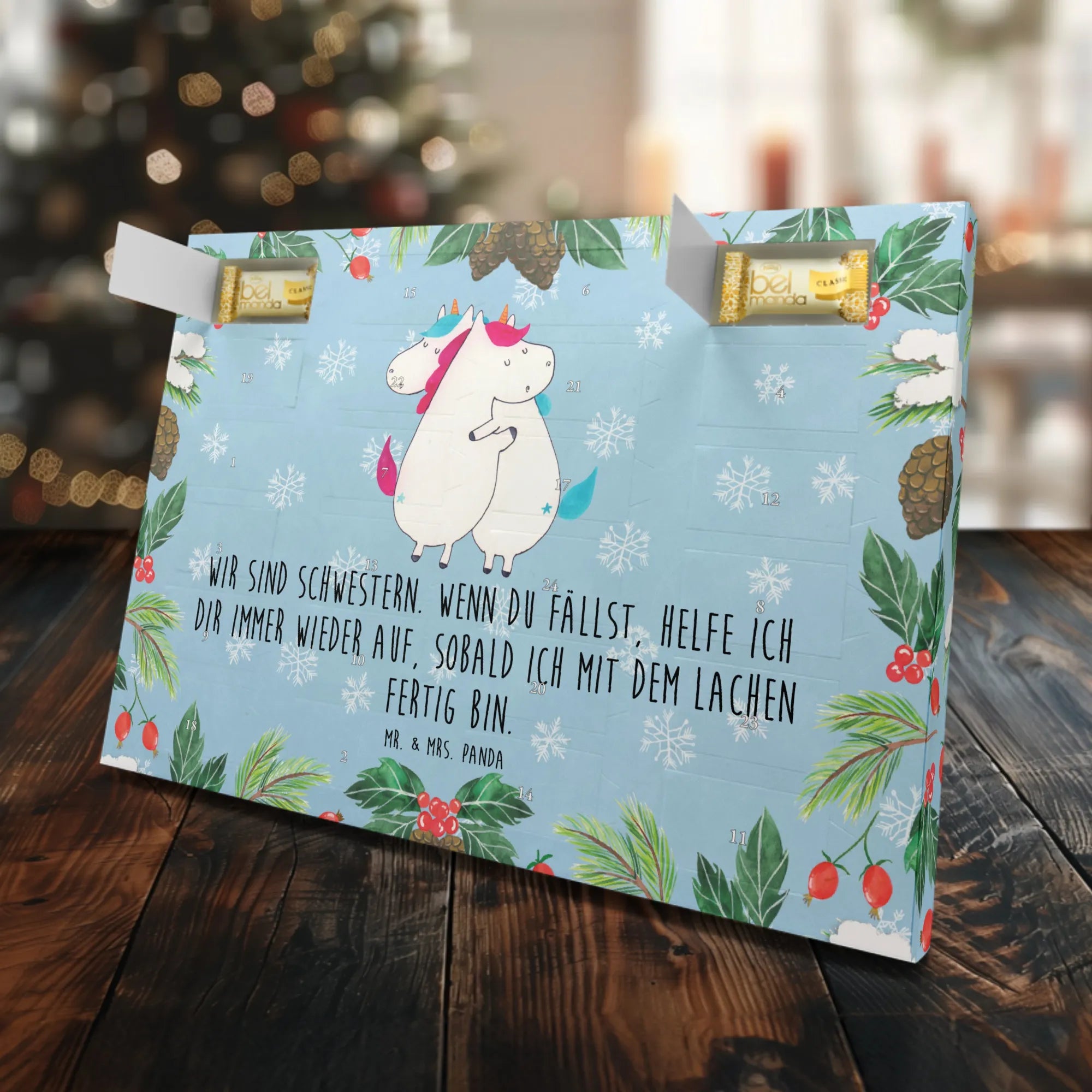 Der Marzipan Adventskalender mit dem Motiv "Einhörner Umarmen" ist das perfekte Geschenk für alle, die Einhörner lieben! Ob für deine beste Freundin, deine Schwester oder liebe Verwandte - dieser Adventskalender sorgt für zauberhafte Momente in der Vorweihnachtszeit. Die umarmenden Einhörner sind nicht nur niedlich, sondern haben auch eine besondere Aussage darüber, wie wichtig Geschwisterliebe ist. Der Spruch "Wir sind Schwestern. Wenn du fällst, helfe ich dir immer wieder auf, sobald ich mit dem Lachen fertig bin." bringt alle Schwestern zum Schmunzeln.