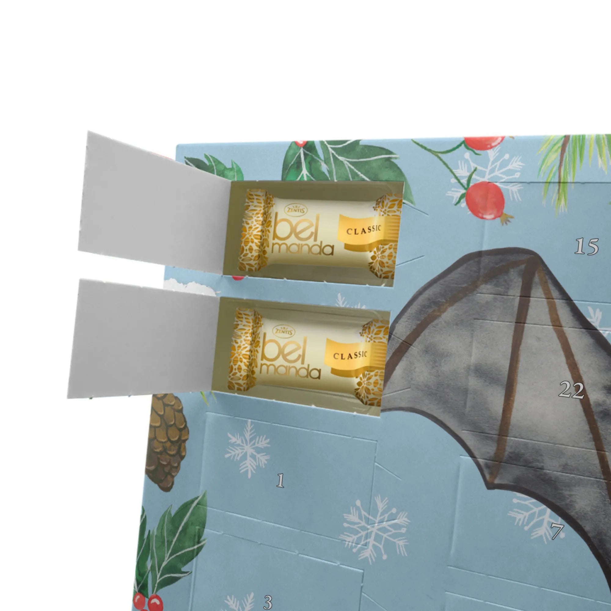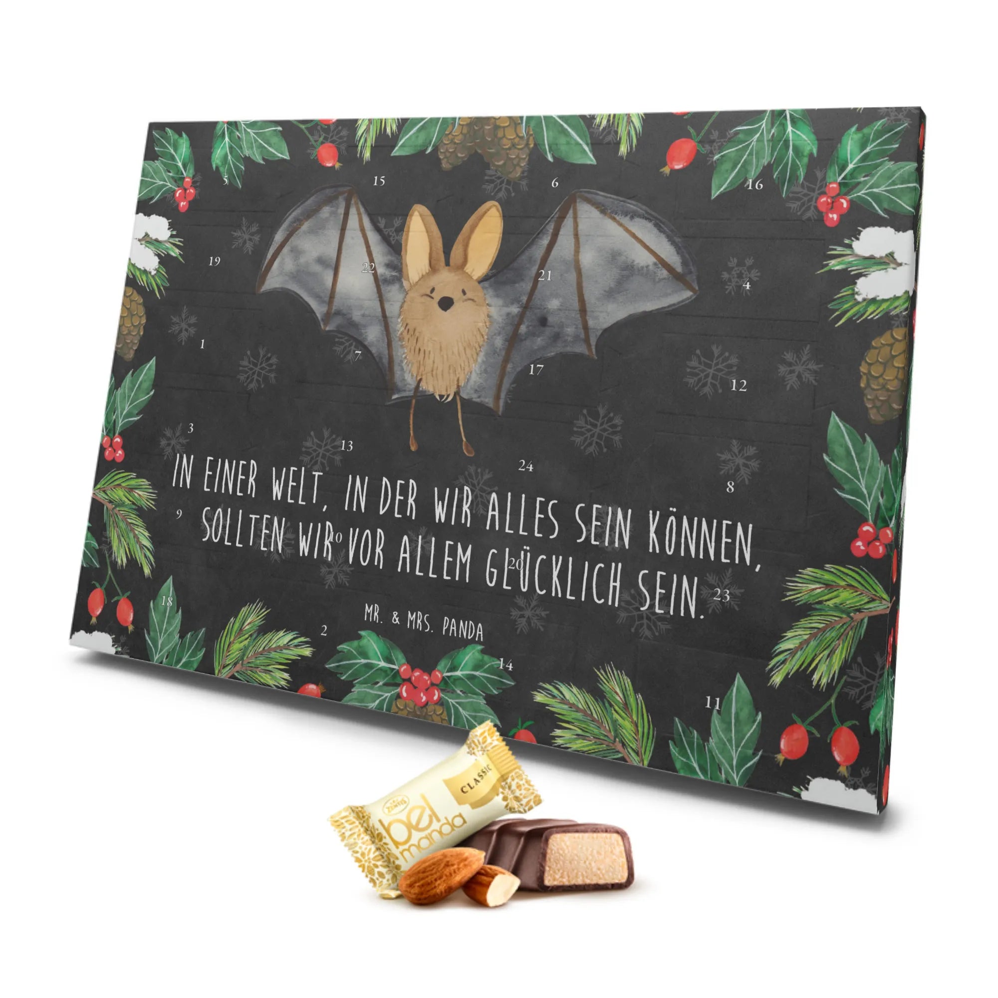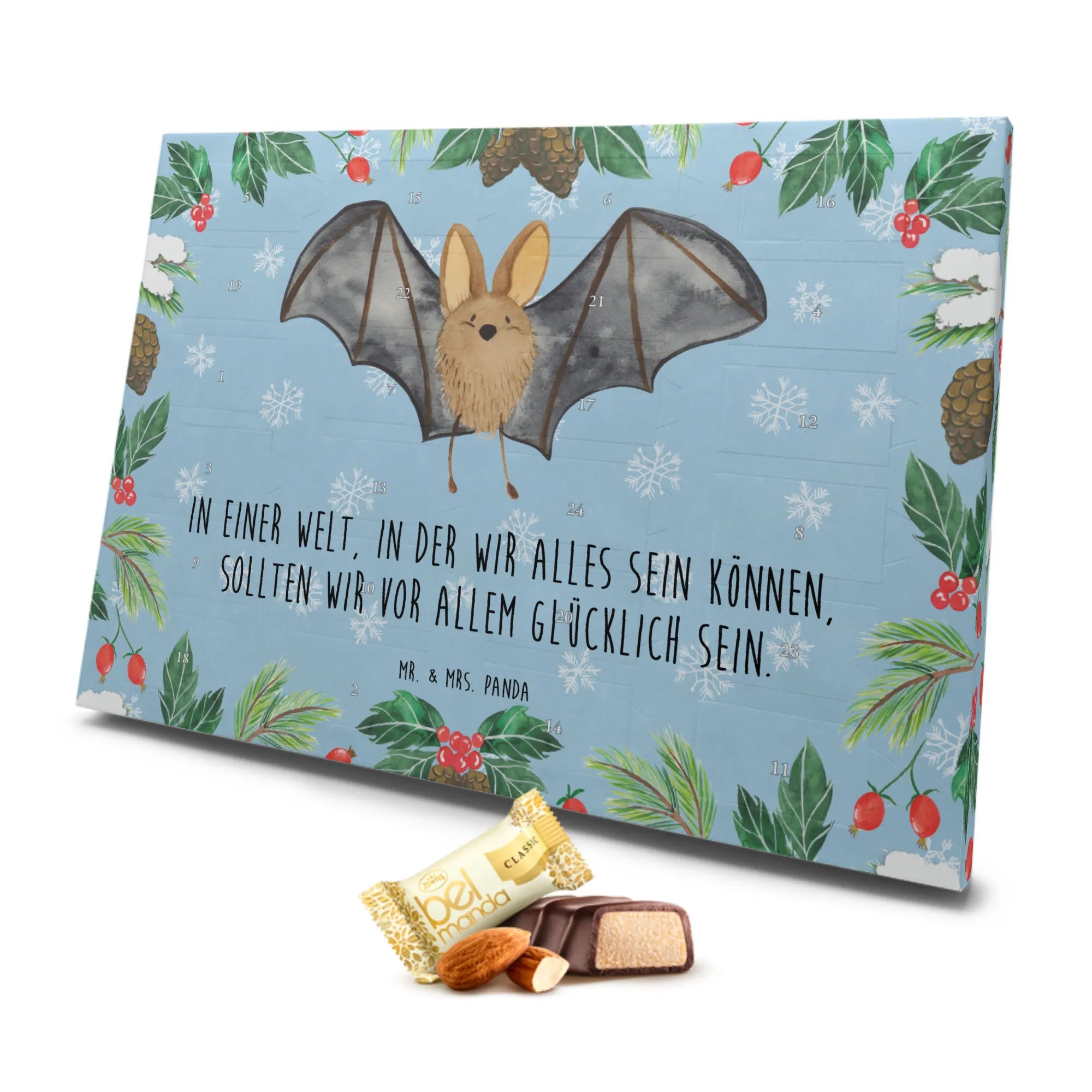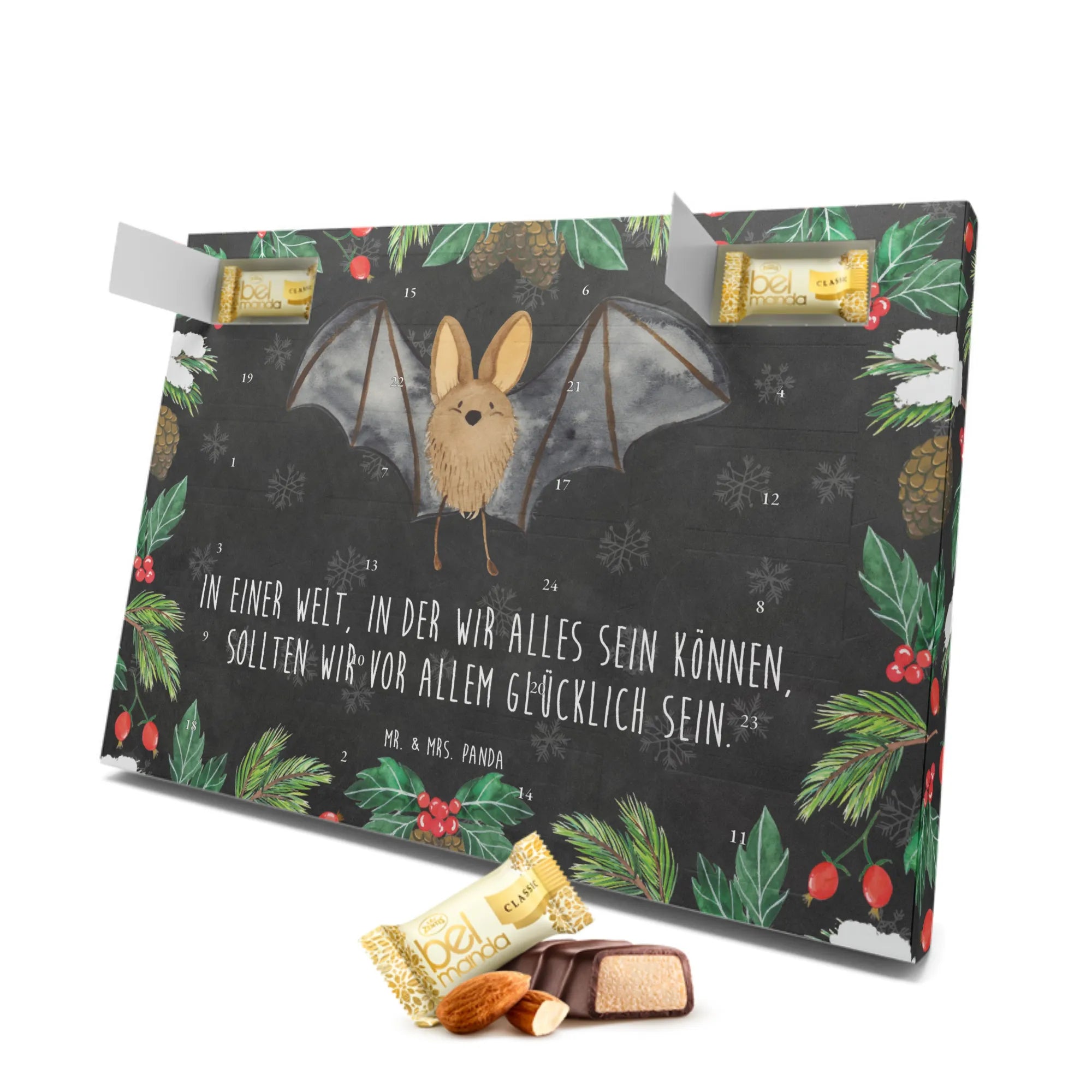 Lass dich von der Magie der Fledermaus Flügel entführen und genieße die besinnliche Zeit. Der Marzipan Adventskalender von Mr. & Mrs. Panda ist ein kleines Kunstwerk, das deine Herzen erfreuen wird!