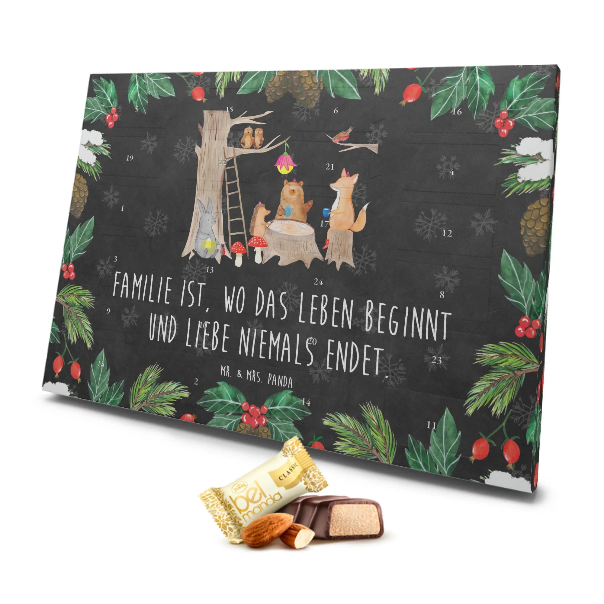 Der Marzipan Adventskalender 'Waldtiere Picknick' von Mr. & Mrs. Panda bringt nicht nur Freude in die Adventszeit, sondern auch eine Prise Magie in jede Stube! Befüllt mit 24 exquisiten, einzeln verpackten Edelmarzipan Pralinés, ist er das ideale Geschenk für alle, die das Besondere lieben.