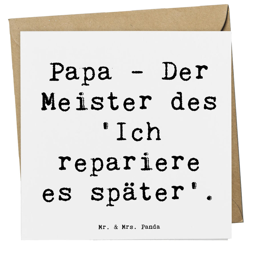 Die Deluxe Karte "Papa - Der Meister des 'Ich repariere es später'." von Mr. & Mrs. Panda ist das perfekte Geschenk für jeden tollen Papa! Diese hochwertige Klappkarte wird in einem wunderschönen Quadratformat von 140 mm x 140 mm geliefert und ist auf edlem, 300 Gramm schwerem Karton gefertigt.