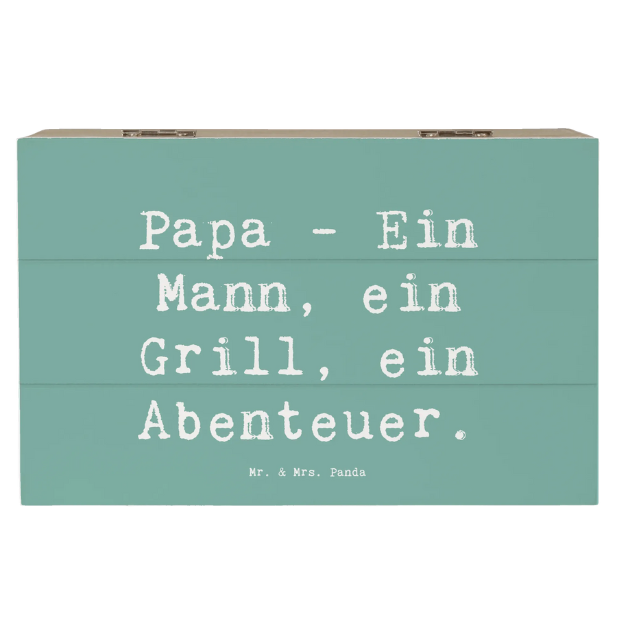 Eine wunderschöne Holzkiste von Mr. & Mrs. Panda mit dem liebevollen Motiv 'Papa - Ein Mann, ein Grill, ein Abenteuer' ist das perfekte Geschenk für jeden Vater. Diese schlichte, aber stilvolle Kiste ist nicht nur ein idealer Aufbewahrungsort für alle kostbaren Erinnerungen, sondern auch ein wunderbares Dekorationsstück, das das Herz eines jeden Papas höher schlagen lässt.