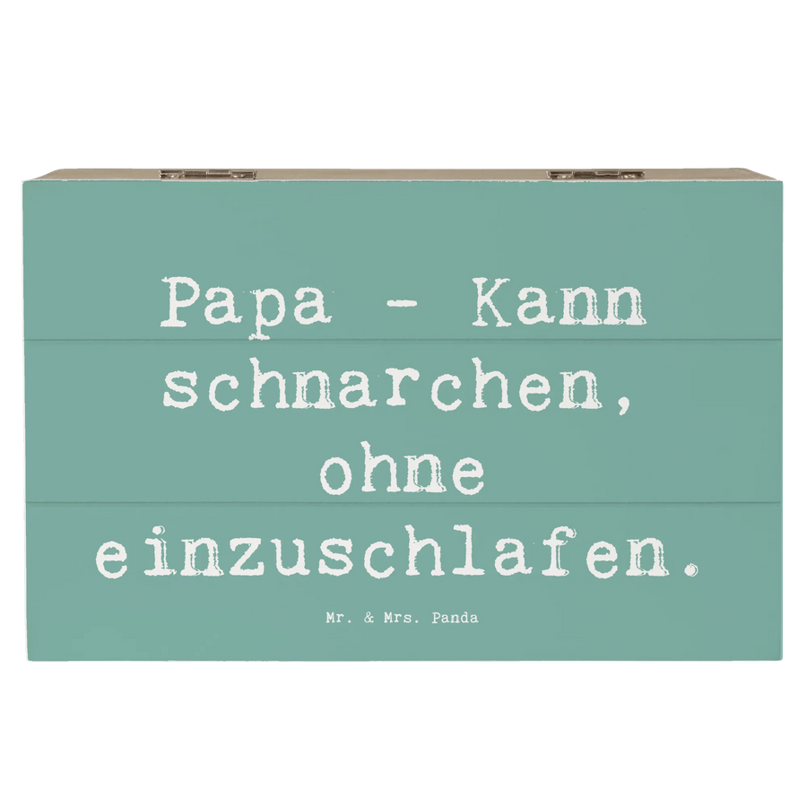 Die wunderschöne Holzkiste von Mr. & Mrs. Panda mit dem Motiv "Papa - Kann schnarchen, ohne einzuschlafen." ist das perfekte Geschenk für jeden Daddy! Diese stilvolle Schatzkiste bietet nicht nur einen schönen Platz für all deine Erinnerungen, sondern sorgt auch für ein Lächeln auf Papas Gesicht.