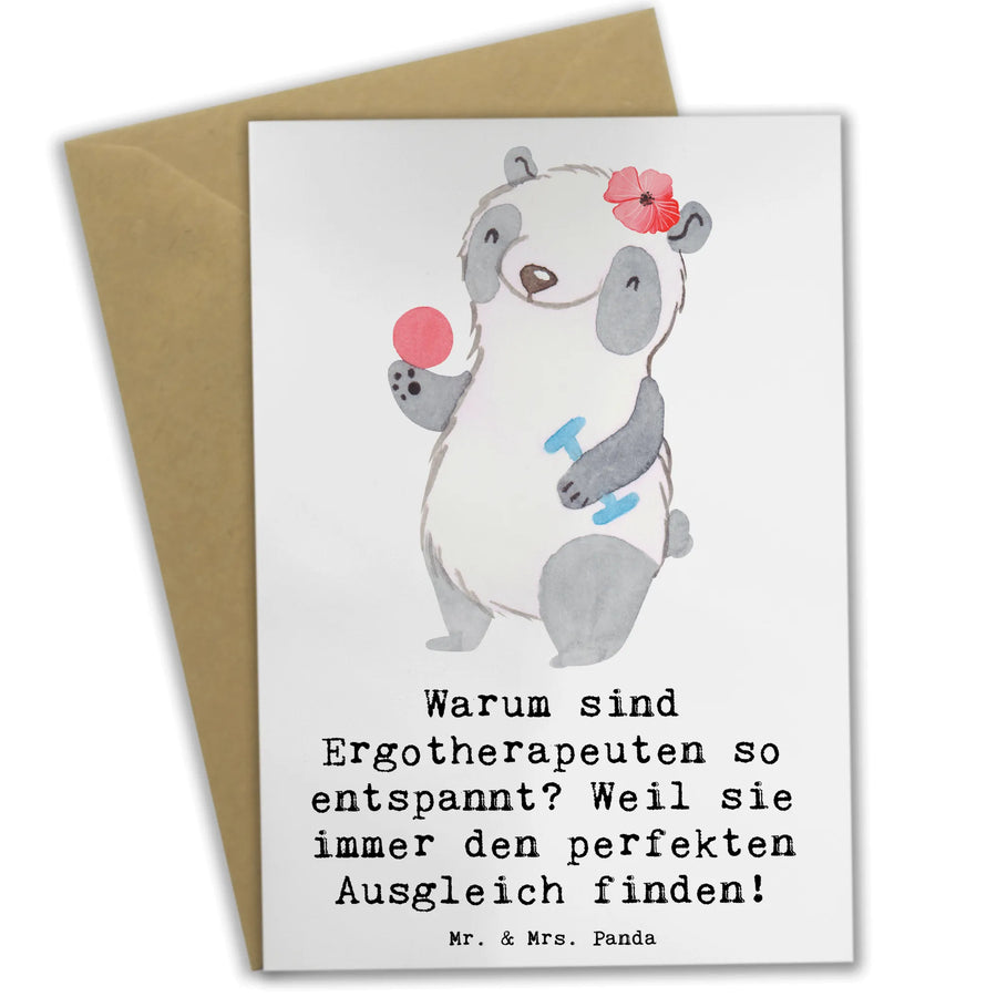 Entdecke die charmante Grußkarte für Ergotherapeuten aus der speziellen Berufes-Kollektion von Mr. & Mrs. Panda! Diese einzigartige Karte ist der perfekte Weg, um Dankesworte, Glückwünsche oder herzliche Grüße an eine ganz besondere Person auszudrücken.