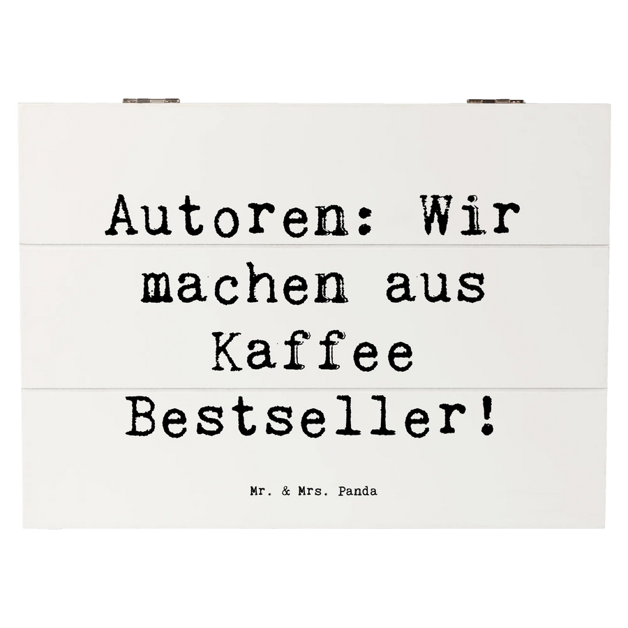 Du suchst nach dem perfekten Geschenk für eine Autorin oder einen Buchliebhaber? Dann ist die Holzkiste "Autorin" von Mr. & Mrs. Panda genau das richtige für dich! Diese wunderschöne Aufbewahrungsbox ist nicht nur ein praktischer Ort, um all die kostbaren Erinnerungen, Notizen oder kleine Schätze zu verstauen, sondern auch eine liebevoll gestaltete Erinnerungskiste, die das Herz jedes kreativen Kopfes höher schlagen lässt. Mit dem ikonischen Spruch "Autoren: Wir machen aus Kaffee Bestseller!" wird sie zum idealen Begleiter für jeden Schreibprozess.