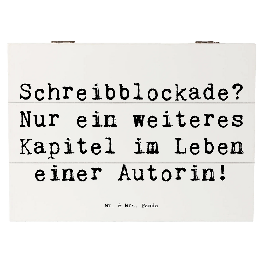 Die Holzkiste mit dem Schriftzug "Schreibblockade? Nur ein weiteres Kapitel im Leben einer Autorin!" von Mr. & Mrs. Panda ist das perfekte Geschenk für jede Autorin oder jeden Schriftsteller.