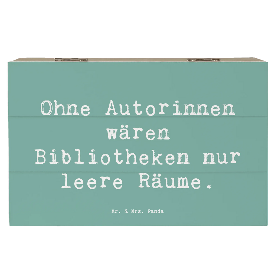 Entdecke die wunderschöne Holzkiste von Mr. & Mrs. Panda mit dem zauberhaften Spruch: "Ohne Autorinnen wären Bibliotheken nur leere Räume." Diese Erinnerungskiste ist ideal für all jene, die die Welt der Bücher und Geschichten lieben.