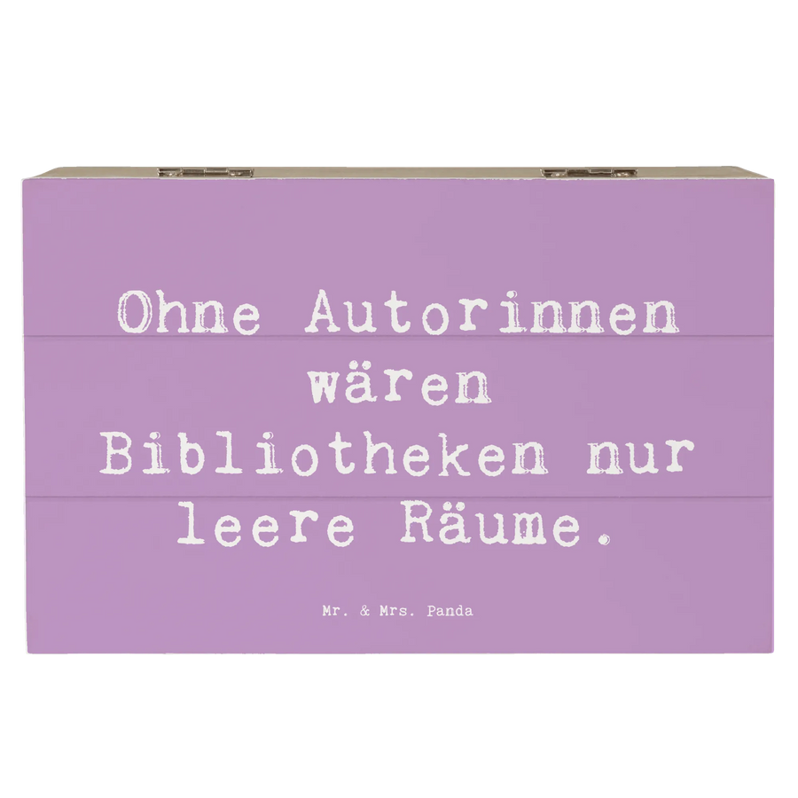 Entdecke die wunderschöne Holzkiste von Mr. & Mrs. Panda mit dem zauberhaften Spruch: "Ohne Autorinnen wären Bibliotheken nur leere Räume." Diese Erinnerungskiste ist ideal für all jene, die die Welt der Bücher und Geschichten lieben.