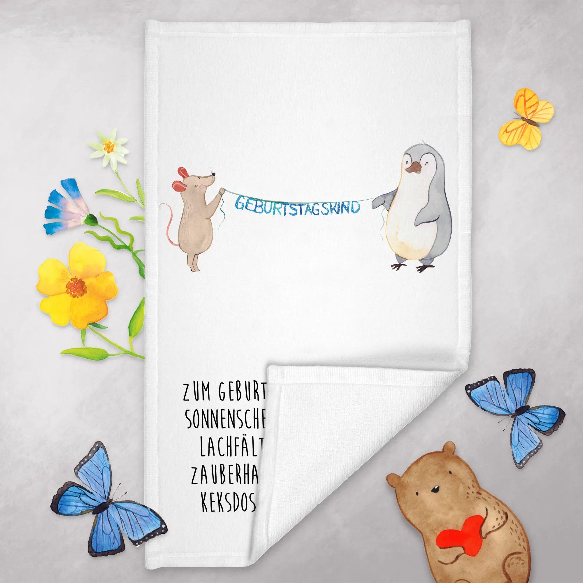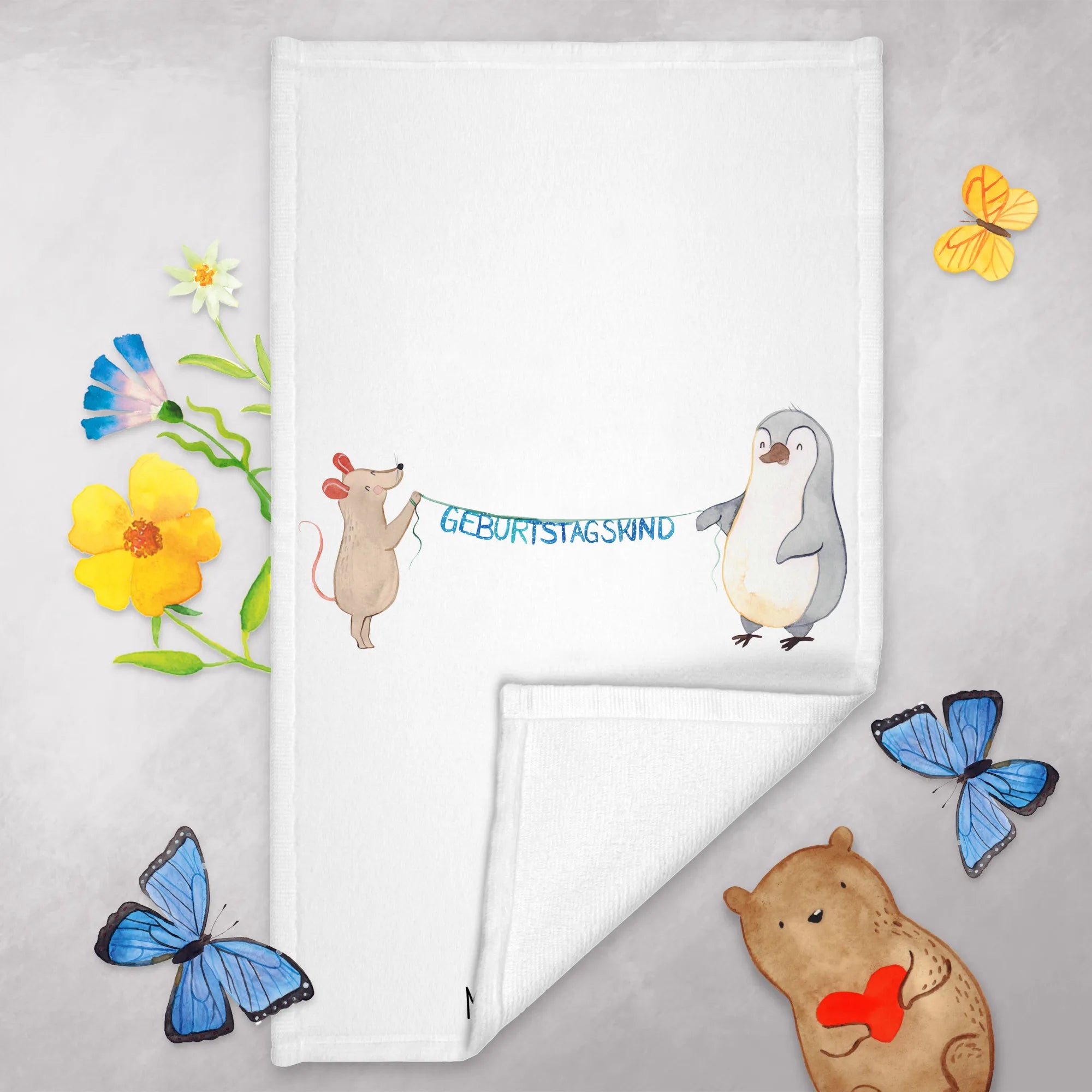 50 x 100 ręcznik Mysz Pingwin urodziny - 50 x 100 ręcznik - z napisem