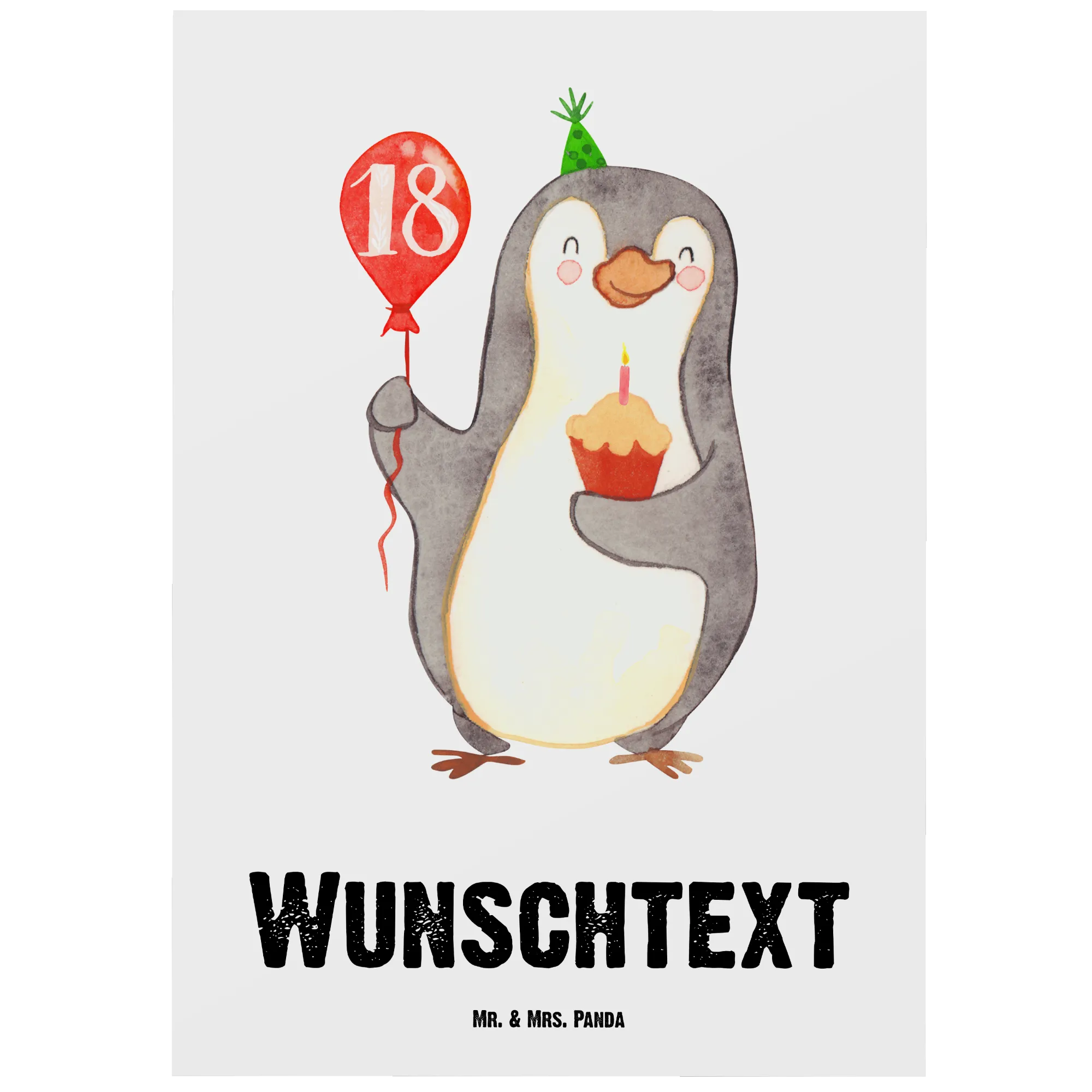 Personalizowana kartka pocztowa 18. urodziny Pingwin z balonem